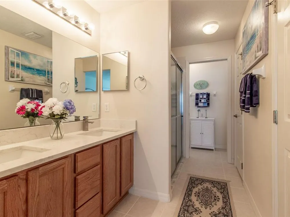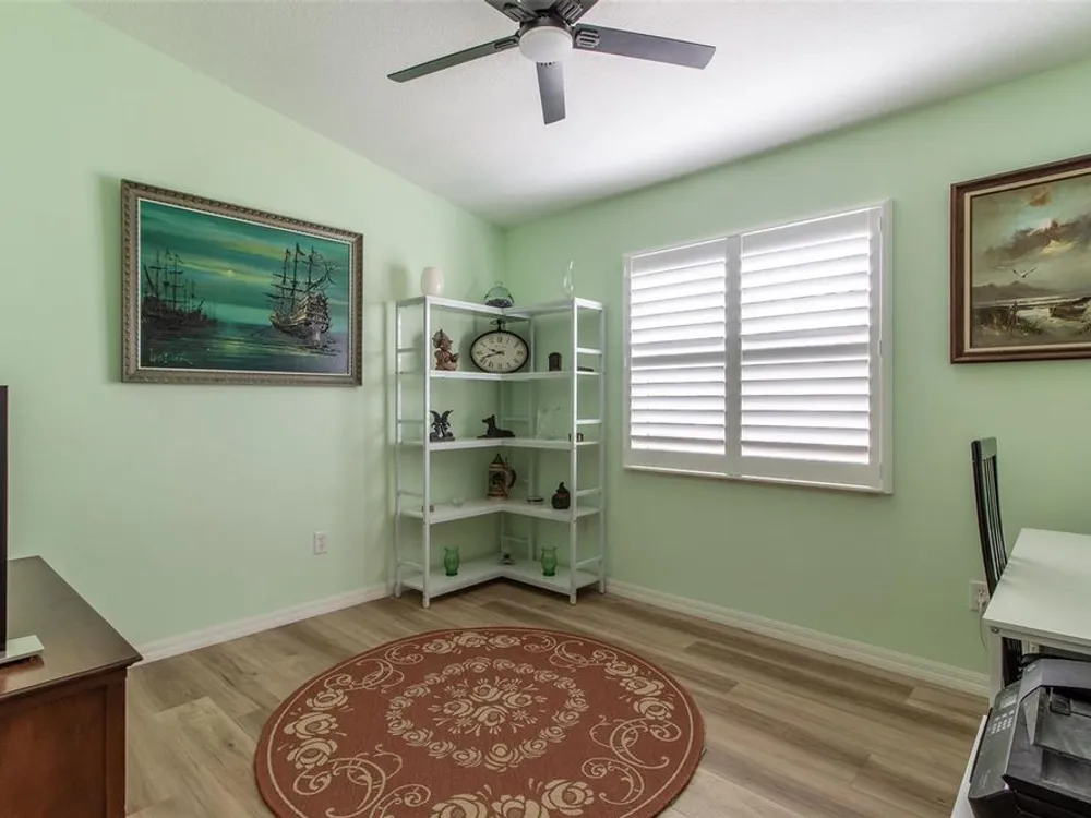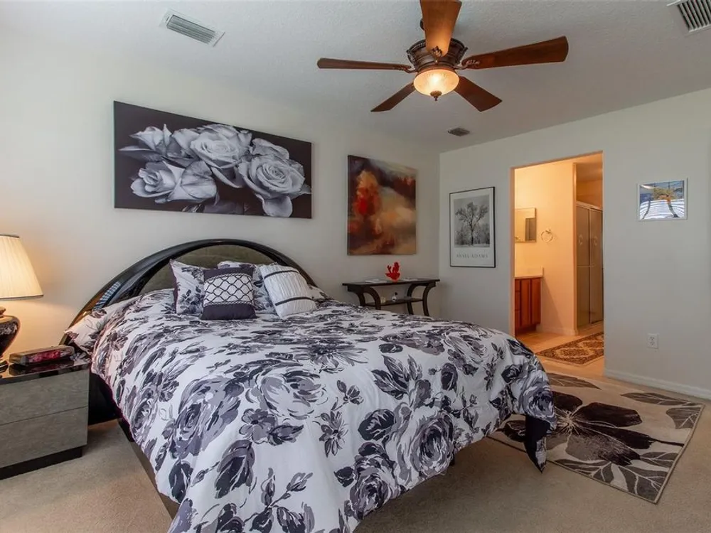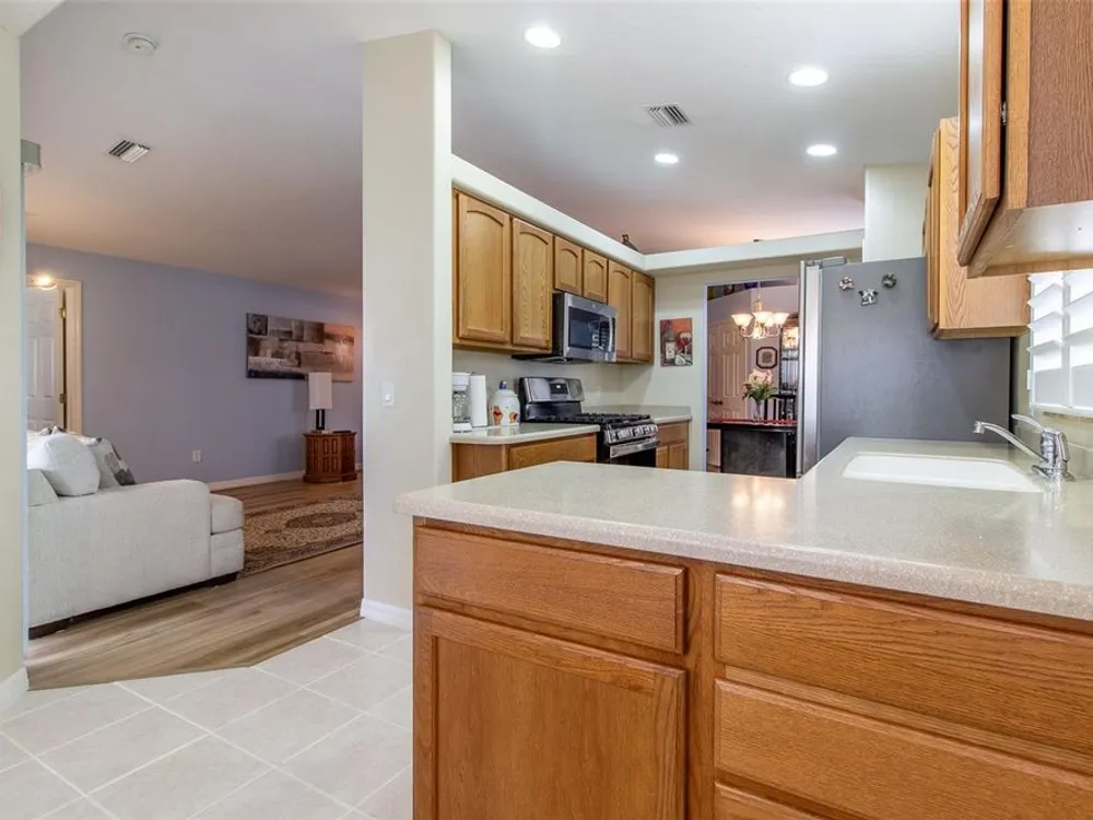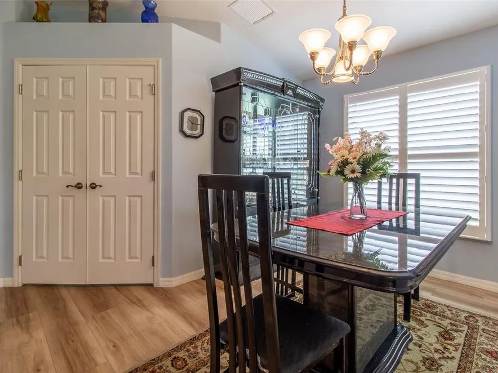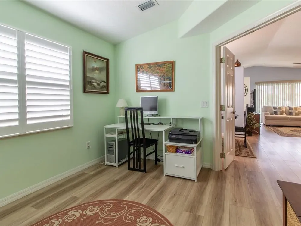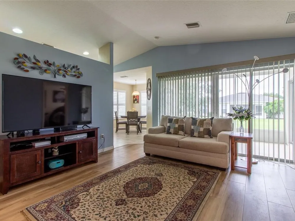 Meticulously Updated Daytona Model in SummerGlen – A Rare Blend of Style, Comfort & Convenience. Welcome to this beautifully updated Daytona model located in the sought-after 55+ gated community of SummerGlen. Offering 1,574 square feet of thoughtfully designed living space, this 2-bedroom, 2-bath home includes a versatile flex room that can be easily converted to 3rd bedroom or may be ideal for a home office, sitting area, or craft space. This home has undergone tasteful and meticulous updates that reflect pride of ownership and a keen eye for design. From the moment you enter the tiled foyer, you’ll notice the open great room with high ceilings, providing a light and airy ambiance. The interior showcases a harmonious color palette, luxury vinyl plank flooring (2024), Plantation Shutters (2022), fresh paint (2021), updated ceiling fans, and high-end finishes that create a cohesive, modern living experience. The kitchen is both functional and elegant, featuring Corian countertops, stainless steel appliances including a new range, dishwasher, and microwave (2024), ample cabinet space, and a cozy breakfast nook that overlooks the rear yard. A separate formal dining area provides room to host friends and family. Sliders off the great room, breakfast nook and primary suite lead to a serene screened lanai, perfect for morning coffee or evening relaxation. The carpeted spacious primary suite includes lanai access and an en-suite bath with new Quartz counters (both bathrooms 2024). This layout is designed for comfort and convenience with a generous dual sided walk-in closet. The floor plan offers privacy for guests, and the flex room provides that extra bit of space everyone needs. Additional highlights include a new roof (2022), new AC (2025), and a full two-car garage with an additional golf cart bay with lots of built-in storage shelving, offering practical functionality along with secure parking. This home delivers a rare combination of elegance, low-maintenance living, and peace of mind all within a vibrant, amenity-rich community. Just a short walk away, residents enjoy access to a championship golf course, resort-style heated lap pool, fitness center, clubhouse, on-site restaurant, and year-round social events. The HOA fee includes Spectrum Bronze Tier 1 TV, 100 Mbps high-speed internet, cable, lawn mowing and edging, trash service, and 24/7 gated security. RV and boat storage is available with a one-time fee and deposit. As an added bonus, residents receive a $30 monthly credit at the on-site restaurant—just one more way to enjoy the exceptional lifestyle SummerGlen offers. Don’t miss the opportunity to make this move-in-ready home your own. Schedule your private showing today and start living the lifestyle you deserve.