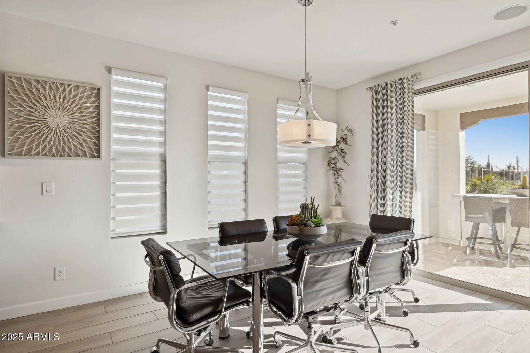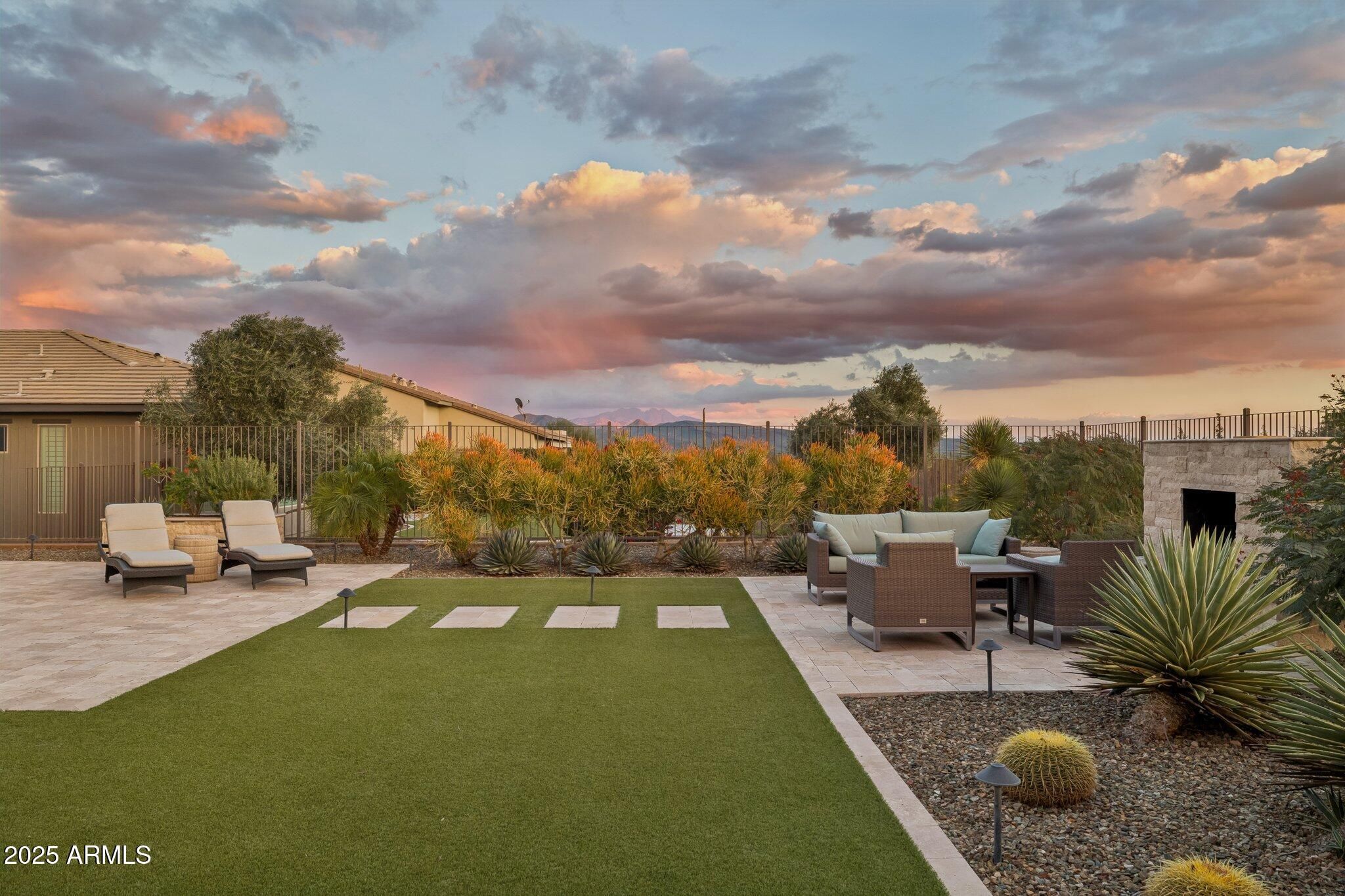Embrace Luxurious Resort Living at Trilogy at Verde River! Discover the elegance of the Juniper floor plan, perfectly situated on an oversized lot with breathtaking desert views and Four Peaks views. The home boasts attractive curb appeal with stone-accented pillars, a cozy porch, and a professionally designed desert landscape. Step inside to a stunning interior that features timeless wood-look flooring throughout, leading to a spacious great room with an accent wall and captivating outdoor views. Expanded multi-slide patio doors seamlessly integrate indoor and outdoor living. The immaculate kitchen is a chef's delight, featuring recessed lighting, granite countertops, a stylish tile backsplash, stainless steel GE Monogram appliances, ample wooden cabinetry, an island and a walk-in pantry for additional storage. Retreat to the primary suite, where abundant natural light enhances a lavish ensuite complete with dual granite sinks, a designer tile shower, and a custom walk-in closet system. Your private outdoor oasis is perfect for entertaining, with a covered patio offering a built-in BBQ, breathtaking mountain views, an exterior fireplace, and synthetic turf. Trilogy at Verde River is a resort-style community offering endless amenities! Enjoy the golf course, tennis, pickleball, bocce ball, heated lap and swimming pools, a hot tub, a fitness center, and a demonstration kitchen. A 7.5-acre dog park and community center with casual and fine dining, a luxury spa, and events center await your enjoyment. Nestled adjacent to the Tonto National Forest, the community is surrounded by miles of scenic hiking and biking trails. Live as if you're on vacation every day. What are you waiting for?