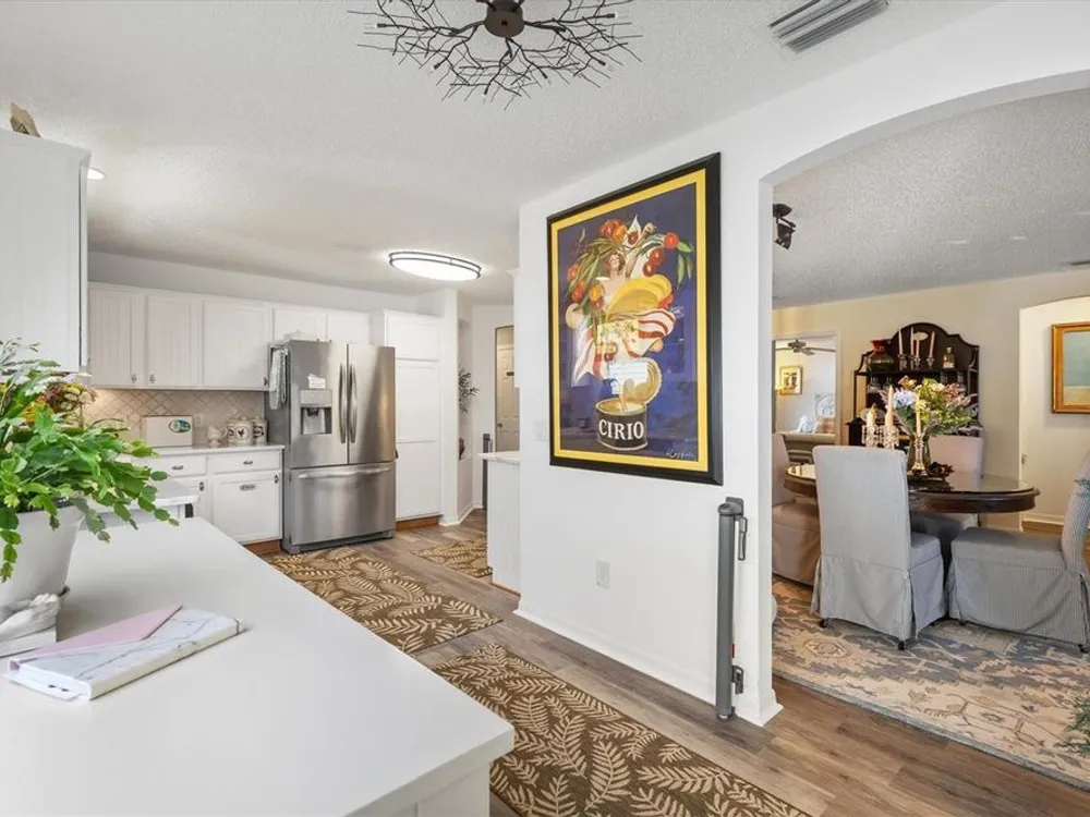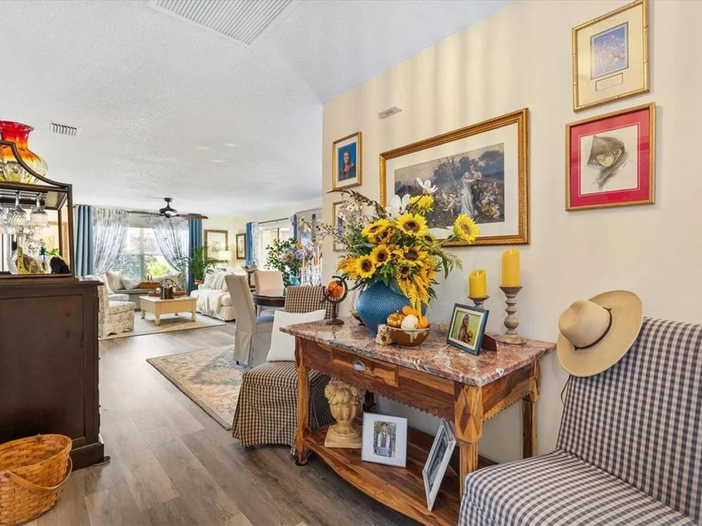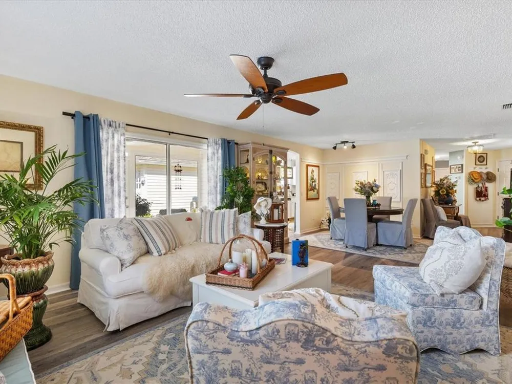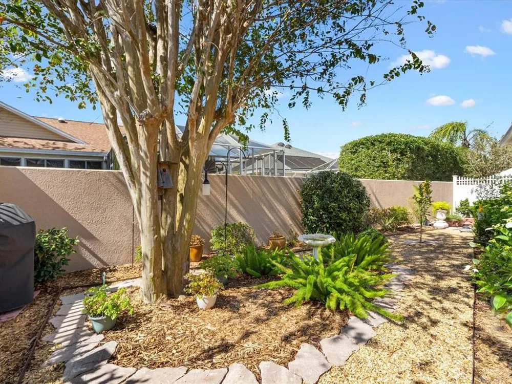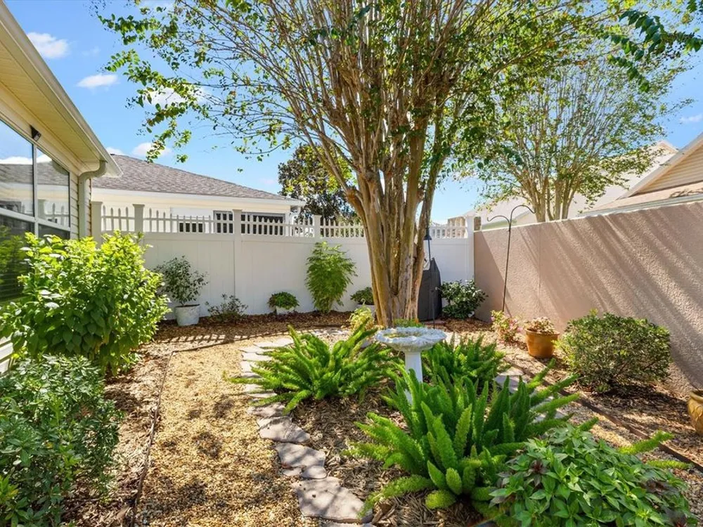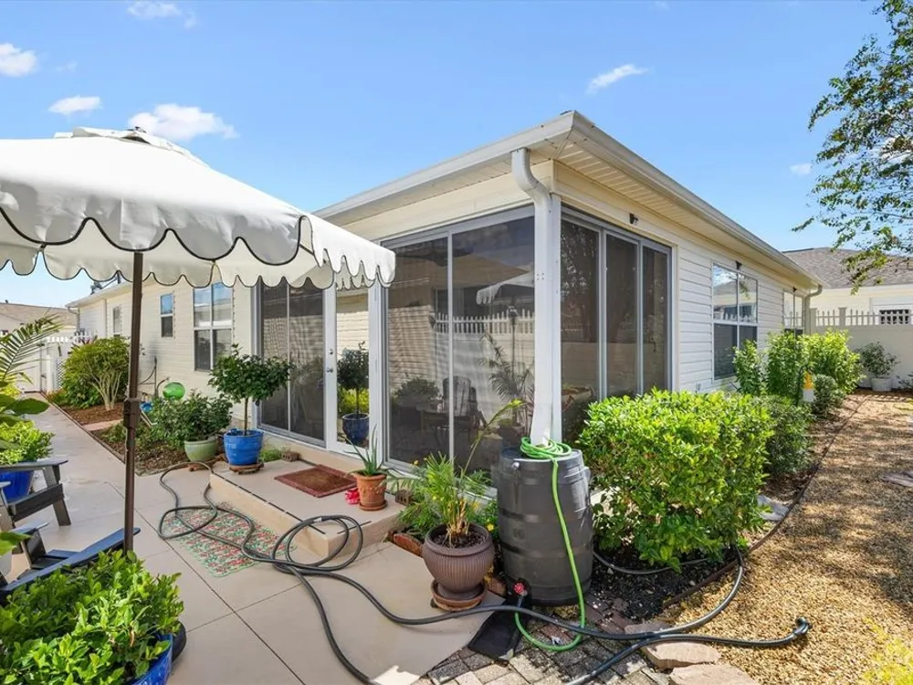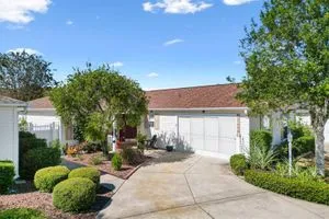 Welcome to The Villas of Chadwick where life is simple. Located in the northern area of The Villages in Marion County, close to the VA, shopping, restaurants and medical facilities, not to mention the Spanish Springs town center with nightly entertainment 365 days a year. This three bedroom two bath is a courtyard villa with less yard work and simpler upkeep. This home had a serious remnovation over the past year...a very cozy and welcoming invitation to sit and stay while. (please see the attachment to see the itemized report of the improvements). The roof 2024, HVAC 2018, Hot Water Heater 2017, very low bond $927.32. This reminds me of a "Pottery Barn" home with all the nice personal touches Luxury Vinyl Plank flooring throughout, new Quartz countertops in the kitchen and baths, new tile backslash in the kitchen, upgraded cabinets in the kitchen, new landscaping with many flowers and blooming plants,. What are you waiting for? Call and schedule an appointment to make your dream come true.