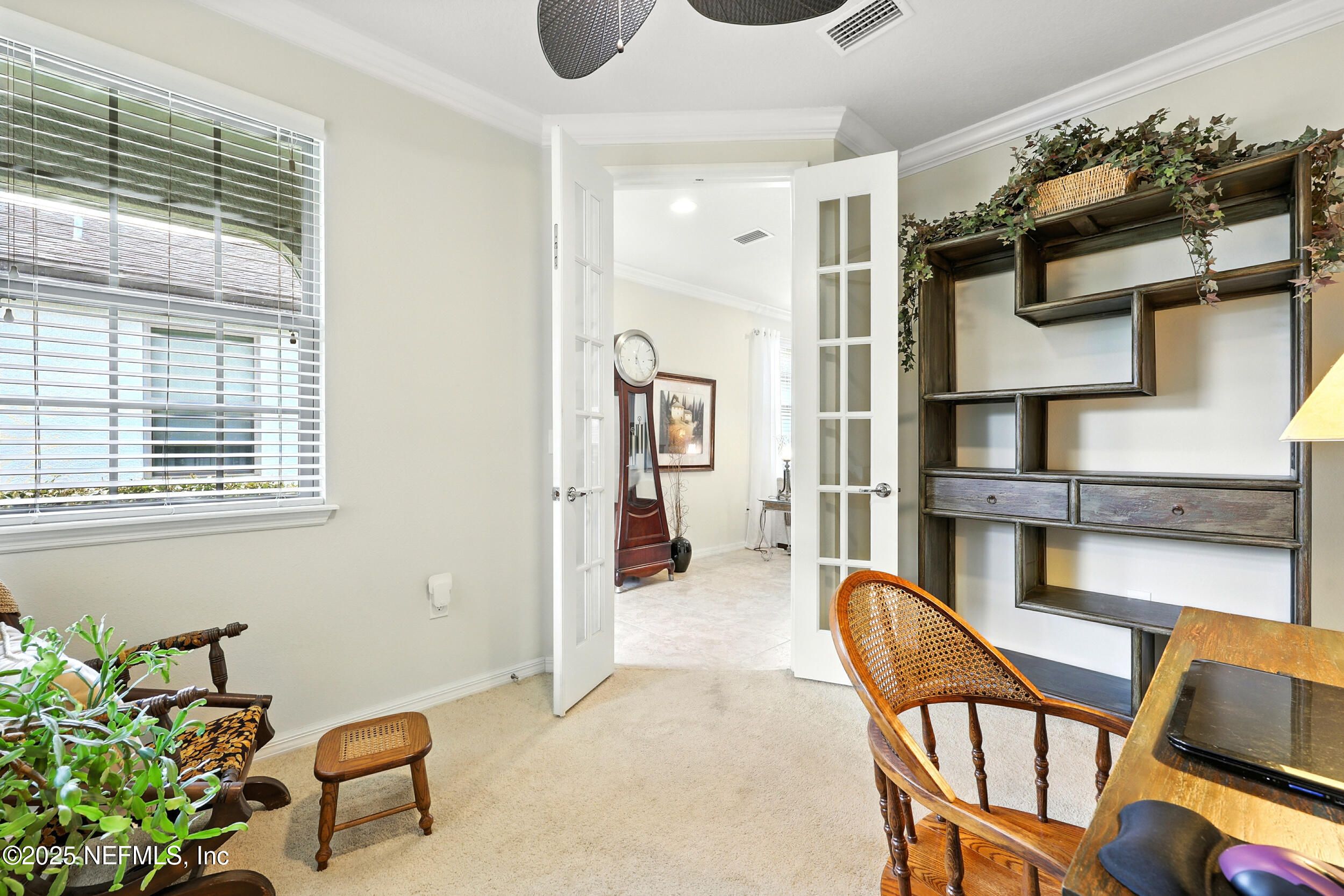 $20,000 Price Improvement! Welcome to this move-in ready home in sought-after Nocatee on a wooded Preserve! Built in 2016, this 2 bedroom, 2 bath plus a DEN residence offers an open and efficient floor plan with approximately 1,437 sq ft of living space. The kitchen features modern finishes and overlooks a spacious living/dining area filled with natural light. Primary suite includes a walk-in closet and private bath. Enjoy low-maintenance living with a stucco exterior, attached 2-car garage, and manageable yard. As a Nocatee resident, you'll have access to world-class amenities including water parks, pools, fitness centers, trails, parks, and community events. Conveniently located near Nocatee's shopping, dining, and with easy access to Nocatee Parkway. This home is where thoughtful upgrades blend style and comfort. A retractable screen door and custom glass-inset front entry set the tone for a warm welcome. Inside, crown molding graces every room, while the gourmet kitchen shines with stainless steel appliances. The primary suite offers a private retreat featuring a designer barn door and a spa-like tiled walk-in shower with easy entry design.