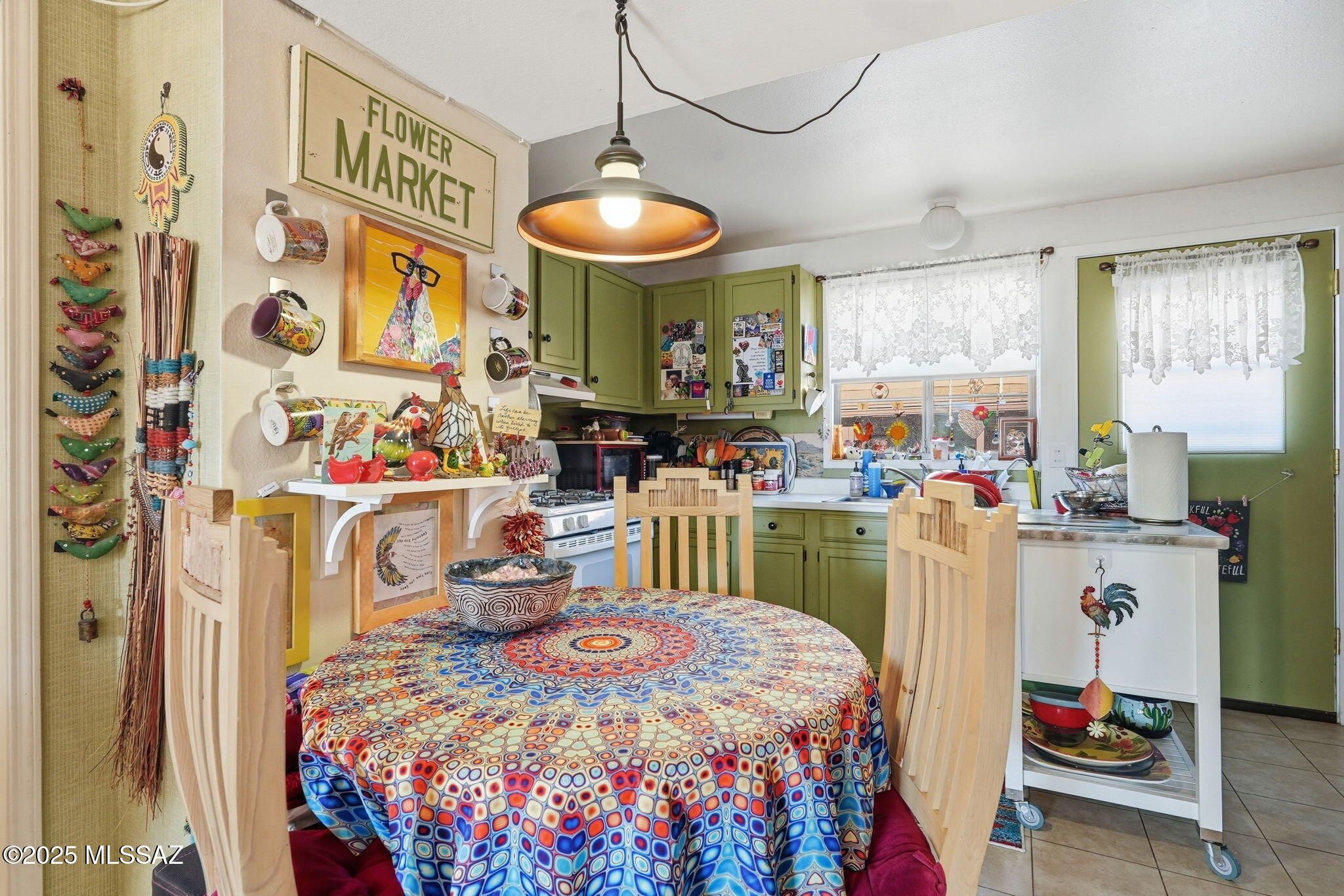 Discover easy desert living in this beautifully updated Villa West home! This inviting retreat features all-tile floors throughout for a clean, cohesive look and easy maintenance. The kitchen boasts abundant custom cabinetry, space for an island, and a cozy eating area--perfect for morning coffee or casual meals.The spacious bedroom offers two closets and peaceful views of the community green space from the covered front patio. You'll love the custom-tiled walk-in shower and the convenience of an in-unit stackable washer and dryer.Enjoy true worry-free living with the Villas HOA taking care of roof maintenance, HVAC, pest control, exterior painting, water, and more!