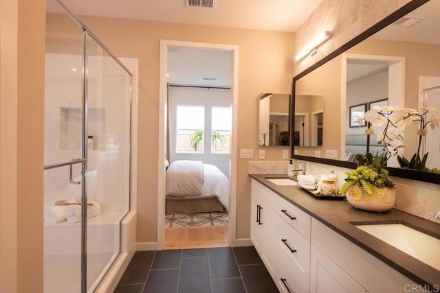 Spacious one story home located in the Master Plan of Cota Vera, a mixed -use, walkable master-planned community surrounded by the beauty of Otay Ranch. Haddington, a gated community, for 55 years and older offer homeowners an easy, fun, lifestyle with exclusive access to their own community private recreational facility, outdoor pool with sundeck and cabanas, firepit, BBQ'S, and indoor fitness center .Walking distance to a future public park which will include Pickle Ball and much more. This one story home is a Plan 1, 2 bedroom, 2 bath home with high ceilings, open floorplan, gourmet kitchen with large island, stainless steel appliances, white shaker cabinets, quartz countertops, indoor laundry room with a sink and 2 car attached garage. Photos are an artist's rendering and shown for representative purposes.