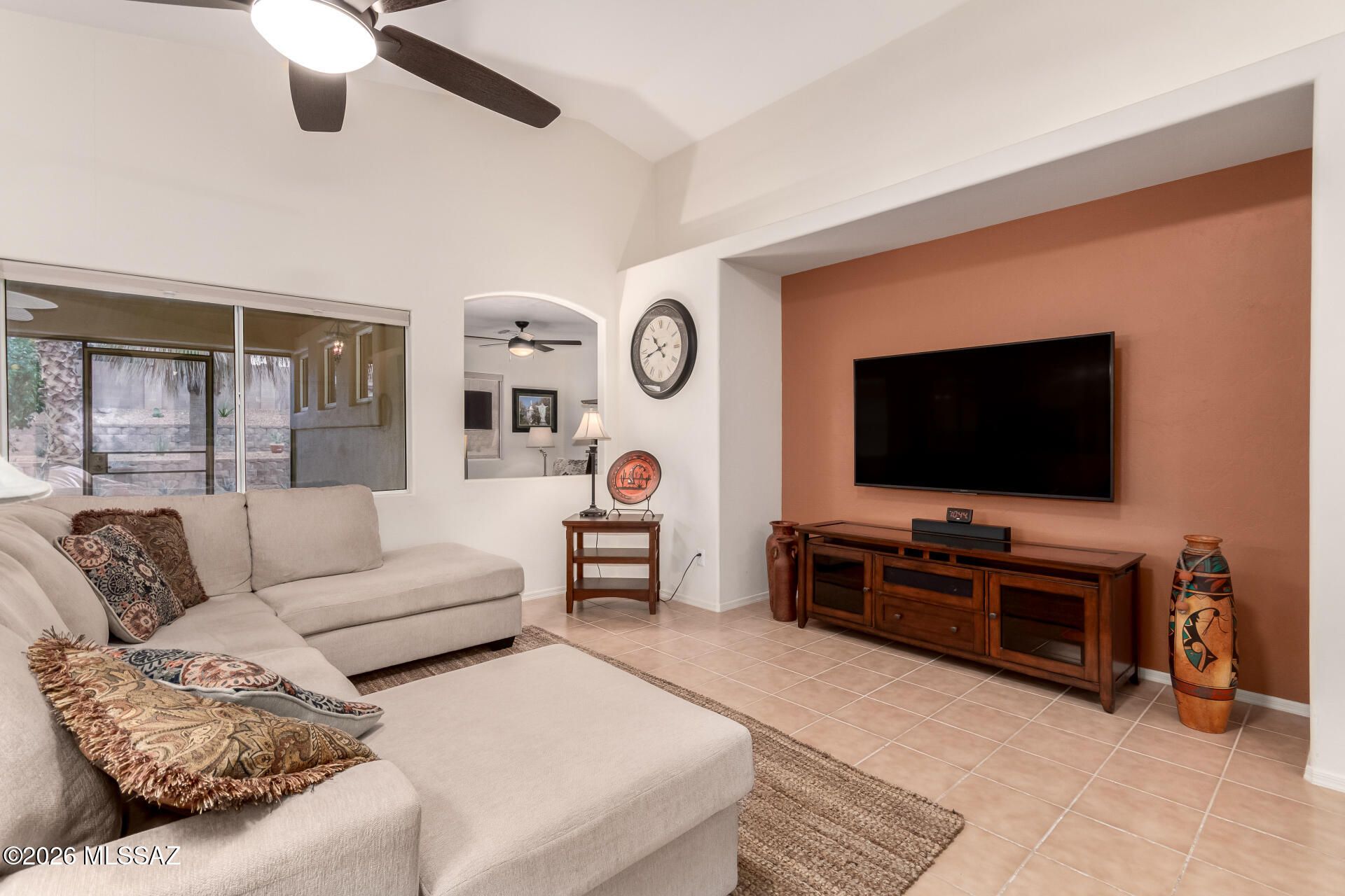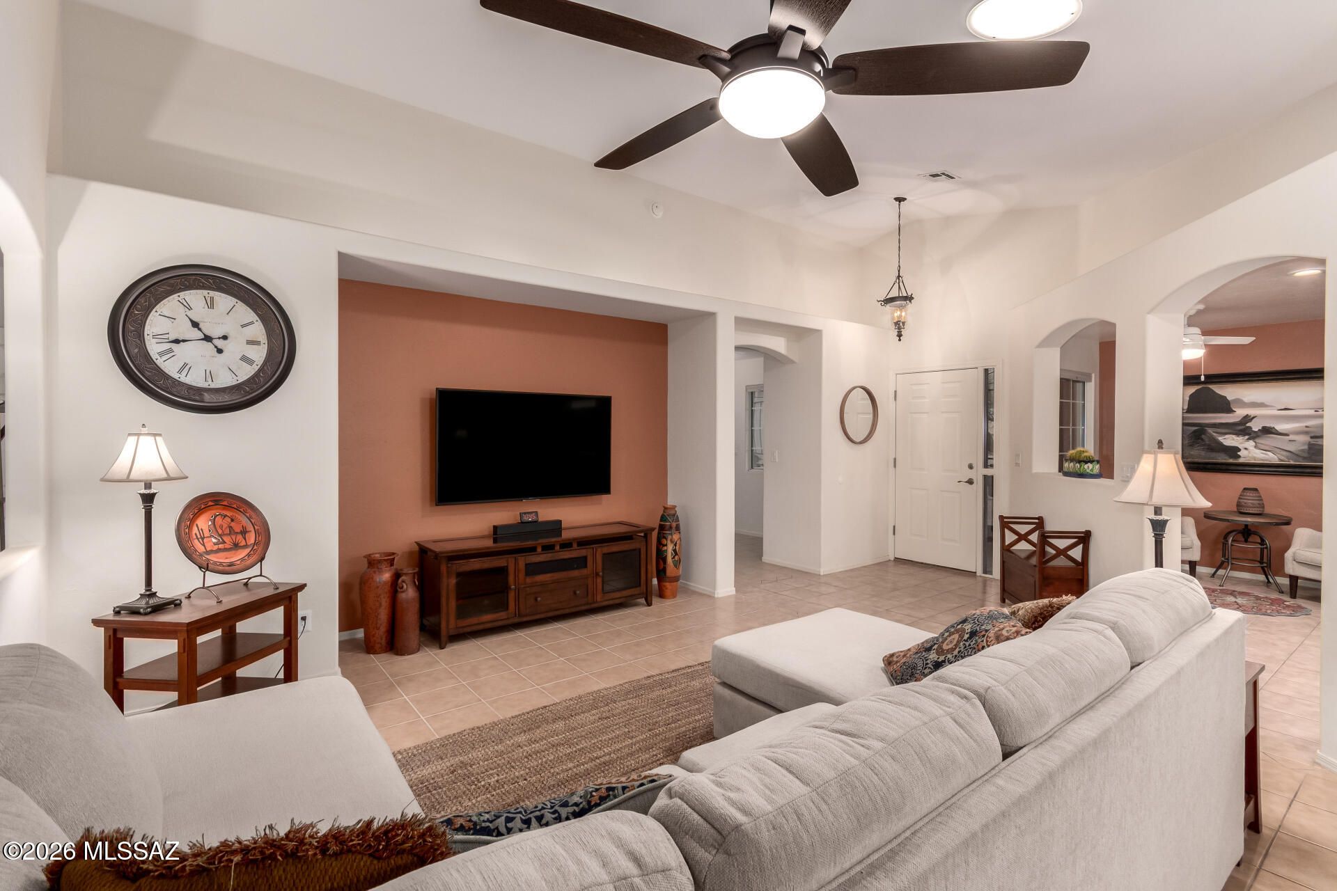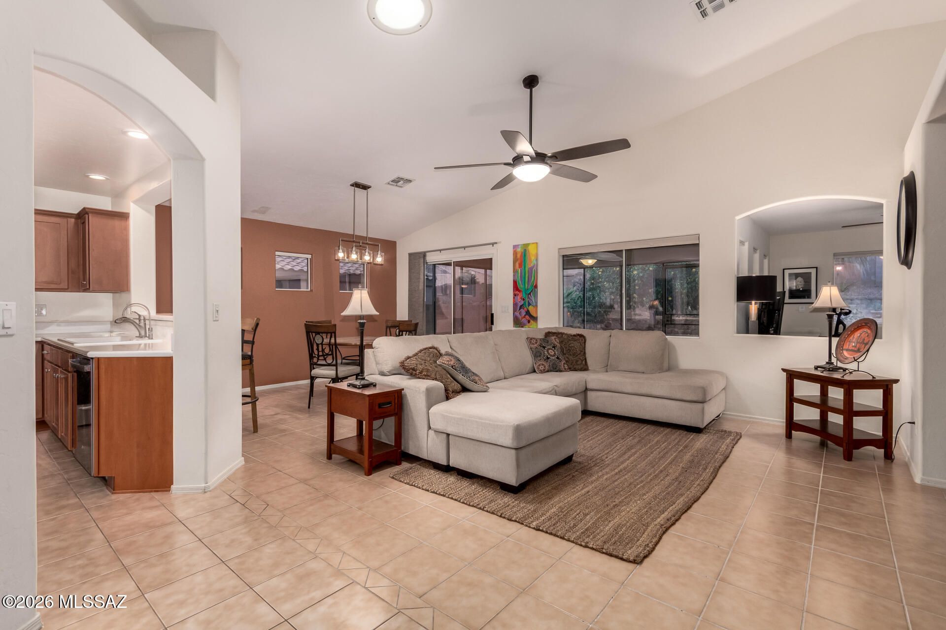 Beautifully designed and meticulously maintained, this stunning home in the coveted Desert Creek neighborhood of Green Valley offers the perfect blend of comfort and style! Featuring 1,645 sq. ft., 2 bedrooms, 2 bathrooms PLUS a den and screened patio, this residence is sure to impress. Enter through a custom security door into a charming exterior entry and step inside to a bright, open great room with soaring vaulted ceilings and abundant natural light. The gorgeous kitchen is thoughtfully appointed with quartz countertops, stainless steel appliances, a spacious island, and a pantry--ideal for both everyday living and entertaining. The spacious primary suite boasts an en suite bath with dual vanities, a separate soaking tub and shower, and a generous walk-in closet.