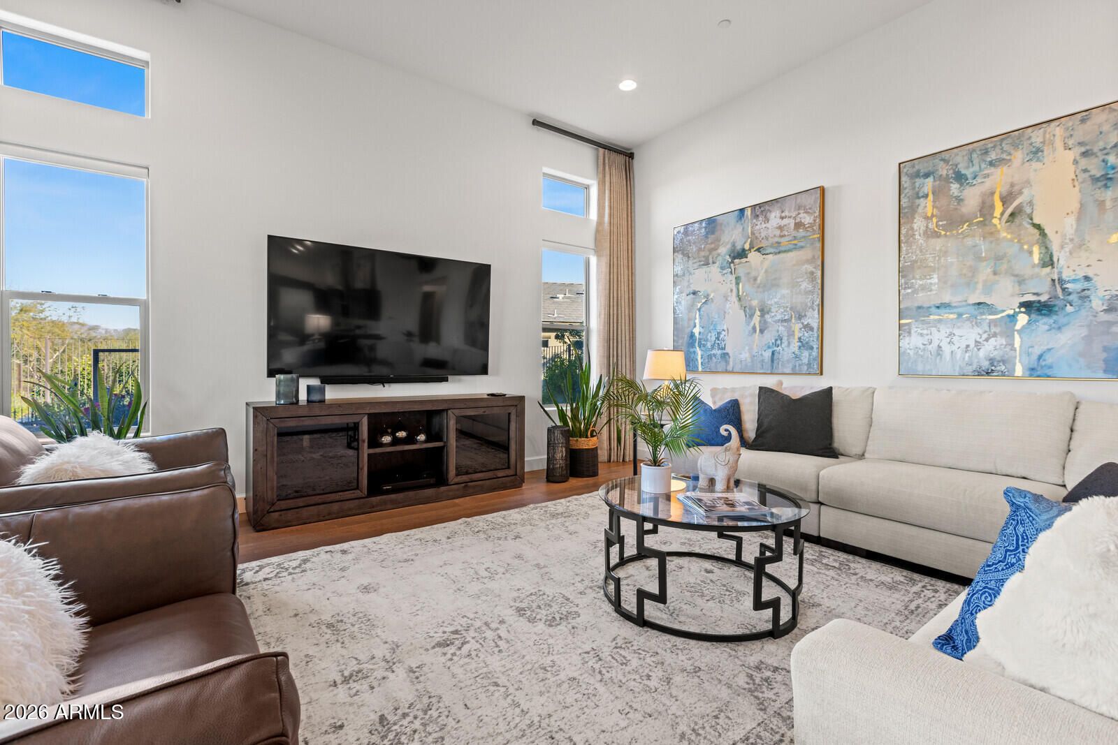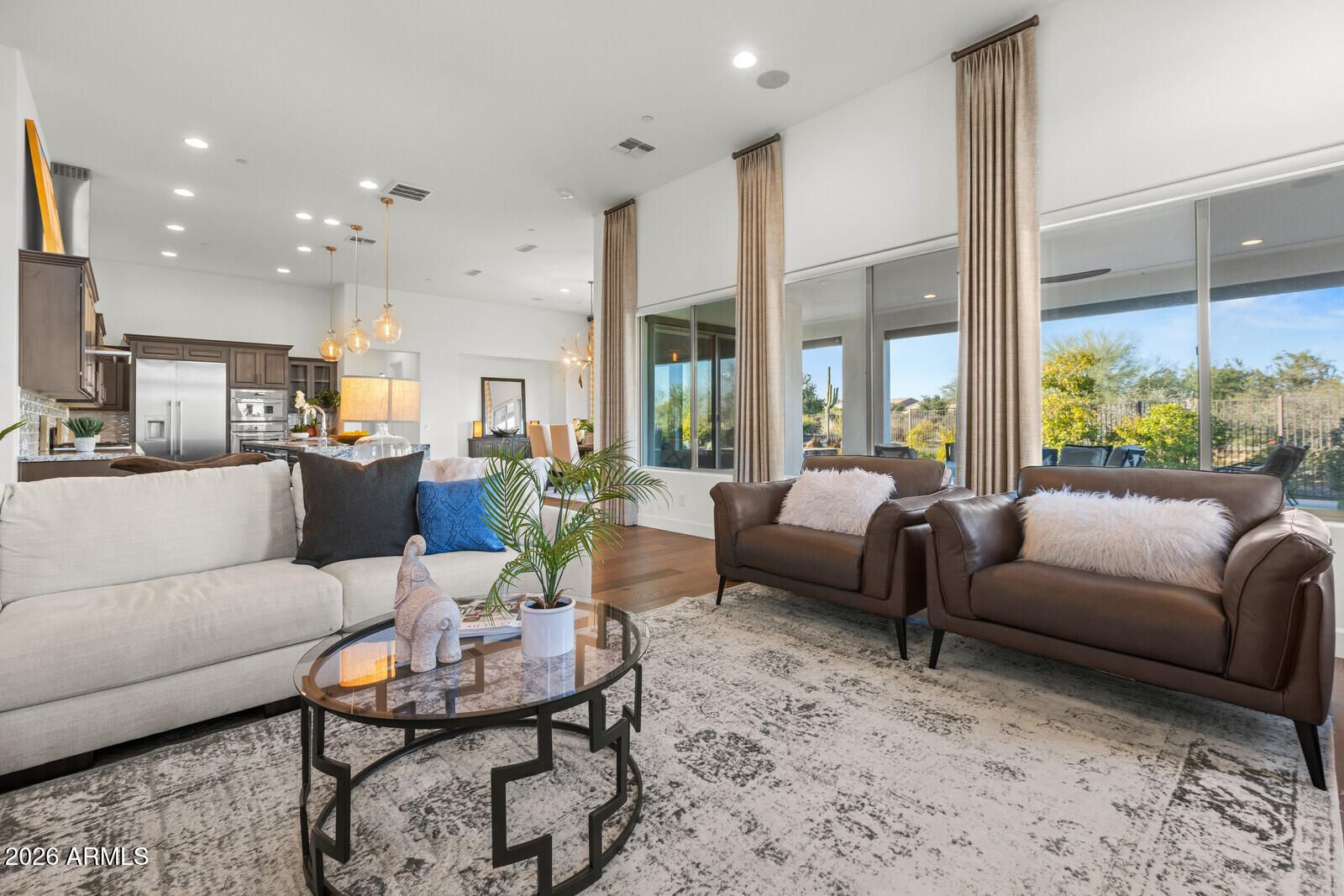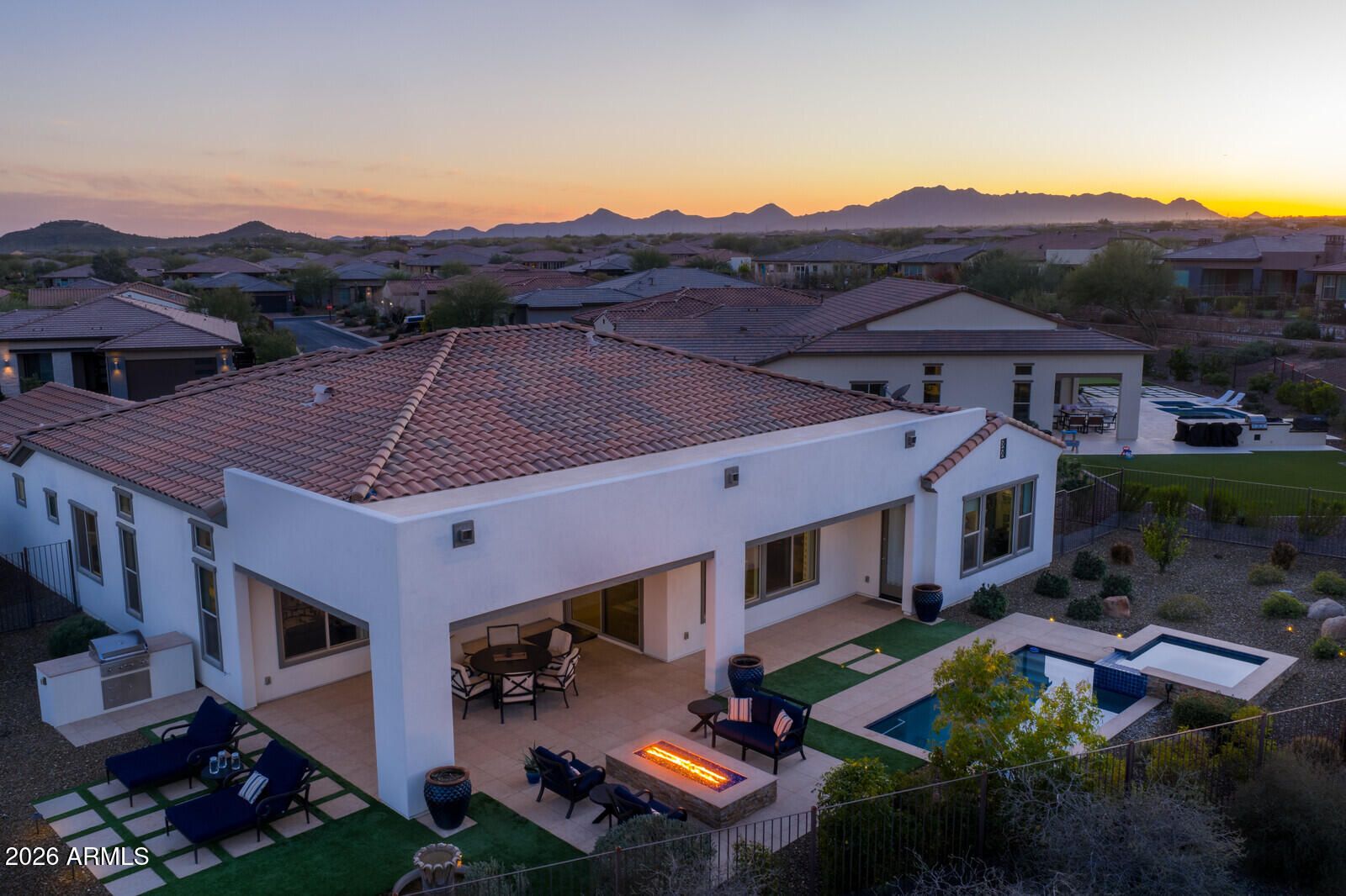 Wonderful mountain views highlight this premium wedge-shaped homesite featuring the highly sought-after Dorado floor plan — a rare three-bedroom, three-and-one-half-bath design with all en-suite bedrooms, plus a private den. This exceptional residence showcases numerous luxury upgrades, including a gourmet kitchen appointed with Wolf and Thermador appliances, an expansive granite island, walk-in pantry, and a dedicated butler's preparation bar. Additional features include an extended three-car garage, extended covered patio, rich wood flooring, central vacuum system, and built-in wine storage beneath soaring 12-foot ceilings. The thoughtfully designed owner's suite offers dual walk-in closets and breathtaking mountain views. Complemented by wireless automated blinds in the owner's suite, living room, and dining room. A separate den/office and Smart Space provide added flexibility and functionality. Designed for refined indoor-outdoor living, the backyard is an entertainer's dream showcasing panoramic mountain vistas, a resort-style pool and spa, built-in grilling station, gas firepit, and five distinct seating areas for optimal gathering and relaxation. Modern conveniences include a Tesla charging station and Smart App integration for the pool and spa, thermostat, appliances, and lighting controls. Located within the lush Sonoran Desert of Arizona, Verde River Golf & Social Club the centerpiece of the Trilogy® at Verde River community borders the Tonto National Forest and offers sweeping views of the Mazatzal Mountains and the iconic Four Peaks. Residents enjoy access to a Tom Lehman-designed championship golf course, tennis and pickleball courts, a poolside bar and grill, and a luxurious resort-style pool with panoramic views extending to Weaver's Needle. The Outfitter serves as the gateway to outdoor adventure. The exceptional 30,000+ square-foot clubhouse features thoughtfully designed indoor and covered patio spaces where members and guests enjoy a wide range of amenities, including fine and casual dining venues such as Needle Rock Kitchen & Tap and Eddy's Poolside Diner, the proprietary Afturburn fitness concept, Alvea Spa, an events center, Test Kitchen, Artist Loft, and much more. Be Sure to Watch the Video in Photos Tab