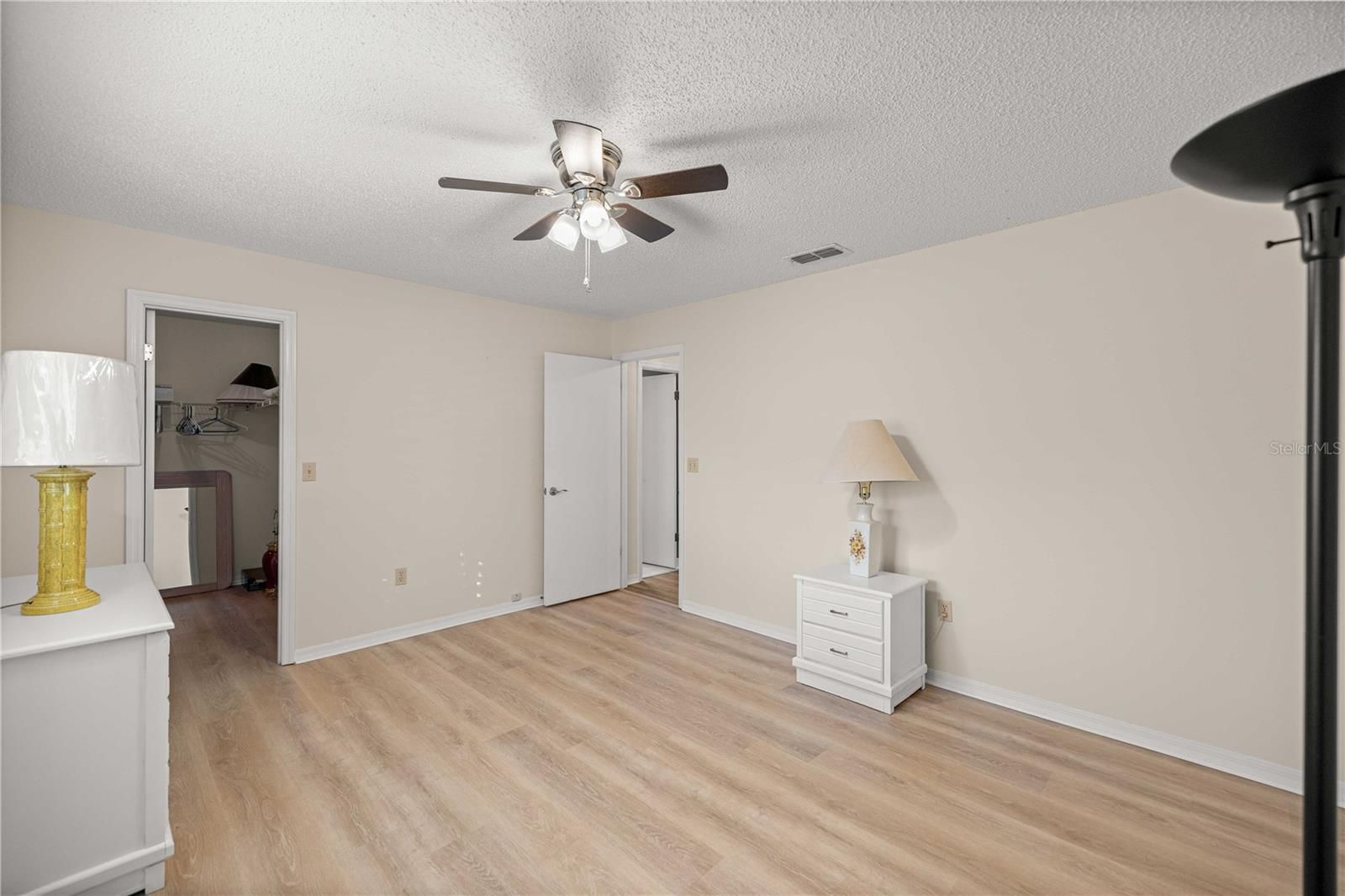 - Built-in Features, Ceiling Fan(s), L-Shaped Dining Room, Living/Dining Room, Open Floorplan, Main Level Primary, Solid Surface Counters, Thermostat, Tray Ceiling(s), Walk-In Closet(s)