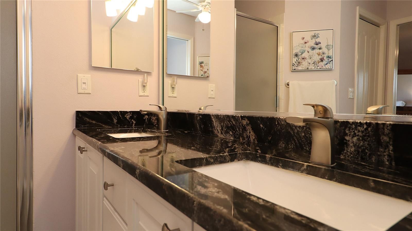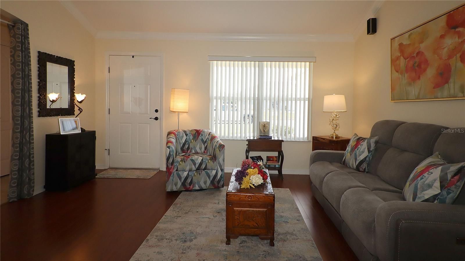 This lovely Banyan 3/2 is located in the Village of Springdale. It has been meticulously cared for and is ready for a new owner. As you enter the front door, you will notice the luxury vinyl laminate flooring throughout (no carpet). There is crown moulding in living room, kitchen, dining and Florida Room. There are 3 solar tubes in this home,(kitchen, laundry and guest bath). The counters in the kitchen and both baths are granite. The kitchen and both baths have tile flooring. There is an electric range in the kitchen ( gas hook up behind), stainless appliances, under and over cabinet lighting and a light in the corner cabinet. The laundry room is just off the kitchen and has a washer and gas dryer. Notice the large pantry in he laundry room. All three bedrooms have closets. The Primary bathroom has a nice tiled shower and beautiful granite counters with updated dual sinks. The guest room to the front has the closet doors removed to creat an office, although the doors are available for replacement if needed. The guest bathroom has a tub/shower combo (tiled wall in this area) and granite counter top. No popcorn ceiling, all ceilings are knockdown. Enjoy sitting in the Florida room or on the adjacent heated and cooled enclosed lanai. Roof 2020, HVAC 2012, HOT WATER 2012 TAXES $1982.85, SP ASSMT $1,131.84 YR, NO BOND