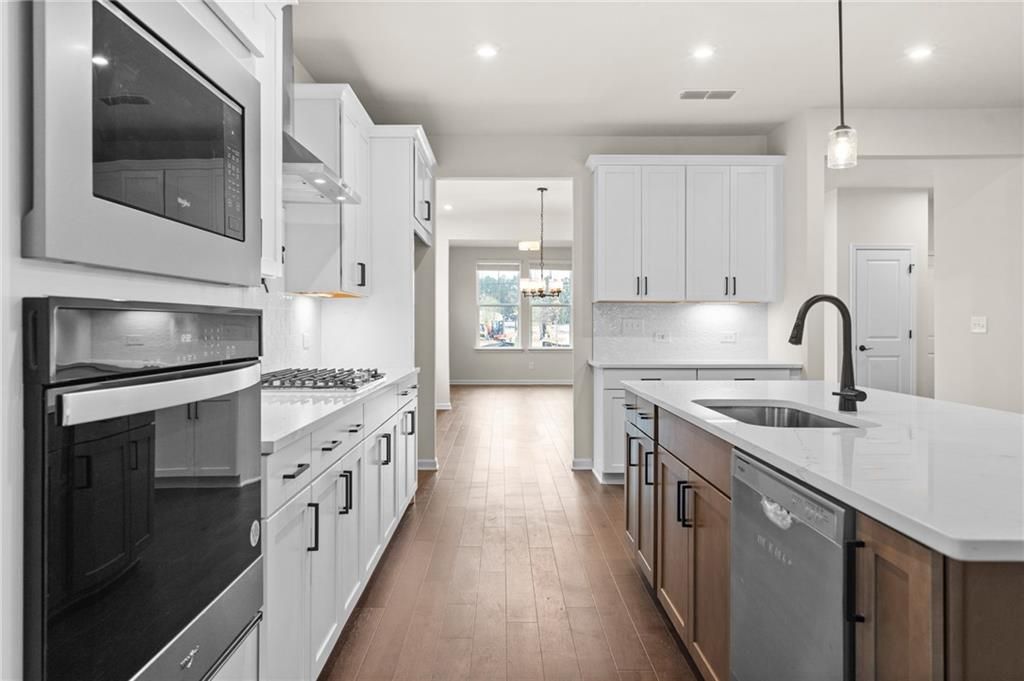 - Dishwasher, Disposal, Double Oven, Electric Oven, Gas Cooktop, Gas Water Heater, Microwave, Range Hood
