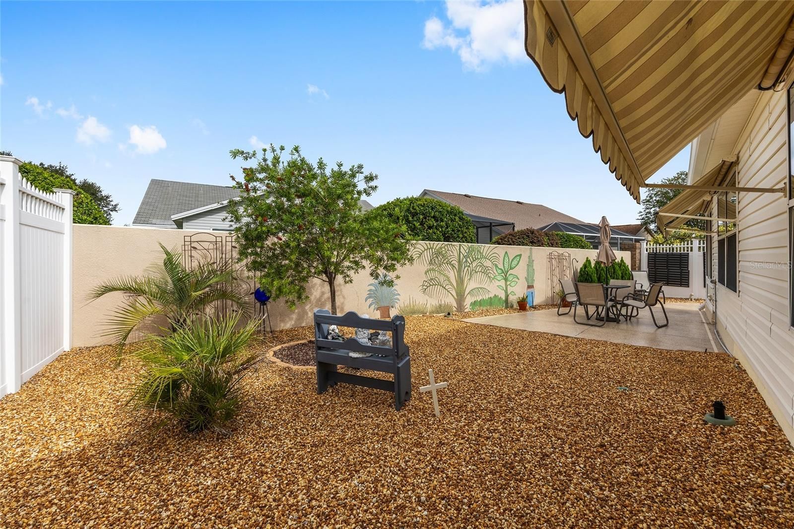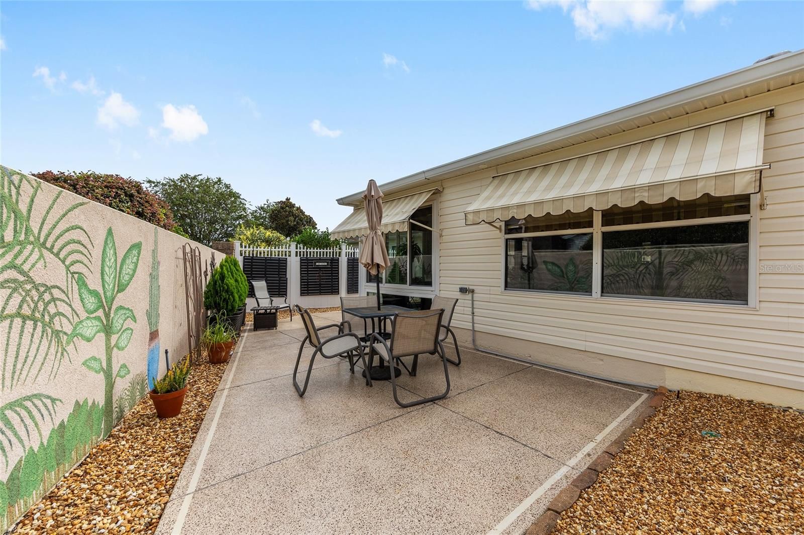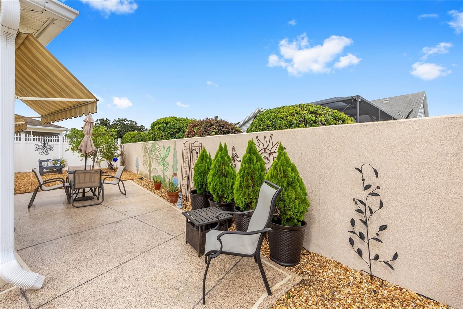 ELEGANT AND BEAUTIFULLY UPDATED ** This AMAZING Anna Maria Courtyard Villa in the Village of Piedmont, Chadwick Villas comes TURNKEY! – BOND IS PAID! -- This Gorgeous 3-Bedroom, 2-Bath GAS home offers 1,733 Sq Ft of Living Space with High & Vaulted Ceilings, NO CARPET (Tile & Laminate), NO POPCORN Ceilings, SOLAR TUBES, Custom Pull-Down Shades, Chair Rail & Decorative Picture Frame Wainscoting!! -- The Kitchen SHINES with QUARTZ Countertops, Shaker Style Cabinetry with Pull-outs, TILED BACKSPLASH, Cabinet Pantry with Pull-outs, and Maytag STAINLESS STEEL Appliances. -- The SPACIOUS Living and Dining Areas open to a light filled Florida Room with Tile Plank Flooring and Sliding Windows, which lead to a private COURTYARD and Rear Patio featuring LOW MAINTENANCE Landscaping with Rock Mulch, (No Grass) and a CUSTOM PAINTED MURAL!! – The PRIMARY SUITE offers a 15 Ft x 12.5 Ft Bedroom with Ceiling Fan, Dual Windows to Courtyard. The En-suite Bathroom with Pocket Door Entry features DUAL SINKS, a Step-in Tiled Shower (Floor & Walls to Ceiling) with Tiled Bench Seat & Glass Entry Door, Walk-in Closet, 2 SOLAR TUBES & Private Privy. – There are 2 Guest Bedrooms, both with Built-in Closets! -- The Guest Bathroom has a QUARTZ Topped Vanity, Step-in Shower with Tiled Walls to Ceiling, Corner Bench Seat and Glass Door Entry. – Major Updates include a 2020 ROOF, 2017 HVAC, and 2022 Gas Water Heater!! -- The Garage is 1-Car Plus Golf Cart Parking, Laundry is in Garage (Washer & Gas Dryer), Utility Sink, Keyless Garage Entry, Wall Mounted Cabinets & Wire Shelving! - Please watch the professional video tour for this GORGEOUS home! Don’t miss out on this GEM in The Villages, FL!!! (Buyer is responsible for verifying all information and measurements.)