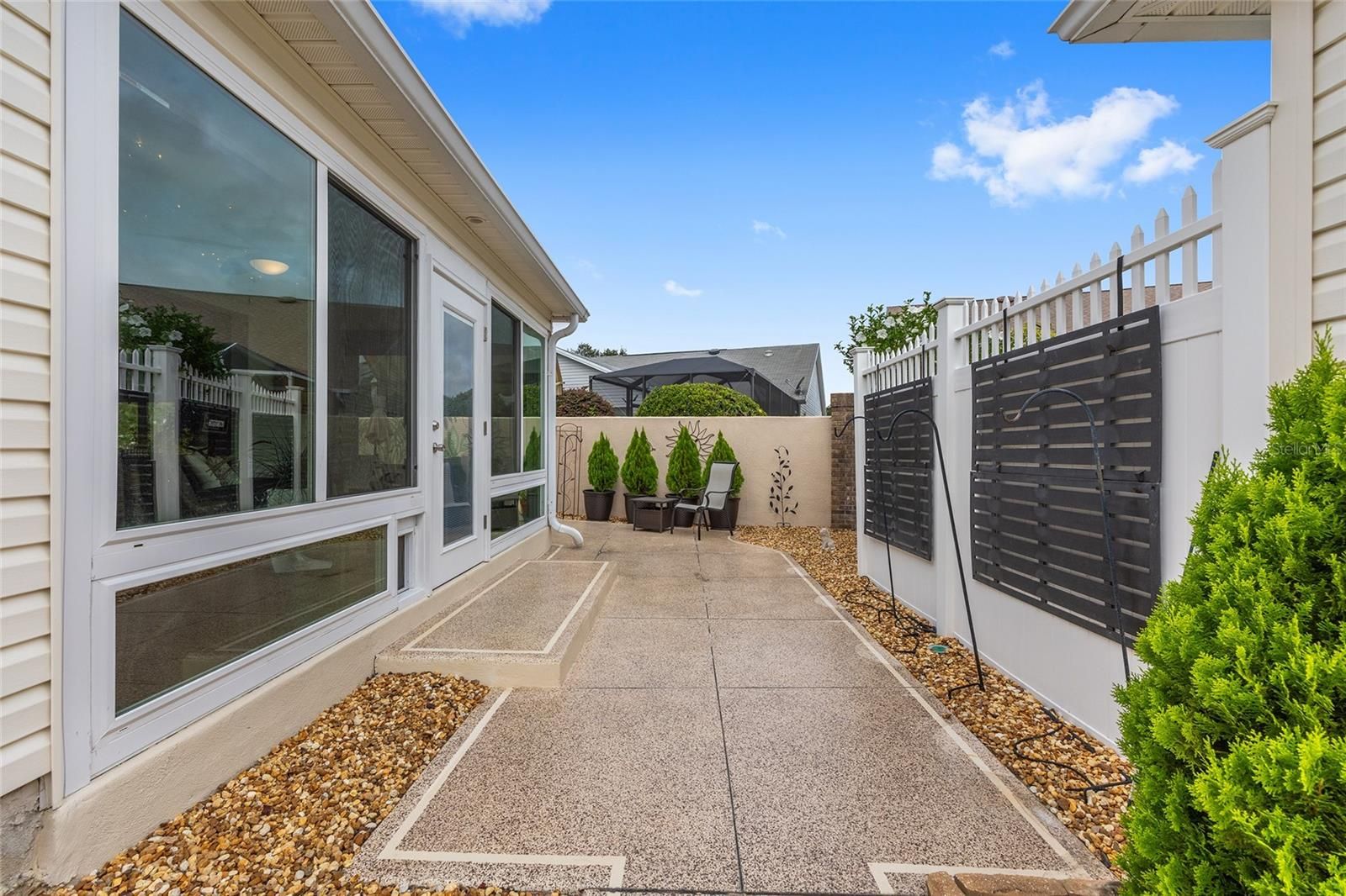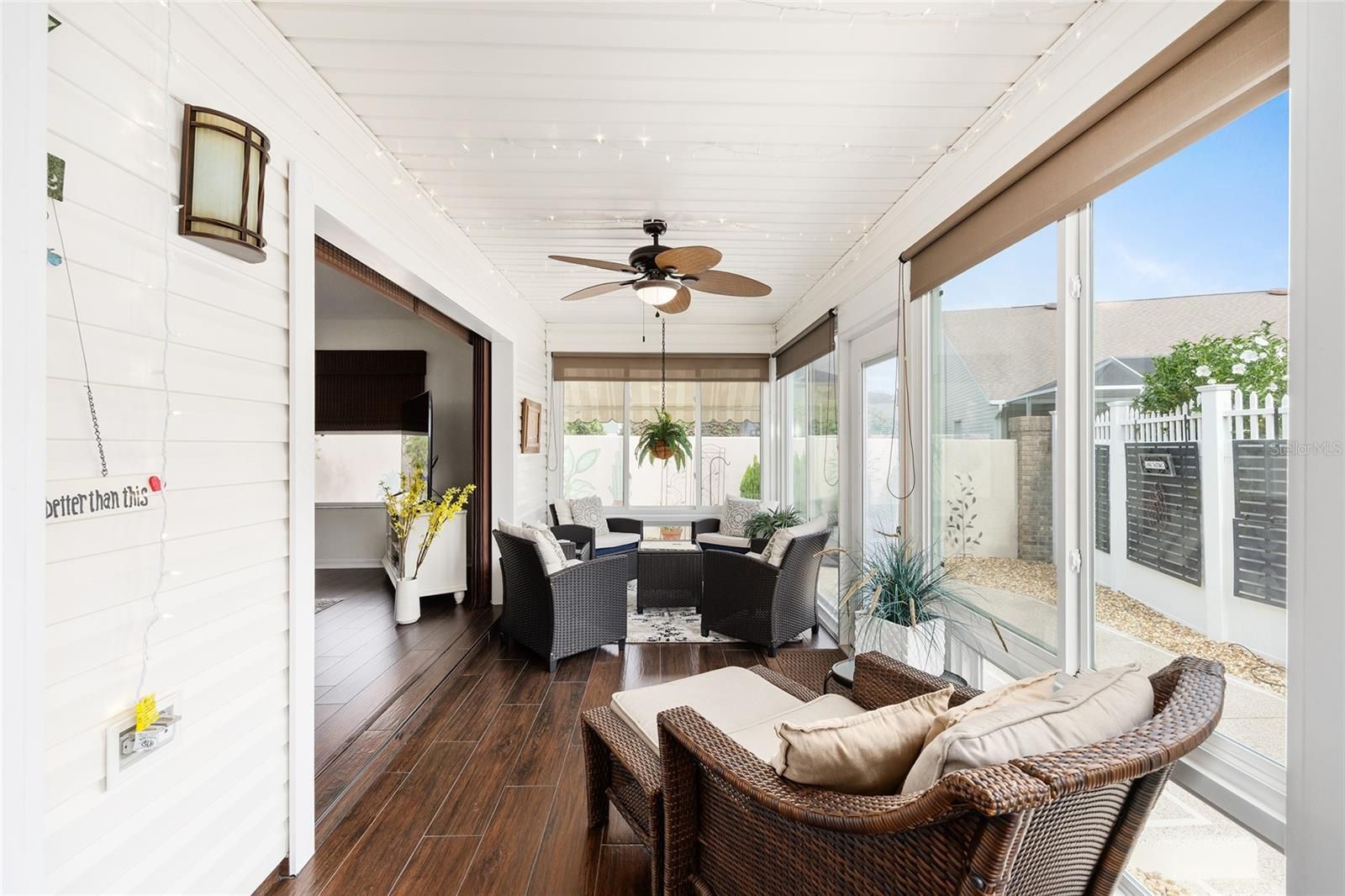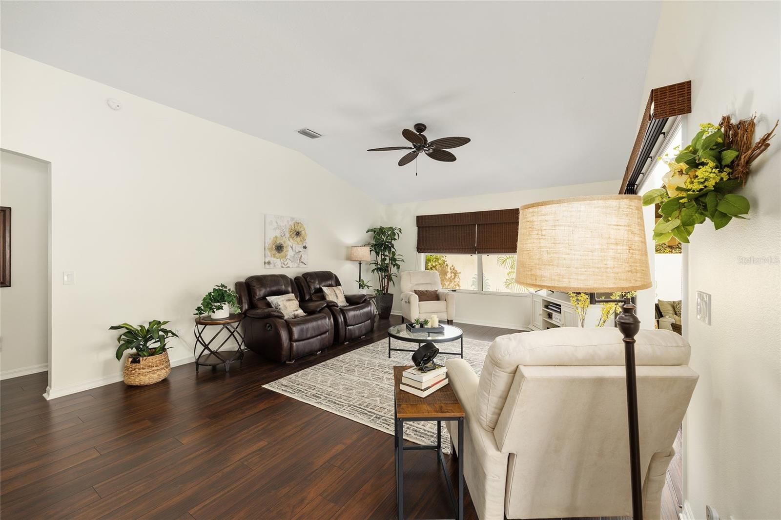 ELEGANT AND BEAUTIFULLY UPDATED ** This AMAZING Anna Maria Courtyard Villa in the Village of Piedmont, Chadwick Villas comes TURNKEY! – BOND IS PAID! -- This Gorgeous 3-Bedroom, 2-Bath GAS home offers 1,733 Sq Ft of Living Space with High & Vaulted Ceilings, NO CARPET (Tile & Laminate), NO POPCORN Ceilings, SOLAR TUBES, Custom Pull-Down Shades, Chair Rail & Decorative Picture Frame Wainscoting!! -- The Kitchen SHINES with QUARTZ Countertops, Shaker Style Cabinetry with Pull-outs, TILED BACKSPLASH, Cabinet Pantry with Pull-outs, and Maytag STAINLESS STEEL Appliances. -- The SPACIOUS Living and Dining Areas open to a light filled Florida Room with Tile Plank Flooring and Sliding Windows, which lead to a private COURTYARD and Rear Patio featuring LOW MAINTENANCE Landscaping with Rock Mulch, (No Grass) and a CUSTOM PAINTED MURAL!! – The PRIMARY SUITE offers a 15 Ft x 12.5 Ft Bedroom with Ceiling Fan, Dual Windows to Courtyard. The En-suite Bathroom with Pocket Door Entry features DUAL SINKS, a Step-in Tiled Shower (Floor & Walls to Ceiling) with Tiled Bench Seat & Glass Entry Door, Walk-in Closet, 2 SOLAR TUBES & Private Privy. – There are 2 Guest Bedrooms, both with Built-in Closets! -- The Guest Bathroom has a QUARTZ Topped Vanity, Step-in Shower with Tiled Walls to Ceiling, Corner Bench Seat and Glass Door Entry. – Major Updates include a 2020 ROOF, 2017 HVAC, and 2022 Gas Water Heater!! -- The Garage is 1-Car Plus Golf Cart Parking, Laundry is in Garage (Washer & Gas Dryer), Utility Sink, Keyless Garage Entry, Wall Mounted Cabinets & Wire Shelving! - Please watch the professional video tour for this GORGEOUS home! Don’t miss out on this GEM in The Villages, FL!!! (Buyer is responsible for verifying all information and measurements.)