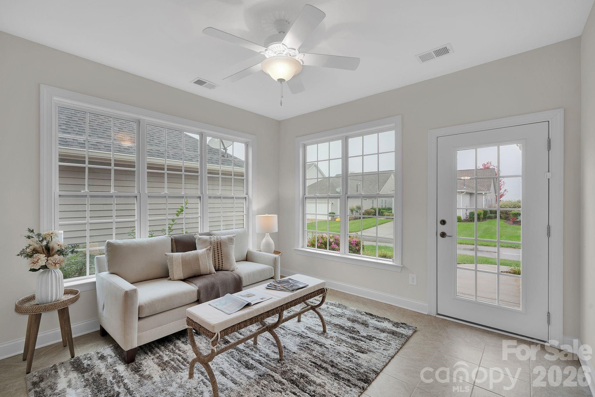 Welcome to Baileys Glen—a desirable and vibrant 55 and older community. This beautifully maintained 1.5-story home provides an ideal layout for entertaining, daily living, or simply relaxing. Step inside from the charming rocking-chair front porch to find a bright and inviting dining room, followed by the first of two generous bedrooms complete with a full bath. Nearby, the private and very spacious primary suite features a tasteful en suite bath for added comfort along with a huge walk-in closet. Down the hallway, a versatile flex space provides the perfect spot for a home office, reading nook, or hobby area. The open-concept kitchen boasts an abundance of cabinets with under cabinet lighting, a large pantry, and flows seamlessly into the cozy, light-filled living room. Step into the bright and inviting sunroom—a wonderful addition to the home that offers the perfect space to enjoy your morning coffee or relax at the end of the day. Upstairs, you will find a large loft area perfect for an additional sitting room or workspace, along with another spacious bedroom and a convenient Jack-and-Jill bath. Additional highlights include ample storage throughout, extremely generous walk-in storage on the upper level, a tankless water heater, and a main-level laundry room with extra cabinets. In this community you can also take advantage of the many activities that are available - an amazing craft center complete with woodworking and pottery shop, pickle ball or tennis courts, fitness center, clubhouse, pool, library, just to name a few! The social calendar will definitely keep you busy! But if these amenities don't keep you active enough, the home is located less than 10 minutes away from Northern Regional Recreation Center and close drive to popular restaurants, shopping and nearby highways. There are so many reasons to view this wonderful home so schedule your showing today!
