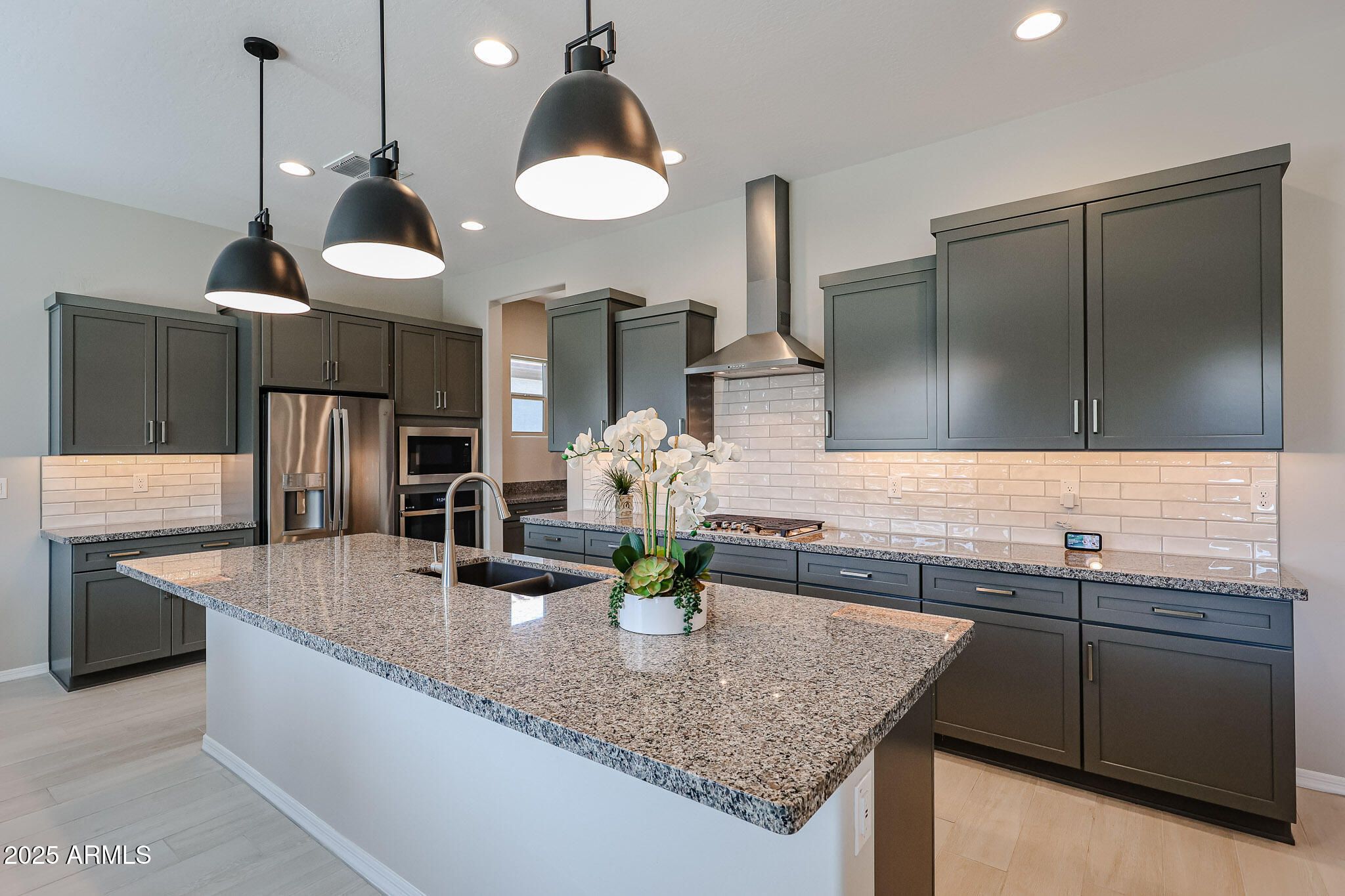 BETTER THAN NEW! This stunning 1yr old home has been gently lived in and thoughtfully upgraded throughout. Featuring 2 bed/2 bath and an office, the open layout showcases tall ceilings, gorgeous tile flooring and custom lighting. The gourmet kitchen is a dream w/ upgraded cabinets, granite countertops, gas cooktop w/hood vent, built-in wall oven and microwave, SS appliances, spacious entertaining island plus a butler's pantry. The primary suite offers a double vanity, large shower and walk-in closet. The outdoor space is amazing with a lot size of 0.244 of an acre! Large enough for a pool! Covered patio with synthetic grass and views of the mountains. This home comes with all appliances. The Cantamia lifestyle is awaiting you! Amenities include: indoor/outdoor heated pools, pickleball and tennis courts, workout facility, steam/sauna rooms in each of the men's and women's locker rooms, 2 spas, restaurant, tech room, art studio, cooking club, entertainment, bunko, bingo, bocce ball, bowling league, cards and games, and so much more!