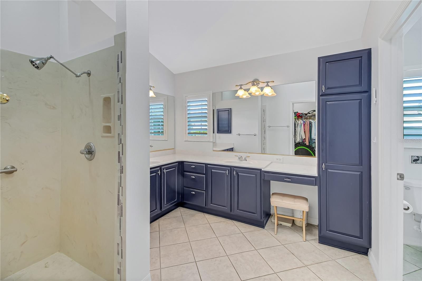 - Eat-in Kitchen, High Ceilings, Kitchen/Family Room Combo, Living/Dining Room, Open Floorplan, Split Bedrooms, Stone Counters, Vaulted Ceiling(s), Walk-In Closet(s)