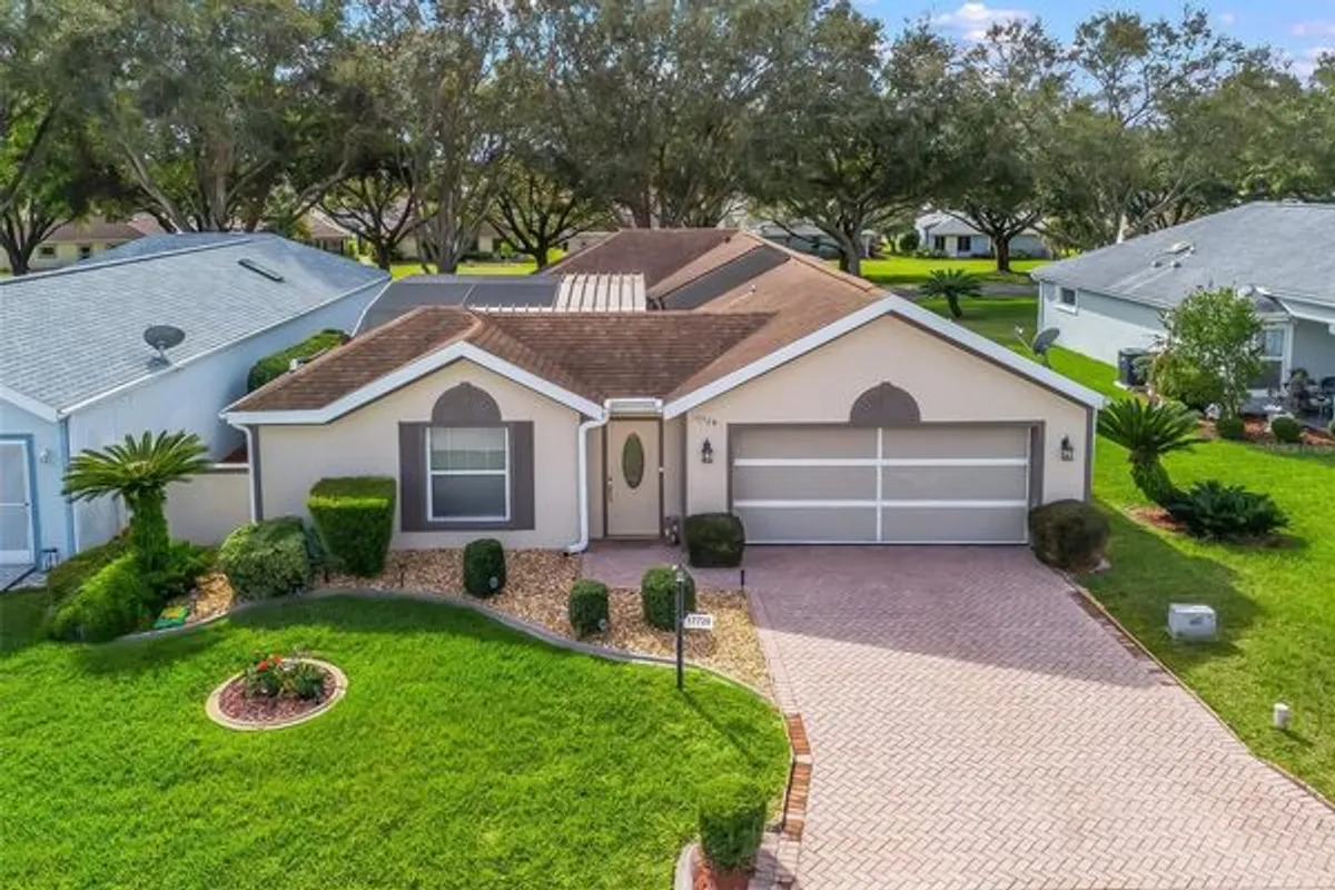 STONECREST is a 55+ Golf Course Community With All The Amenities, and just a Bridge Away By Golf Cart To The Villages! Come See this Beautiful Pool Home! 3/2.5 + Concrete Block and Stucco Casita Villa with a 2 Car Garage, and Rear Privacy Landscaping! ROOF 2019! HVAC 2019! This is an Impressive home with an Exceptional floor plan, featuring the Casita (Bedroom 2) Detached with a Private Entrance, New Carpet, Kitchenette, Full Bathroom with a Newer Comfort High Commode, New Shower, and Sliding door access to the Birdcage (screen replaced 2024) Enclosed POOL with Painted Deck, New Pool Pump (1.1 HP energy efficient with 3 year warranty (5/2025), New LED Pool Light, and Solar for Pool serviced! The main house features an Open Concept Floor Plan, New Light Fixtures throughout, 4 New Ceiling Fans and Vaulted ceilings! The Open Kitchen offers New Granite Countertops, Under counter lighting, New Wood Cabinets, New Luxury Vinyl Plank flooring, a nice size Breakfast bar, Pantry closet, Laundry closet, and New LG Stainless Appliances! You will Love This Open Concept Floor Plan with a Huge Spacious, Light and Bright Great Room, just perfect for Entertaining Friends and Family or Enjoying relaxing in the comfort of your Tropical Paradise! The Luxurious Primary Suite showcases a Private access to the Courtyard, New Carpet, and an En Suite bathroom. The En Suite bathroom boasts a 2 Sink Vanity with New Mirrors & Lights (2024), New Walk in Shower, New Comfort High Commode and New Cabinets! The Detached Casita provides your guest with a Walk in Closet, Full bathroom with a New Shower, a Kitchenette, and Private access to the Birdcage Covered Courtyard, and POOL! Garage with Outside Keypad, Full Size Refrigerator, Electric Screen Door, and Door Opener. This home offers Plenty of Privacy for both the Owners and their Guest! Relax, and Enjoy Your Own Private Oasis with a Tremendous Outdoor Living Space, Featuring a Solar & Electric Pump Heated Inground Pool with New LED Light, New Pool Pump, Freshly painted Pool deck, Birdcage, and a Private courtyard! Osmosis Filtration System, Solar Heating Panels for Pool (2020), 4 Anderson Sliding Doors Installed with Lifetime Transferable Warranty (2024) Water Heater Element Replaced (2024) HVAC serviced (2024) Stonecrest is a 55+ gated golf course community with all the amenities, pools, pickleball courts, softball, 18 hole championship golf course, Broad Stripes Golf & Social Club and over 80 different clubs to join! Stonecrest is just a bridge away by golf cart to the Villages. It is a community with Private Roads and 24 Hour Security! As a private gated golf course community, you can expect a high level of privacy and security. Overall, this home offers a combination of Tremendous Outdoor Space, luxurious features, a desirable location, and a secure community setting. A WONDERFUL LIFESTYLE AWAITS YOU IN STONECREST!