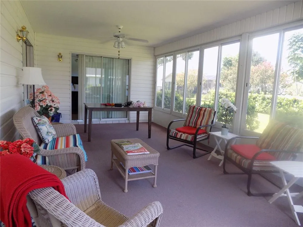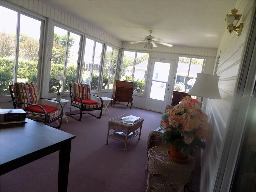 New Roof in 2024, new windows in lanai in 2021, portable air unit which cools lanai easily. HVAC installed in 2009. Ceilings are NOT popcorn so check this house out. The floor plan is one of the most popular in the neighborhood Split bedroom design along with the spacious lanai enclosed, acrylic windows, and very usable as a office, craft or occasional guest room. Not an add-on so under roof and a finished area. This is a well maintained and comfortable home located in the best community near the villages. House is near the recreation center and pool and a easy walk to all your activities. Access to shopping, doctors and much more. Walmart i even a golf cart ride away. Security guard on 24 hours with a roaming guard on duty. Check this home out, promise it will be worth the walk-through.
