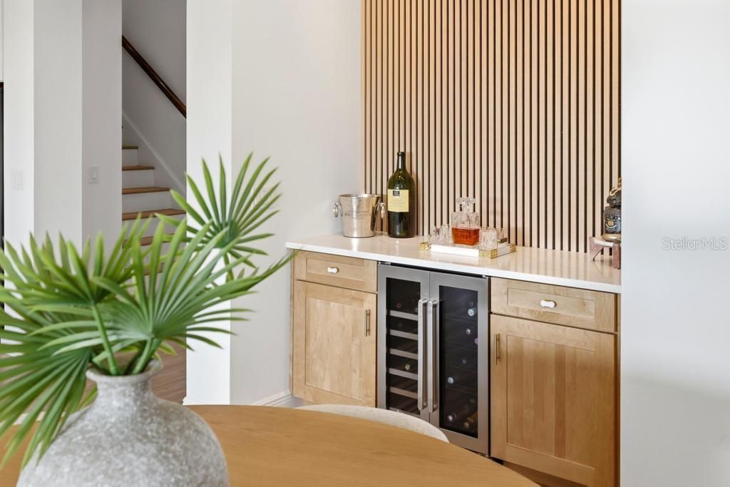 - Ceiling Fan(s), Dry Bar, Eat-in Kitchen, High Ceilings, In-Wall Pest Control, Open Floorplan, Main Level Primary, Solid-Wood Cabinets, Stone Counters, Thermostat, Tray Ceiling(s), Walk-In Closet(s), Window Treatments