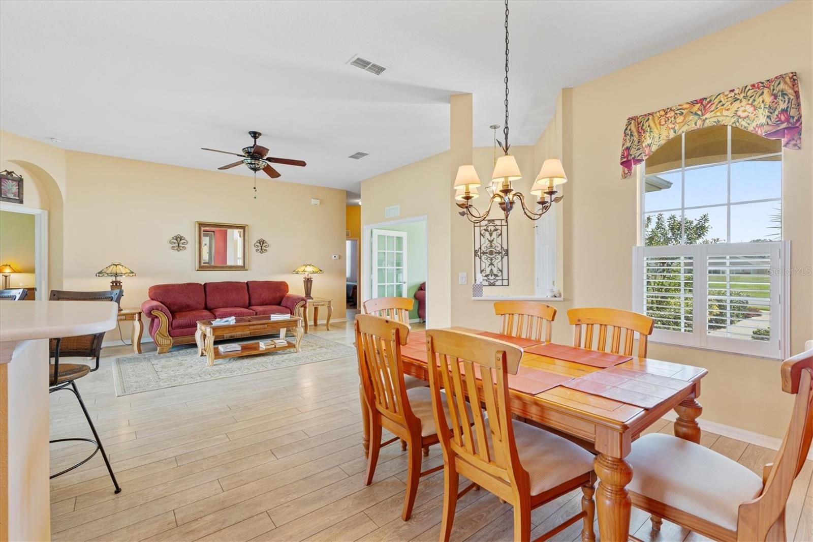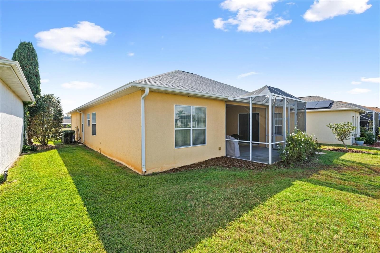 Welcome to the Exclusive 55+ Gated Golf Community of STONECREST, adjacent to THE VILLAGES, Florida. This beautiful 2 Bedroom PLUS DEN, 2 Bath home sits directly on the golf course at the 8th tee box and offers stunning views to enjoy year-round. Inside, you’ll find 10' CEILINGS and LAMINATE FLOORING throughout the home, creating a light and open feel. The Kitchen is designed for both style and functionality with CORIAN countertops, 42" CABINETS, STAINLESS STEEL Appliances, Pantry closet, and Breakfast Bar. A sliding door leads from the kitchen to the lanai, extending your living space outdoors. Windows in the Den are adorned with PLANTATION SHUTTERS and French doors that open to the Living room. The Primary suite Features its own sliding doors to the Lanai, Large WALK-IN Closet, and an en-suite Bathroom with Dual Vanities, Soaking Tub, and Walk-in Shower. The LANAI with BIRDCAGE enclosure is the perfect spot to relax with a refreshing drink while admiring your golf course view. Major updates include NEW ROOF (2019), giving you peace of mind. Stonecrest offers an impressive array of amenities, including four swimming pools—one of which is an Olympic-size indoor pool, spa, tennis and pickleball courts, bocce ball, softball field, and more than 80 clubs to join. With shopping, dining, and medical facilities just a golf cart ride away, everything you need is within reach. Don’t let retirement pass you by, start enjoying it here in Stonecrest! Call today to schedule your private showing.