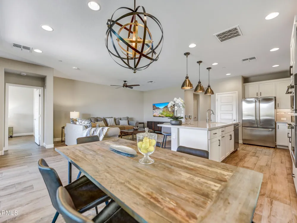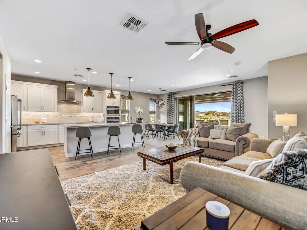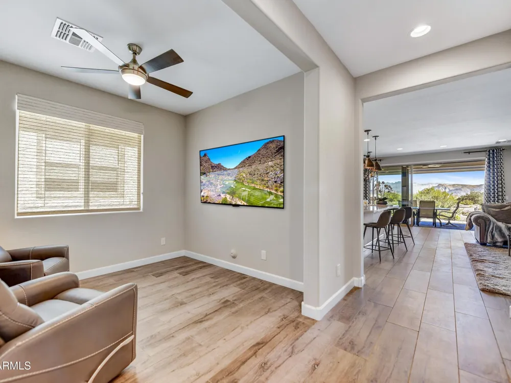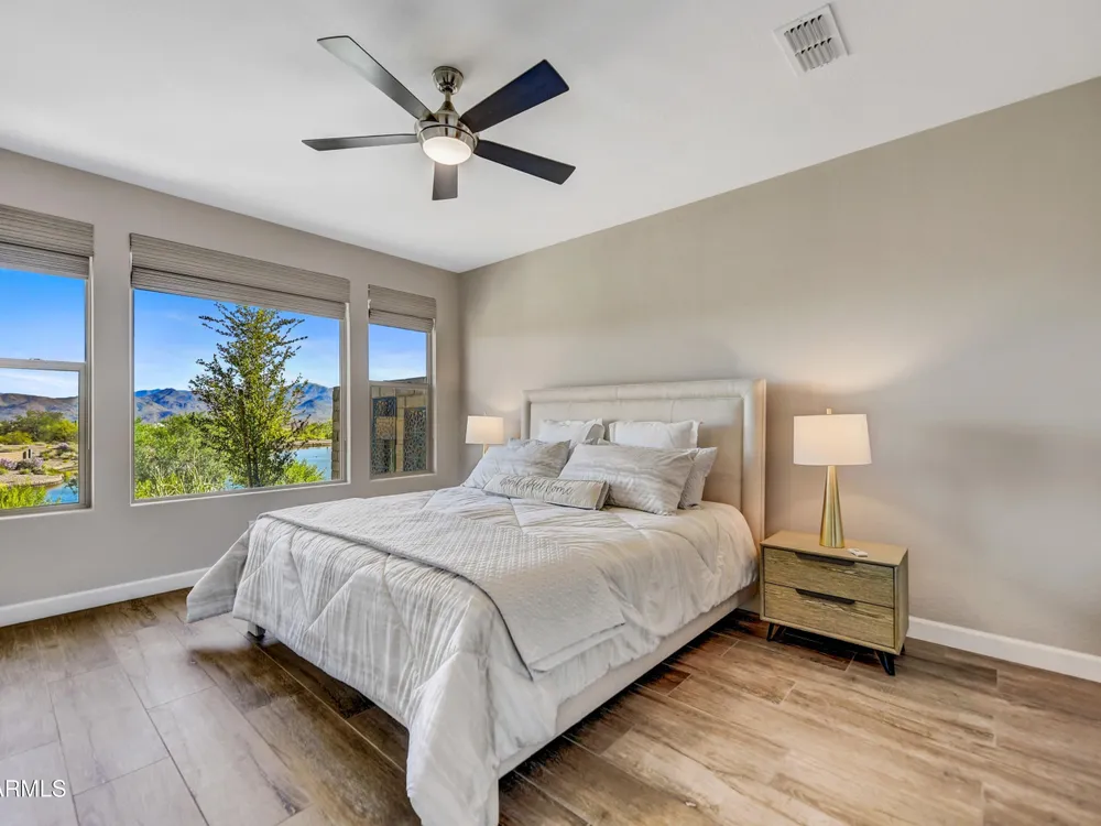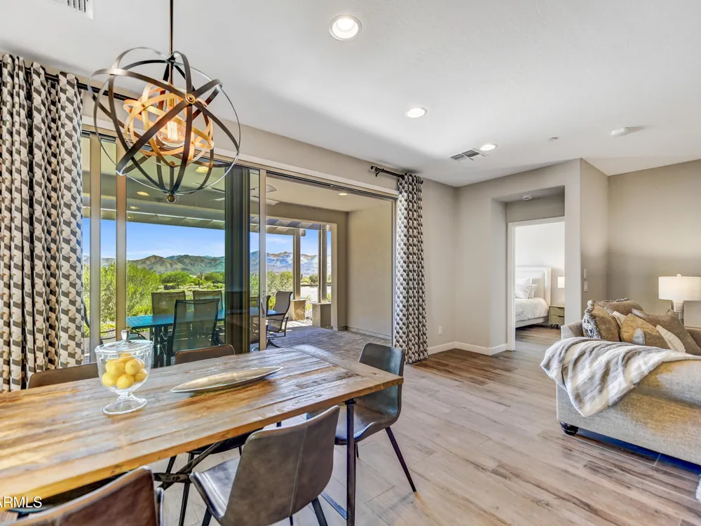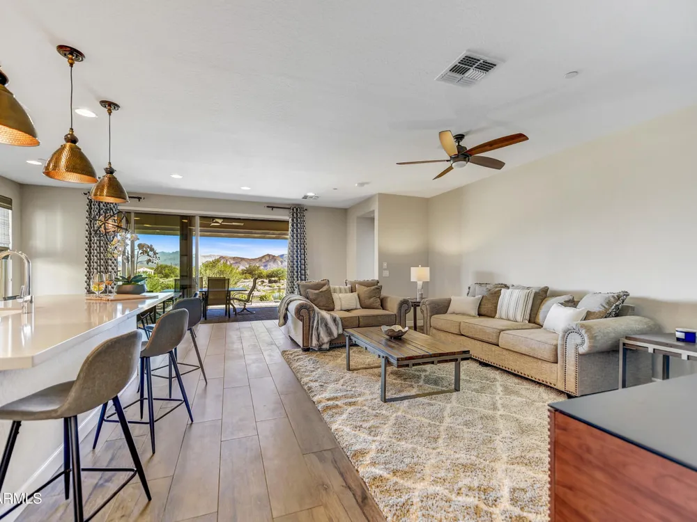 Situated on one of the MOST COMMANDING ELEVATED HOMESITES in the Resort section of the prestigious Trilogy at Verde River, this stunning Residence has MAJESTIC VIEWS overlooking the Lake and stunning Tonto National Mountain Range. WALL OF GLASS in the GREAT ROOM opens to Gourmet Appliance package, upgraded cabinets, Quartz countertops and under cabinet lighting entice one to step out to the comfortable extended patio with custom Pergola for entertaining or personal enjoyment. ICONIC FOUR PEAKS are silently poised nearby as you are looking straight down the beautiful Lake and Tonto National Mountain Range. Prepare for moments of Awe! in this highly desirable 2 Bedroom, 2.5-bathroom Valetta floorplan replete with beautiful and functional upgrades throughout. Every detail exudes an ambienc e that is warm and comfortable for an unequaled Lifestyle. Kitchen upgrades include Gourmet Appliance package, upgraded cabinets, Quartz countertops and under cabinet lighting. Other notable upgrades include wood look tile throughout, custom Window Coverings, epoxy flooring and built-in cabinets in the garage, both Reverse Osmosis and Soft Water System. Experience the ultimate in Luxury Living! Trilogy at Verde River offers upscale Resort living at its finest and the very best of all possible worlds, close to the conveniences of affluent North Scottsdale, yet secreted within the pristine privacy of the Sonoran Desert. The amenities are World Class with Tom Lehman inspired eighteen-hole Golf course, tennis courts, pickle ball courts, and bocce ball, heated lap pool and Resort style swimming pool, hot tub, Afterburn fitness center, Helen's demonstration Kitchen for cooking classes and a 7.5 acre dog park. The community center has casual poolside dining at Eddy's Diner and gourmet dining at award-winning Needle Rock Kitchen and Tap, Alvea Spa with full-service Salon and Spa amenities, Art Loft and events center. Trilogy at Verde River is adjacent to the Tonto National Forest and is situated in the middle of miles and miles of hiking and biking trails. Whether you're seeking a second, winter home, or will live here year-round, Trilogy at Verde River is an ideal distance from the hustle and bustle of North Scottsdale. You'll love the Resort living! What memories will you make?