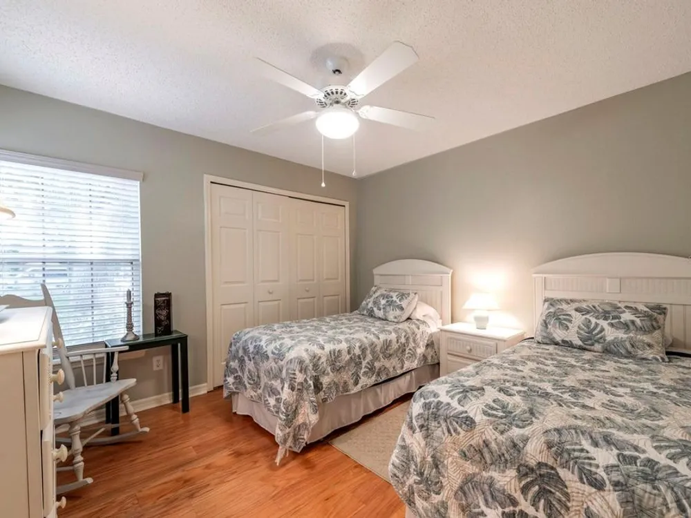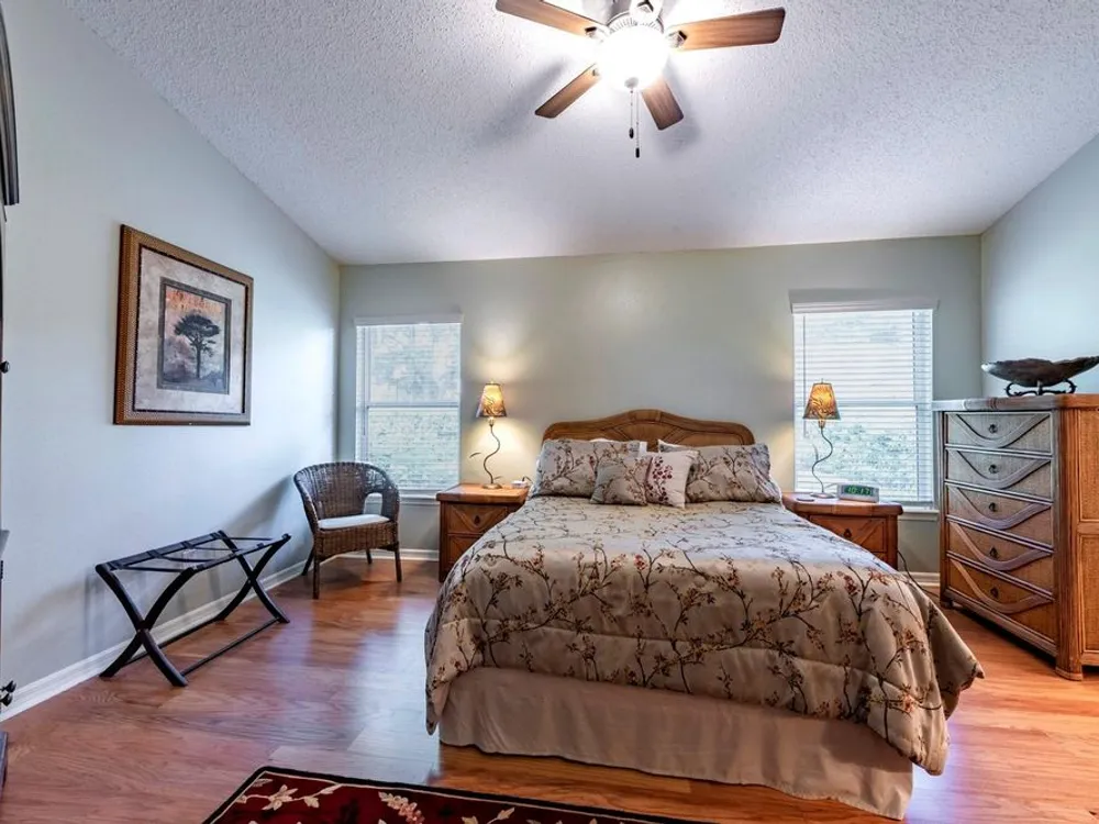 - Ceiling Fan(s), High Ceilings, Living/Dining Room, Open Floorplan, Main Level Primary, Solid Surface Counters, Split Bedrooms, Thermostat, Walk-In Closet(s), Window Treatments