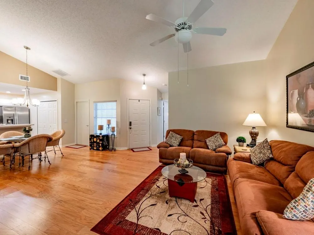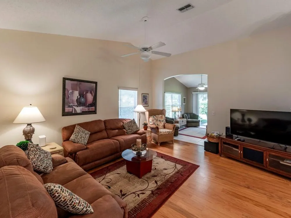 Turnkey Cottage in the Country Club of Mount Dora --- Looking for a Florida retreat that’s fully furnished and move-in ready? This charming 2-bedroom, 2-bath Villa is the perfect turnkey option—ideal as a seasonal retreat, second home, full-time residence, or short-term rental property investment. Located at 1775 Country Club Blvd, right across from the pool, tennis courts, and clubhouse, it offers the best of easy living, comfort, and community. Step through the screened breezeway into a light-filled great room with vaulted ceilings and a peaceful view through the sunroom to a private backyard. The split-bedroom design ensures privacy: this spacious primary suite features an airy bedroom and the primary bathroom has dual sinks, a walk-in shower, and ample closet space. The guest bedroom and bath are located on the opposite side of the home making it ideal for overnight company. Renovated in 2022, the cottage boasts new engineered hardwood and vinyl flooring, a cozy dining nook, and an updated kitchen with brand-new stainless-steel appliances, a pantry, and fully stocked cupboards ready for immediate use. The sunroom offers a welcoming spot for conversation or overflow guests with its sleeper sofa, while sliding glass doors open to a shady sitting area framed by hedges and mature trees. Additional highlights include a single-car garage, high-end washer/dryer, and excellent storage—including a versatile closet that is large enough to serve as a compact home office. Part of the Country Club of Mount Dora’s uniform yard maintenance program, this home is designed for carefree living. Just across the street, enjoy optional memberships for golf, tennis, pickleball, and swimming—or take advantage of the public clubhouse with dining and social events. Beyond the Club, historic downtown Mount Dora awaits with its festivals, shops, and lakeside charm. Nature lovers will appreciate the nearby springs, Wekiva Trail, and fishing spots. And, ideally, Orlando’s airport and attractions are only 45 minutes away! Whether you’re ready to downsize, retire in style, or simply enjoy a low-maintenance second home in the Florida sunshine, this cottage is a true find. It can even be used as a weekly or monthly rental as a lucrative financial investment! Schedule your private showing today and discover why Mount Dora is truly someplace special!