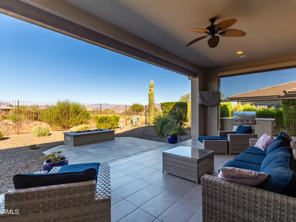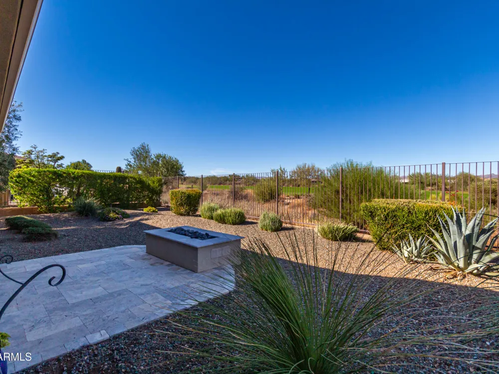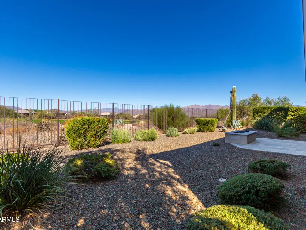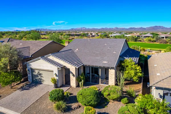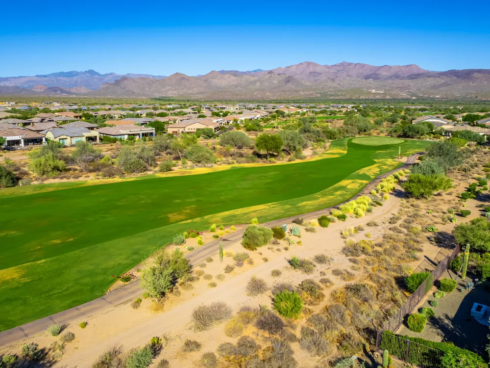 What a View! Enjoy breathtaking vistas of the 11th Fairway & mountain backdrop from this stunning backyard oasis. This meticulously designed 3-bedroom, 2.5-bath Brasada floorplan features a versatile den, an open-concept kitchen/great room, & high-end finishes throughout. The gourmet kitchen boasts a gas stove/oven, spacious island, wine refrigerator, & cozy breakfast area—all in a refined palette of grays & whites complemented by Hunter Douglas blinds & motorized patio shades. Step outside to a private, fenced patio where you can soak in the hot tub, unwind by the fire pit, & savor the views in complete serenity. An automatic watering system keeps the lush landscaping pristine year-round. Don't miss this exceptional opportunity to call Rio Verde home—where luxury and community converge!
