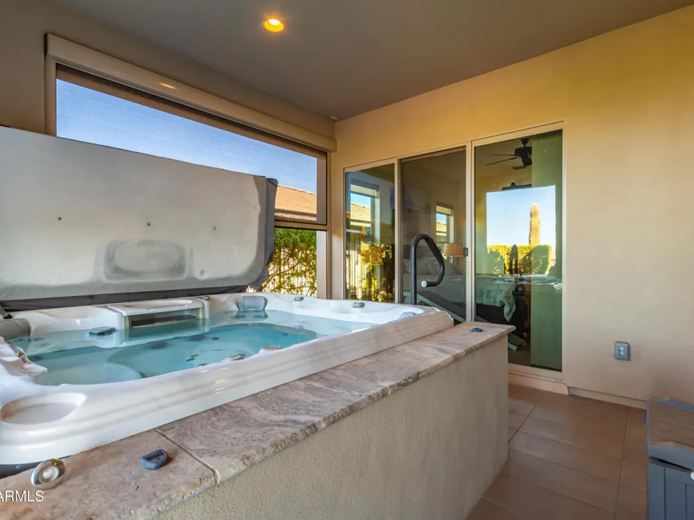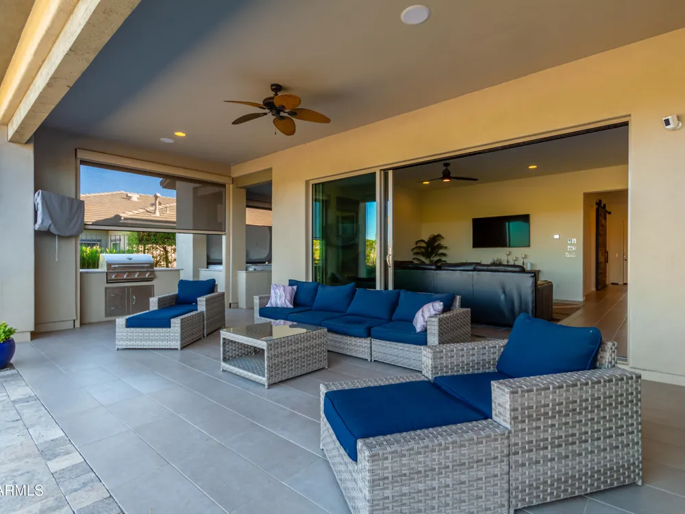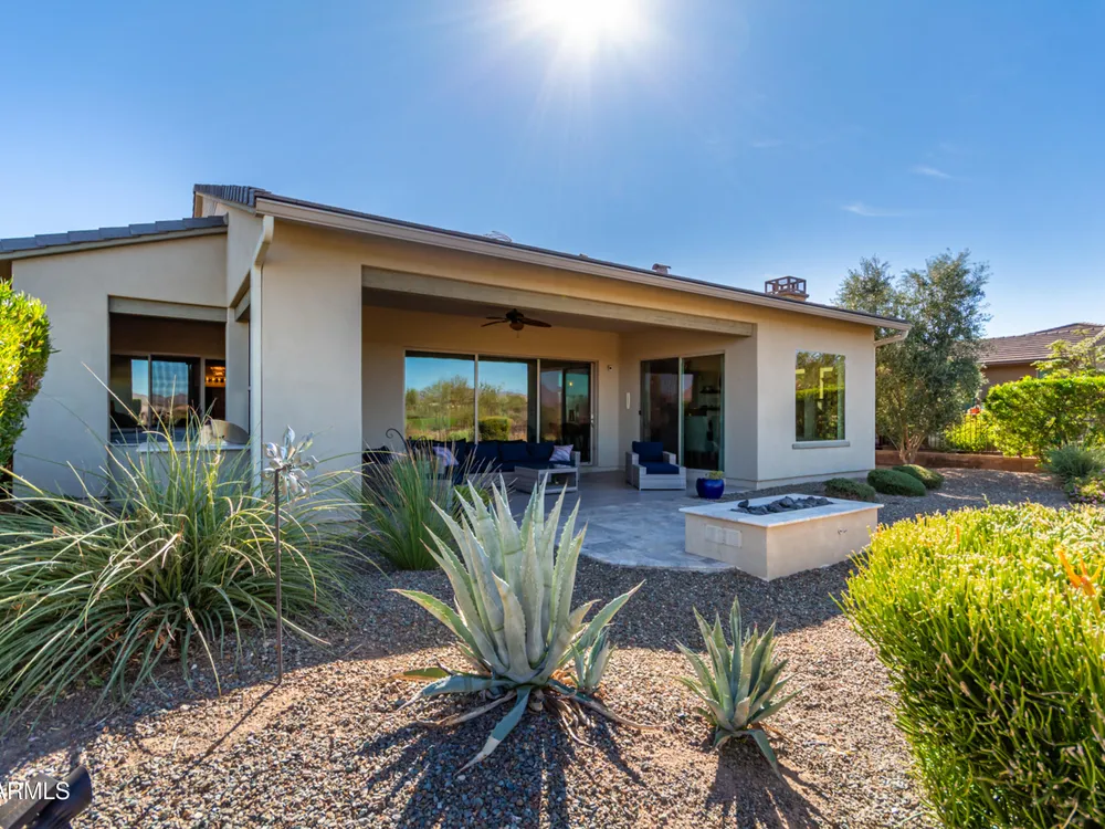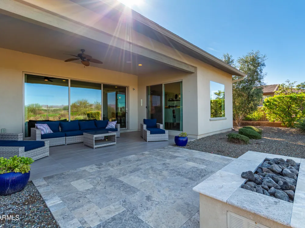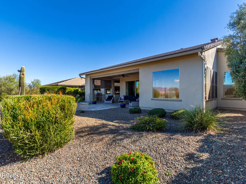 What a View! Enjoy breathtaking vistas of the 11th Fairway & mountain backdrop from this stunning backyard oasis. This meticulously designed 3-bedroom, 2.5-bath Brasada floorplan features a versatile den, an open-concept kitchen/great room, & high-end finishes throughout. The gourmet kitchen boasts a gas stove/oven, spacious island, wine refrigerator, & cozy breakfast area—all in a refined palette of grays & whites complemented by Hunter Douglas blinds & motorized patio shades. Step outside to a private, fenced patio where you can soak in the hot tub, unwind by the fire pit, & savor the views in complete serenity. An automatic watering system keeps the lush landscaping pristine year-round. Don't miss this exceptional opportunity to call Rio Verde home—where luxury and community converge!