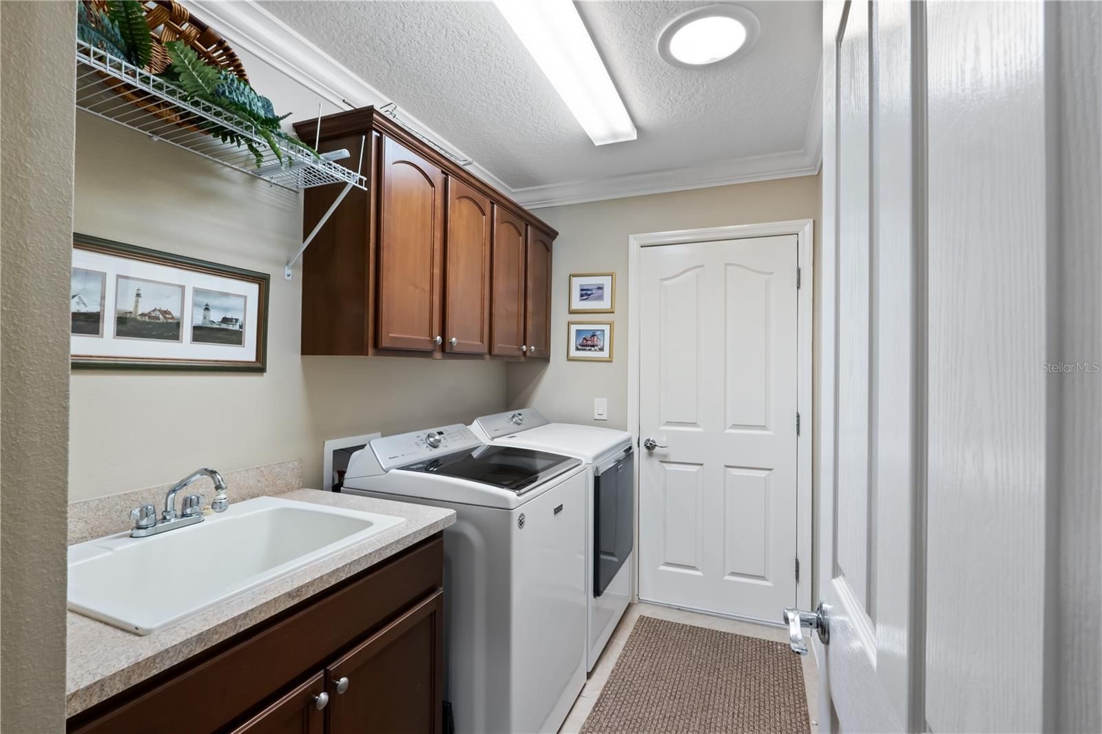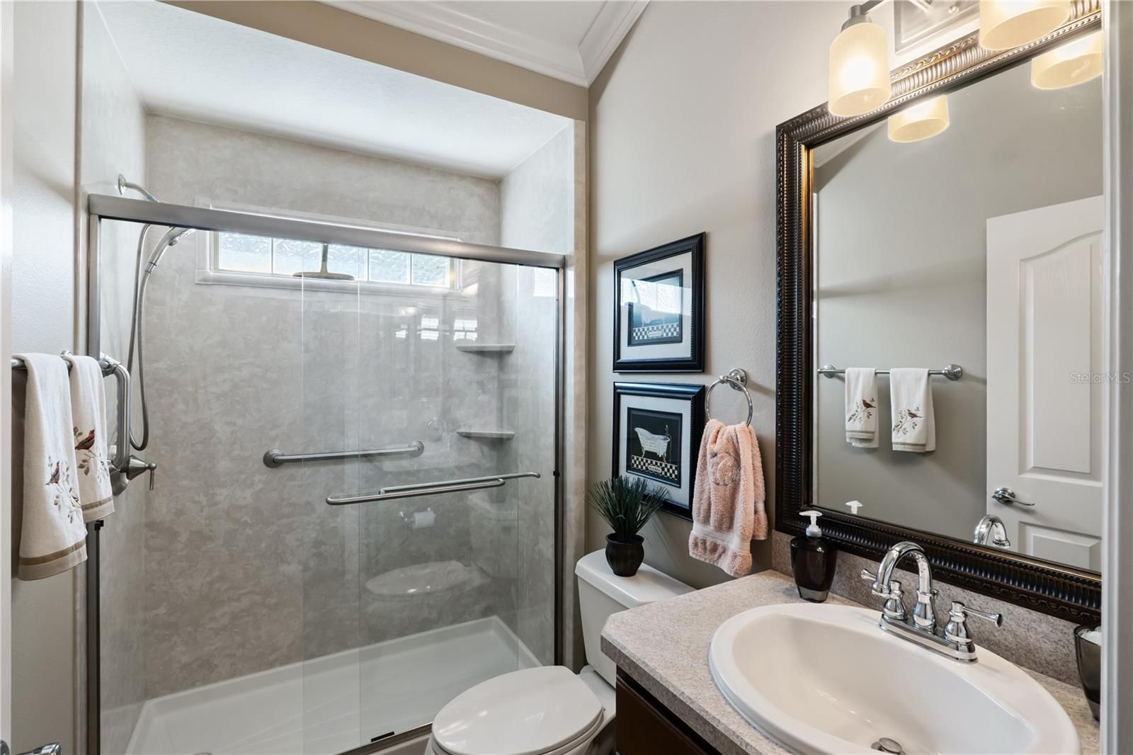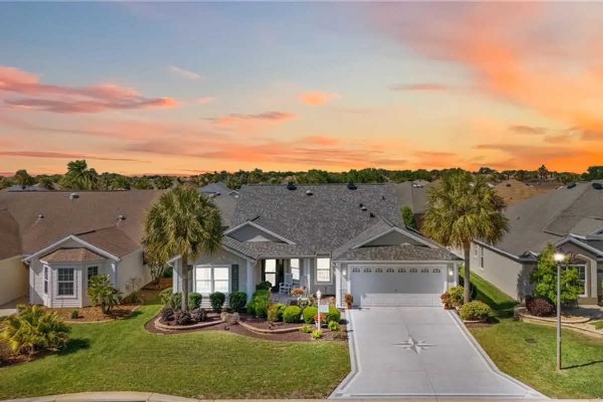 BOND PAID! This beautifully upgraded designer Camellia offers incredible curb appeal with stacked stone accents, red rock in the flower beds, an epoxy-painted driveway that continues into the garage, and a brick paver walkway. Perfectly positioned on an offset homesite, this property backs to open space—providing added privacy and eliminating rear lanai-to-lanai views. Inside, the home shows like a model with ceramic tile and wood laminate flooring throughout—no carpet anywhere. The completely remodeled kitchen is a standout, featuring custom wood cabinetry superior to most homes in The Villages, quartz countertops, and stainless steel appliances including a French door refrigerator and smooth glass-top range. Crown molding, custom wood cornices, and multiple solar tubes add warmth, elegance, and natural light throughout the home. The spacious master suite offers a tray ceiling with crown molding inlays, while the master bath includes dual vanities and a seamless glass shower—also featured in the guest bath. The glass-enclosed lanai provides the perfect space to relax, and there is an additional enlarged grilling pad for outdoor entertaining. Major updates include a brand new roof (2026) and an HVAC system manufactured in August 2020, giving peace of mind on the big-ticket items. The home is meticulously maintained, and furnishings are available separately—making this a truly move-in-ready opportunity in one of the most sought-after communities.