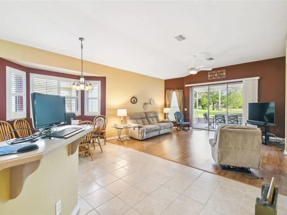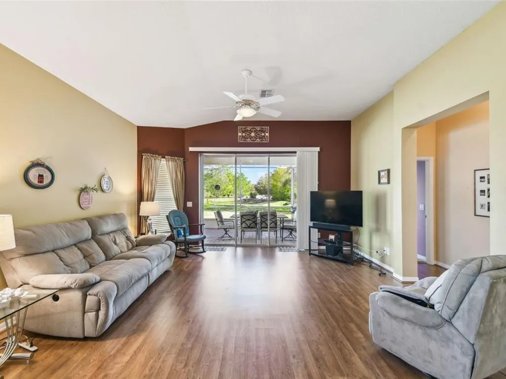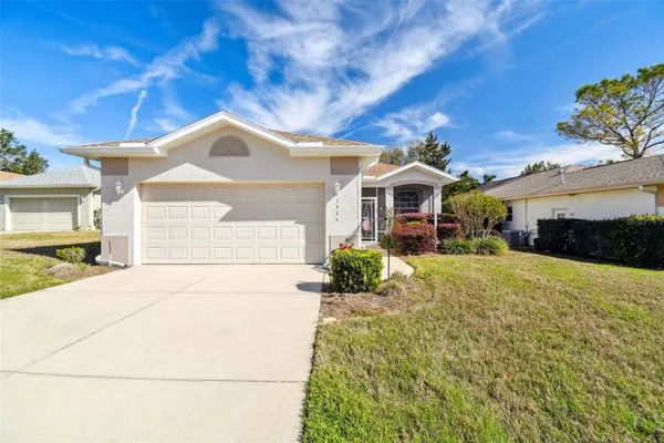 Welcome to this charming 3-bedroom, 2-bathroom home in the desirable gated community of Brentwood Villas in Lecanto, Florida. With 1,621 square feet of living space and a 2-car garage, this home offers a comfortable and spacious layout. Step inside to discover an open floor plan that seamlessly connects the kitchen, dining room, and living room, creating an ideal space for both everyday living and entertaining. The kitchen boasts plenty of cabinet space, and solid surface countertops. Just off the kitchen, the dining area leads into the spacious living room, which features vaulted ceilings and a sliding glass door that opens to the screened-in lanai, perfect for enjoying the beautiful Florida weather. The primary bedroom is a peaceful retreat, also with vaulted ceilings, and an en suite bathroom with a generous walk-in closet, dual sinks and a large walk-in shower. Outside, the screened lanai overlooks the expansive backyard, offering plenty of space for outdoor activities. As a resident of the Brentwood Villas community, you'll have access to a fitness center, pool, and more. Don’t miss the opportunity to make this beautiful home yours!