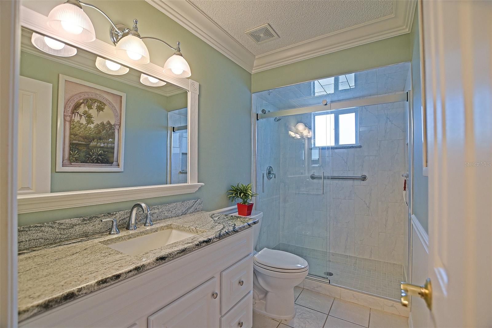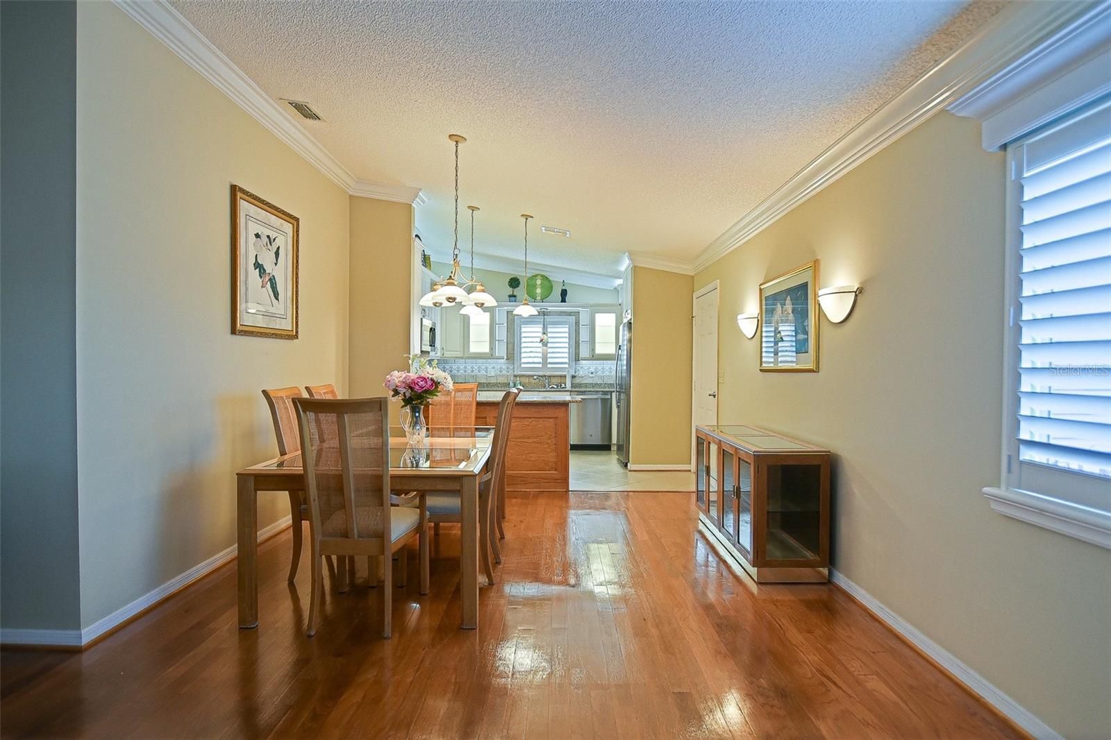 Get ready to be charmed with this move in ready 3/2 with a private rear lot. Looking for upgrades, this is it! Crown molding, hardwood flooring and some laminate. Newer kitchen cabinets and backsplash, stainless steel appliances, beautiful granite counter tops and undercabinet lighting. Plantation shutters in all rooms give an added touch of elegance. French doors to the spacious lanai plus a screen room to enjoy the outdoors and privacy. Updated primary bath and guest bath. The garage is extended and has pull down steps to storage space plus there are extra cabinets in the garage and a sink and extra refrigerator. HVAC new 2024 and roof just re-shingled in December 2025. Don't miss the opportunity to see this beautiful home in a great 55+ community.