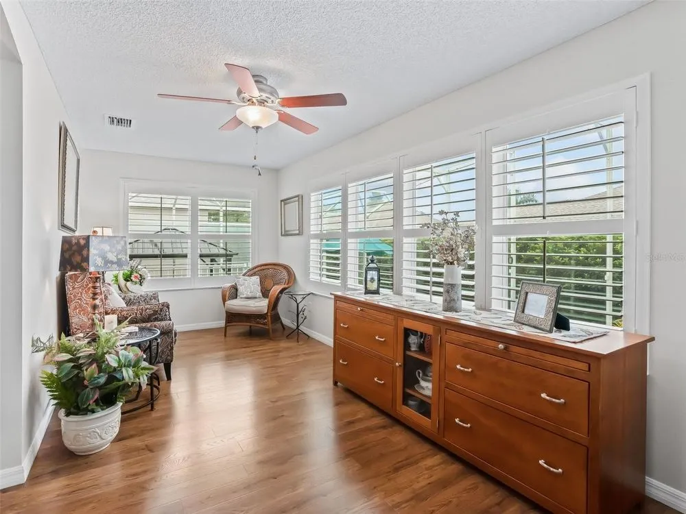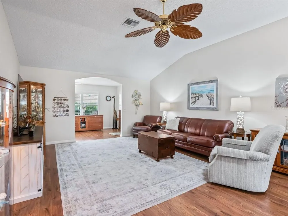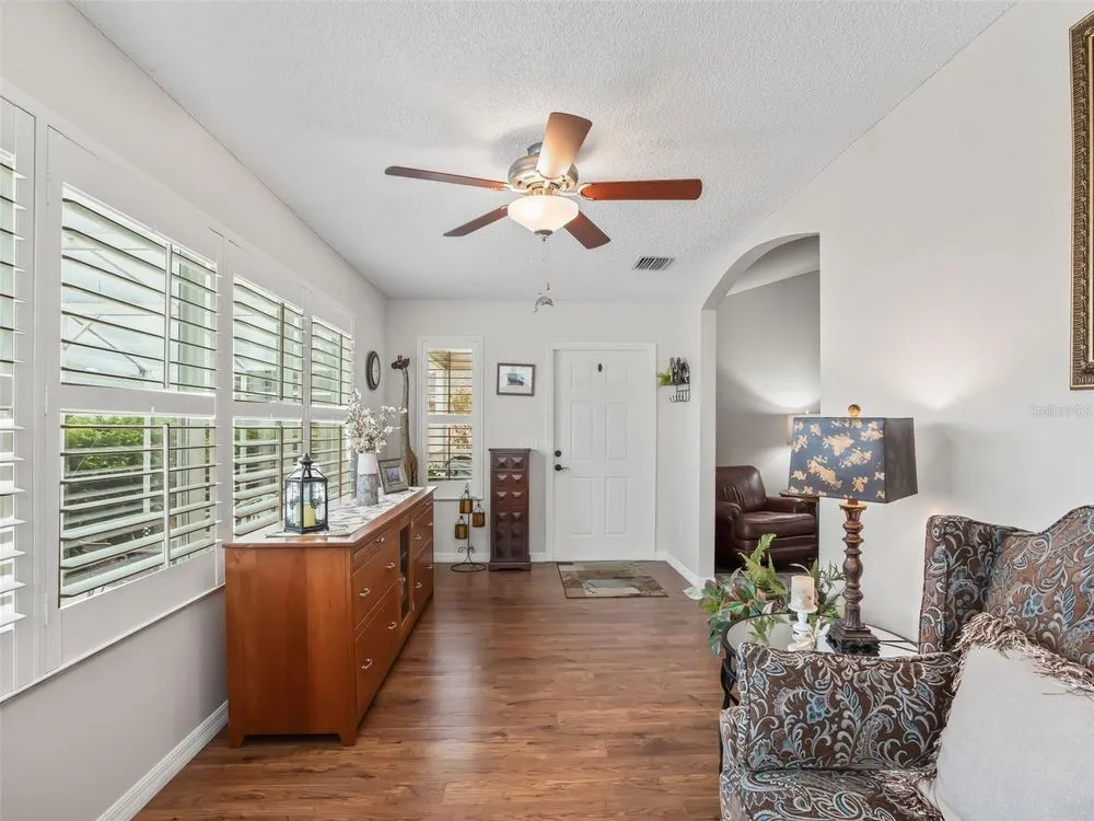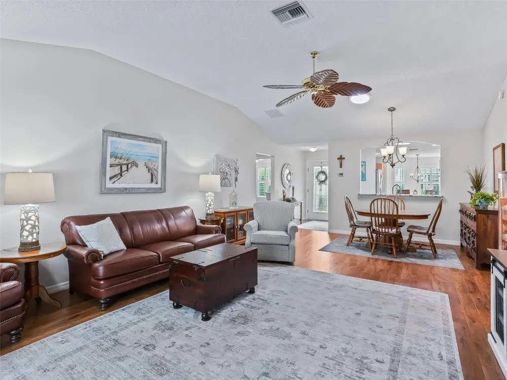 BOND PAID! This immaculate 3 Bedroom / 2 Bath WILLOW DESIGNER home with a 20’x9’ FLORIDA ROOM is ideally located in the highly sought-after Village of Springdale. Featuring major updates — ROOF (2019), HVAC (2020), WATER HEATER (2020), and new Whole House Water Filter/Softener (2025) — this home is truly move-in ready! Entering thru the Leaded Glass front door with Leaded sidelight you’ll find an inviting, open floor plan with abundant natural light and thoughtful upgrades throughout. The Kitchen boasts Granite Countertops, Stainless appliances including a NEW Gas Cooktop and Double Ovens (2025), Microwave (2020), French Door Refrigerator (2020), Dishwasher, oak cabinets with pull-outs, recessed lighting, closet pantry, Plantation Shutters in the Breakfast Nook, Solar Tube, and luxury vinyl plank flooring. The Dining Room also features a Solar Tube and flows seamlessly into the Living Room with laminate flooring. The spacious Primary Suite accommodates a king-size bed, sliding glass doors to the lanai, large walk-in closet, and a beautifully updated En-Suite Bath offering dual vanities with Granite Counters, updated walk-in shower, linen closet, and luxury vinyl plank flooring. Just off the primary bath, you’ll appreciate the Laundry Room with washer/dryer (2020), utility sink, upper shelving, LVP flooring and direct garage access. A true Split Floor Plan provides privacy for guests: two comfortable guest bedrooms and a guest bath featuring Granite Countertops, Tiled tub/shower combo, LVP flooring, and Solar Tube. Enjoy Florida living at its best in the glass-enclosed Florida Room or step out into the expansive 48’x16’ screened birdcage with new tinted screens (2022) — perfect for entertaining in privacy. The Garage is well-appointed with shelving, ceiling fan, pull-down attic stairs, Solar Tube, lightning arrestors with surge protection (2025), 200A electrical service, and direct access to the laundry room. This meticulously maintained home offers comfort, style, and peace of mind with extensive updates. Located just a short golf cart ride to the Springdale Pool, Dog Park, Mulberry Grove Regional Recreation Center, Nancy Lopez Country Club, First Responders Recreation Center, and Mulberry Grove Shopping Center with grocery, medical, VA clinic, dining, and more! Entertainment at Savannah Center and dining at Nancy Lopez Legacy and Glen View Country Clubs are just minutes away. Truly move-in ready — schedule your private showing today! Room Measurements and Square Footage are approximate and should be verified by buyer/buyer’s agent. All information is deemed reliable but not guaranteed.