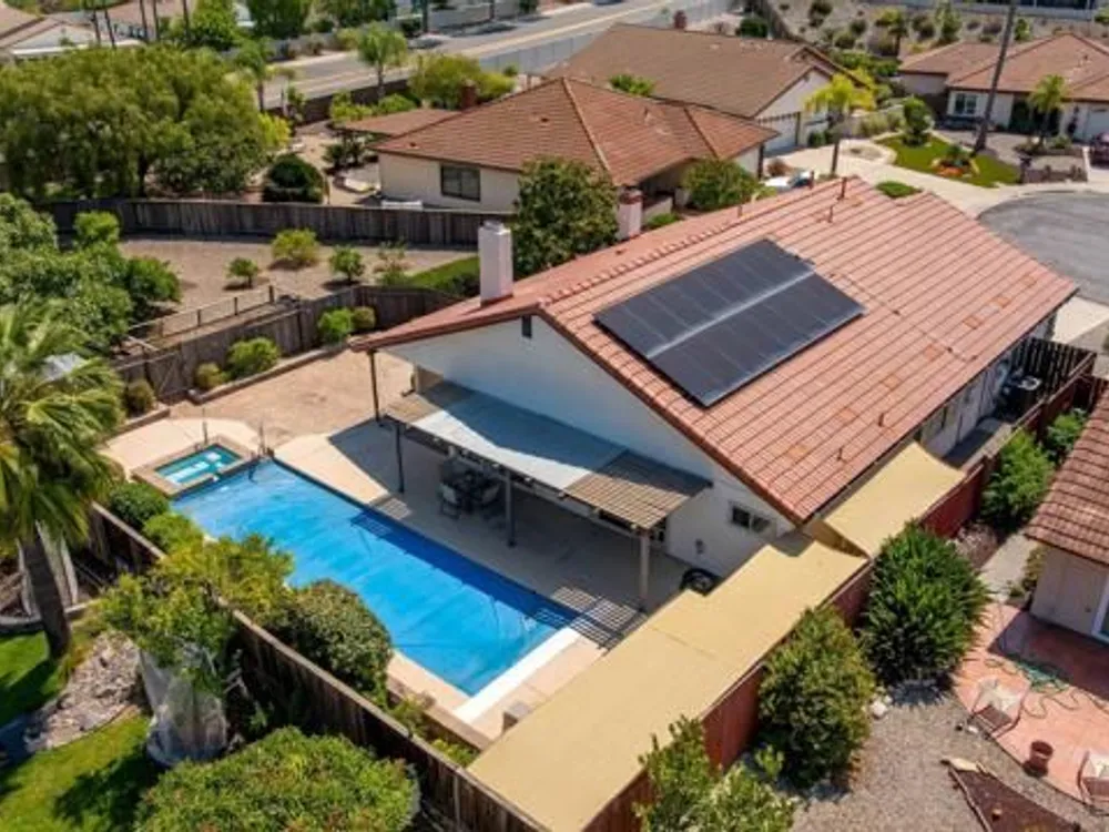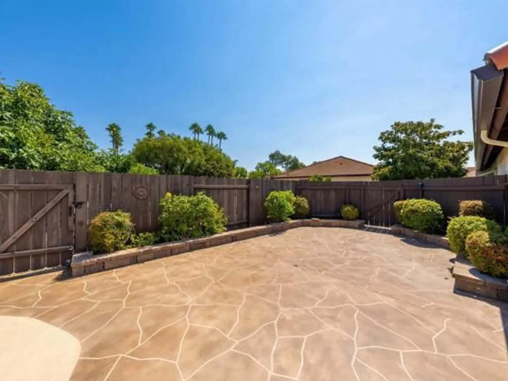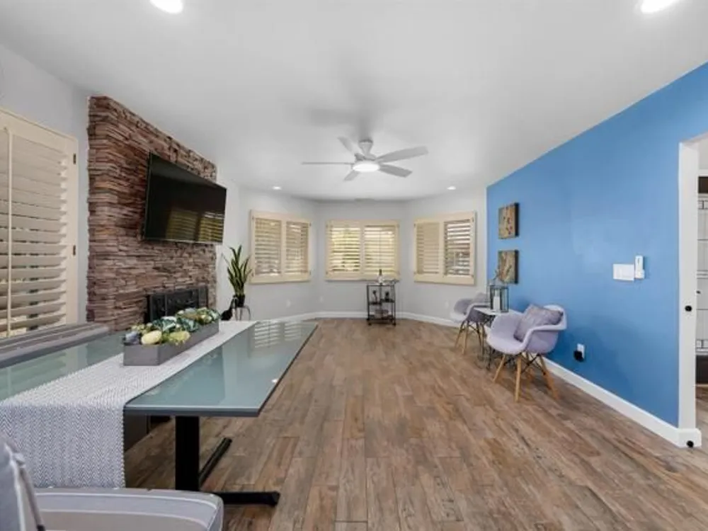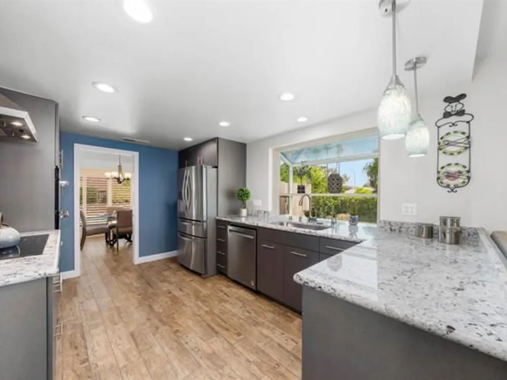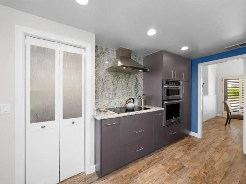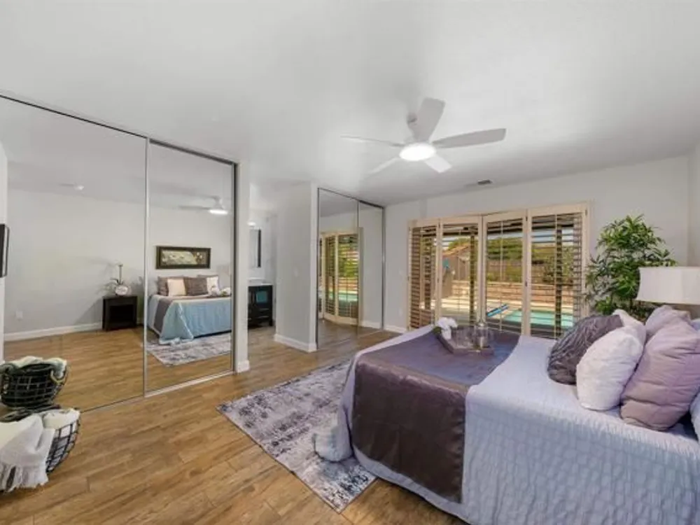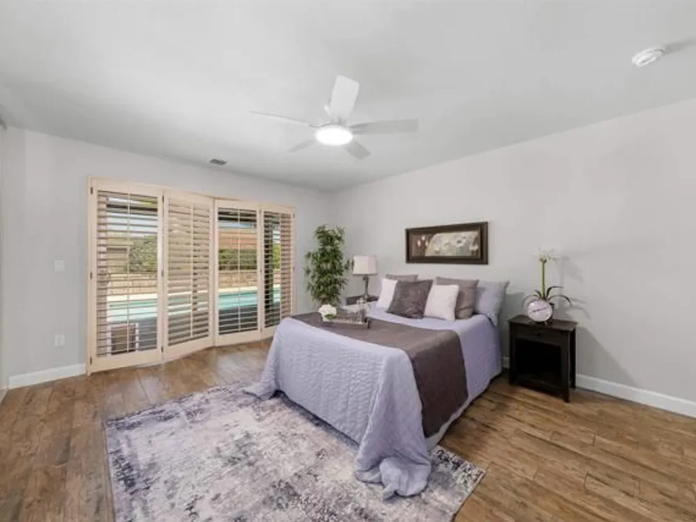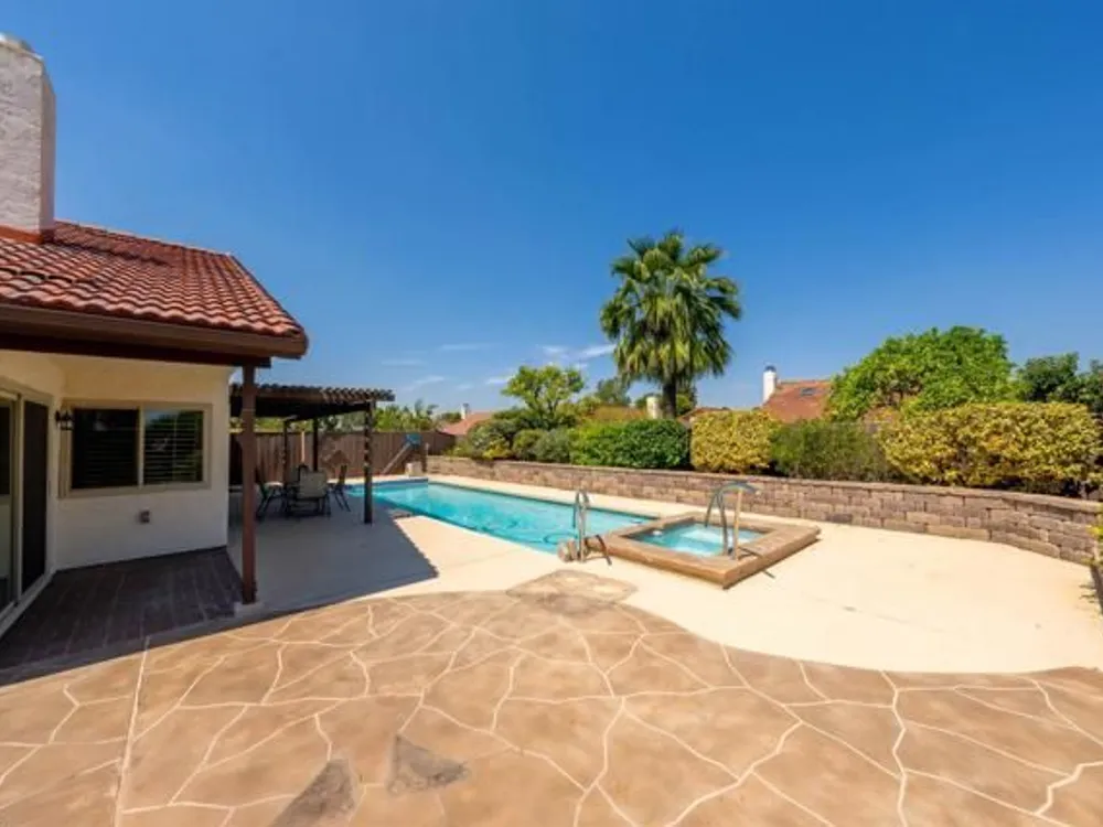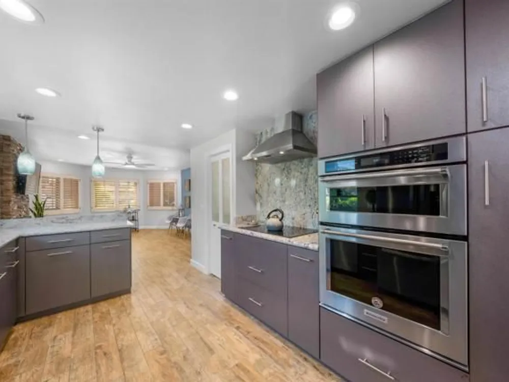 Remodeled & Move-In Ready! Step into luxury and comfort in this recently remodeled & upgraded 3-bedroom, 2-bath home designed for easy living and elegant entertaining. Every detail has been thoughtfully updated from the custom double glass entry doors generating a stunning first impression to the designer tile wood-look flooring to beautifully renewed baths creating a fresh, modern feel throughout. Inside, enjoy a spacious living room with fireplace, a separate and welcoming family room with another fireplace & a convenient wine frig both featuring high ceilings enhancing the open, airy atmosphere. A gourmet kitchen with new cabinets, spacious quartz countertops, all new double oven, smooth-top range, dishwasher & refrigerator all enhanced with a bay window & recessed lighting adjacent to the formal dining room with Plantation Shutters framing the back patio, pool & spa. The Primary Suite is a retreat of its own, offering double closets, mirrored doors & a spa-like bath with dual sinks & a separate water closet and ceiling fans throughout keep every room comfortable. The 2-car attached garage is finished with a gleaming floor, a work area and extra storage. Step out back through one of three sliding glass doors to your private backyard oasis: covered patio, lap pool with automated cover, spa, a sunny side patio - EVEN a separate fenced garden & orchard. Producing avocado, apple, lemon, orange & grapefruit trees plus a raised garden bed, perfect for homegrown delights. The lot is beautifully landscaped for low maintenance assuring you more time to enjoy all that is here. This is more than a home. It's a lifestyle placed on a cul-de-sac lot in a wonderfully welcoming 55+ community.