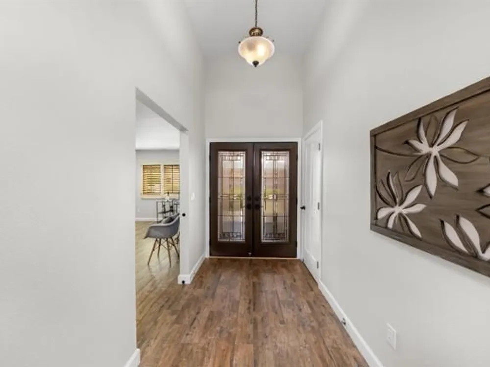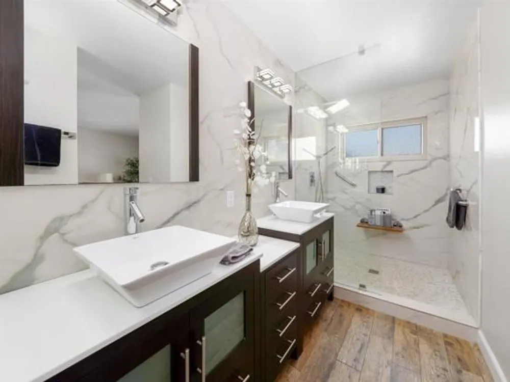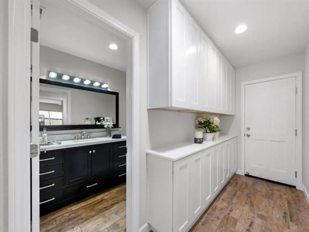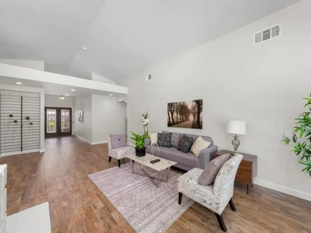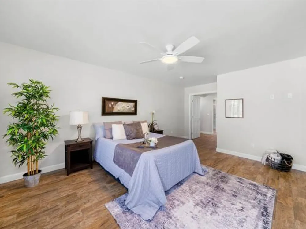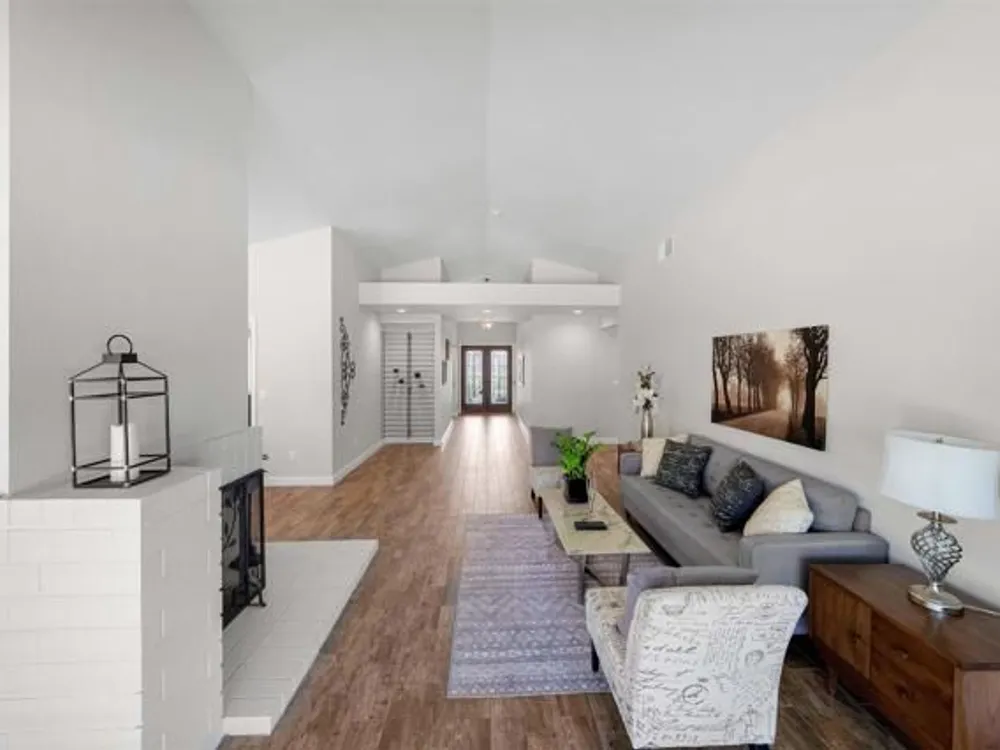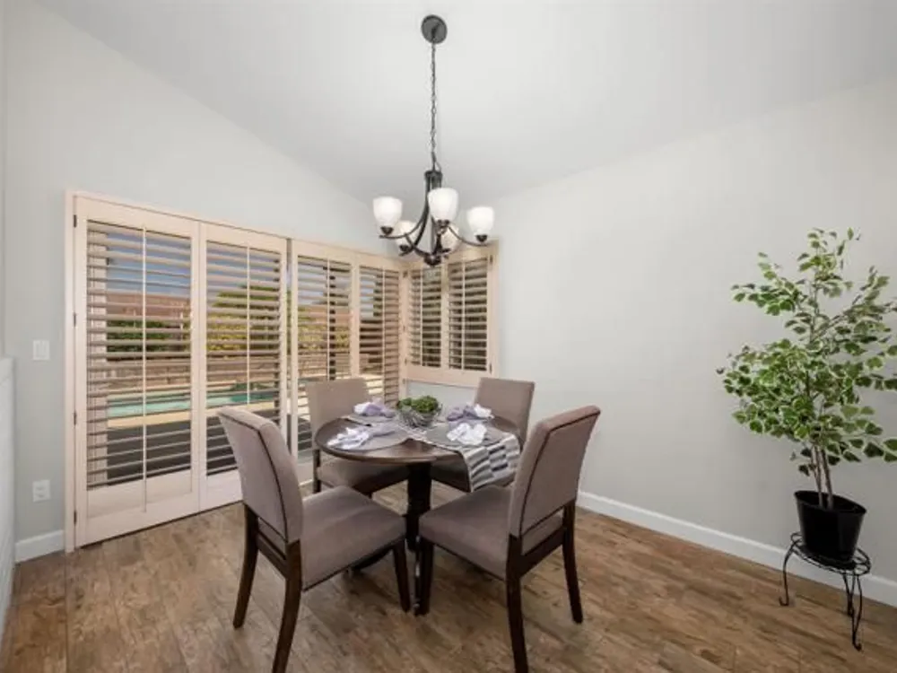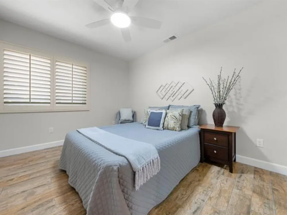 Remodeled & Move-In Ready! Step into luxury and comfort in this recently remodeled & upgraded 3-bedroom, 2-bath home designed for easy living and elegant entertaining. Every detail has been thoughtfully updated from the custom double glass entry doors generating a stunning first impression to the designer tile wood-look flooring to beautifully renewed baths creating a fresh, modern feel throughout. Inside, enjoy a spacious living room with fireplace, a separate and welcoming family room with another fireplace & a convenient wine frig both featuring high ceilings enhancing the open, airy atmosphere. A gourmet kitchen with new cabinets, spacious quartz countertops, all new double oven, smooth-top range, dishwasher & refrigerator all enhanced with a bay window & recessed lighting adjacent to the formal dining room with Plantation Shutters framing the back patio, pool & spa. The Primary Suite is a retreat of its own, offering double closets, mirrored doors & a spa-like bath with dual sinks & a separate water closet and ceiling fans throughout keep every room comfortable. The 2-car attached garage is finished with a gleaming floor, a work area and extra storage. Step out back through one of three sliding glass doors to your private backyard oasis: covered patio, lap pool with automated cover, spa, a sunny side patio - EVEN a separate fenced garden & orchard. Producing avocado, apple, lemon, orange & grapefruit trees plus a raised garden bed, perfect for homegrown delights. The lot is beautifully landscaped for low maintenance assuring you more time to enjoy all that is here. This is more than a home. It's a lifestyle placed on a cul-de-sac lot in a wonderfully welcoming 55+ community.