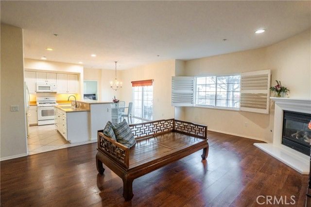 Welcome to Liberty at Founders Village, a friendly and vibrant 55+ community, with income restrictions, where easy living truly comes to life. This charming 2004-built townhome brings together comfort, style, and rare features, starting with its single-level layout, 1,328 sq ft of open living space, and an enclosed patio that’s uniquely special, found in only four units in the entire community. High ceilings and natural light set a bright, uplifting tone the moment the front door opens. Fresh paint, window shutters, wood laminate, and tile flooring add a clean, modern feel throughout. The living room centers around a cozy fireplace and blends seamlessly into the dining area and kitchen, creating a warm, inviting flow. The kitchen keeps things cheerful with white cabinetry, Corian countertops, plenty of space to prep and organize, a convenient serve-over bar, and a sunny breakfast nook that practically encourages slow mornings and hosts gatherings. The primary suite offers a calm, comfortable retreat with a large window, a generous walk-in closet, and a refreshed ensuite with dual sinks and a walk-in shower. The second bedroom and full bathroom work perfectly for guests, hobbies, or an office. A separate laundry room with built-in cabinetry adds a smooth layer of practicality to the home. Recently updated central heating and air keep things comfortable year-round, and the attached garage with tandem parking brings added convenience. Life in this community comes with some great perks: a sparkling pool, heated spa, clubhouse, outdoor BBQ area with a fireplace, and exterior maintenance handled for a carefree lifestyle. HOA dues are kept low at $308/month, and the neighborhood stays pet-friendly and welcoming with plenty of visitor parking. All of this comes in a prime Fountain Valley location: close to parks, the beach, shopping, dining, and convenient freeway access. The city of Fountain Valley will need to process the income qualification. A warm, light-filled home with standout features and an easygoing vibe. It is such a rare find in a community loved for its comfort and charm.