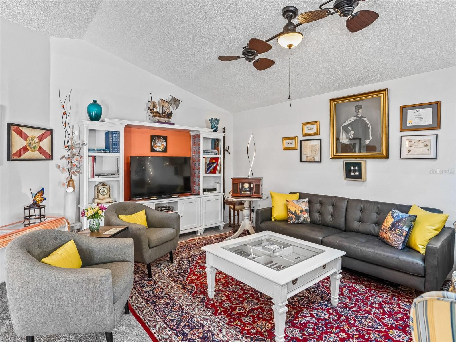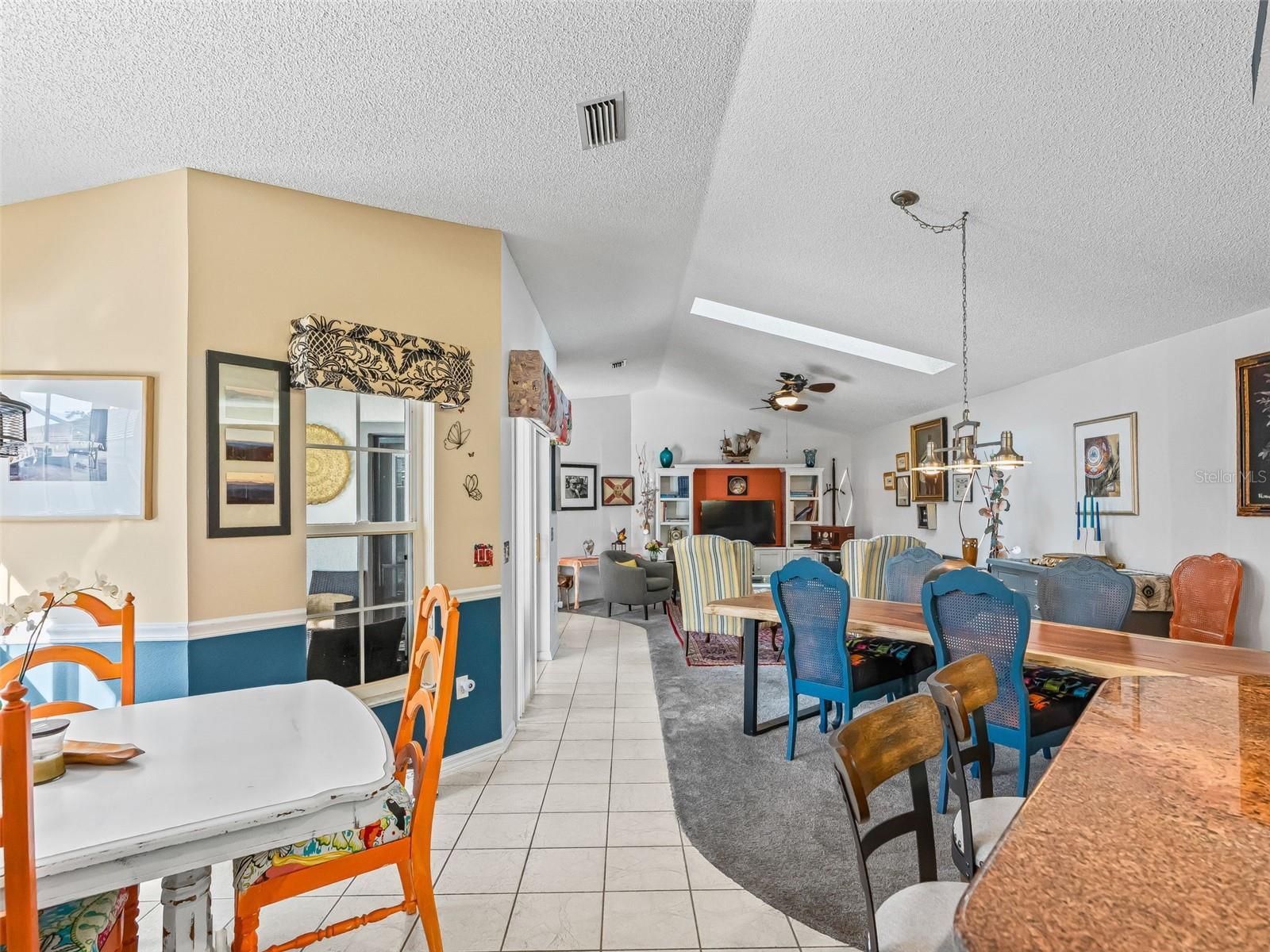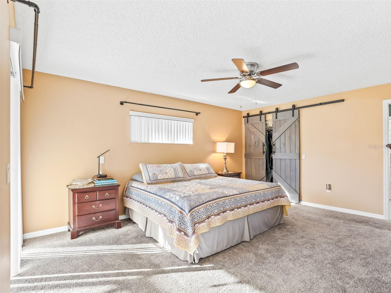 - Ceiling Fan(s), Chair Rail, Eat-in Kitchen, Living/Dining Room, Open Floorplan, Main Level Primary, Solid Surface Counters, Solid-Wood Cabinets, Stone Counters, Thermostat, Tray Ceiling(s), Vaulted Ceiling(s), Walk-In Closet(s)