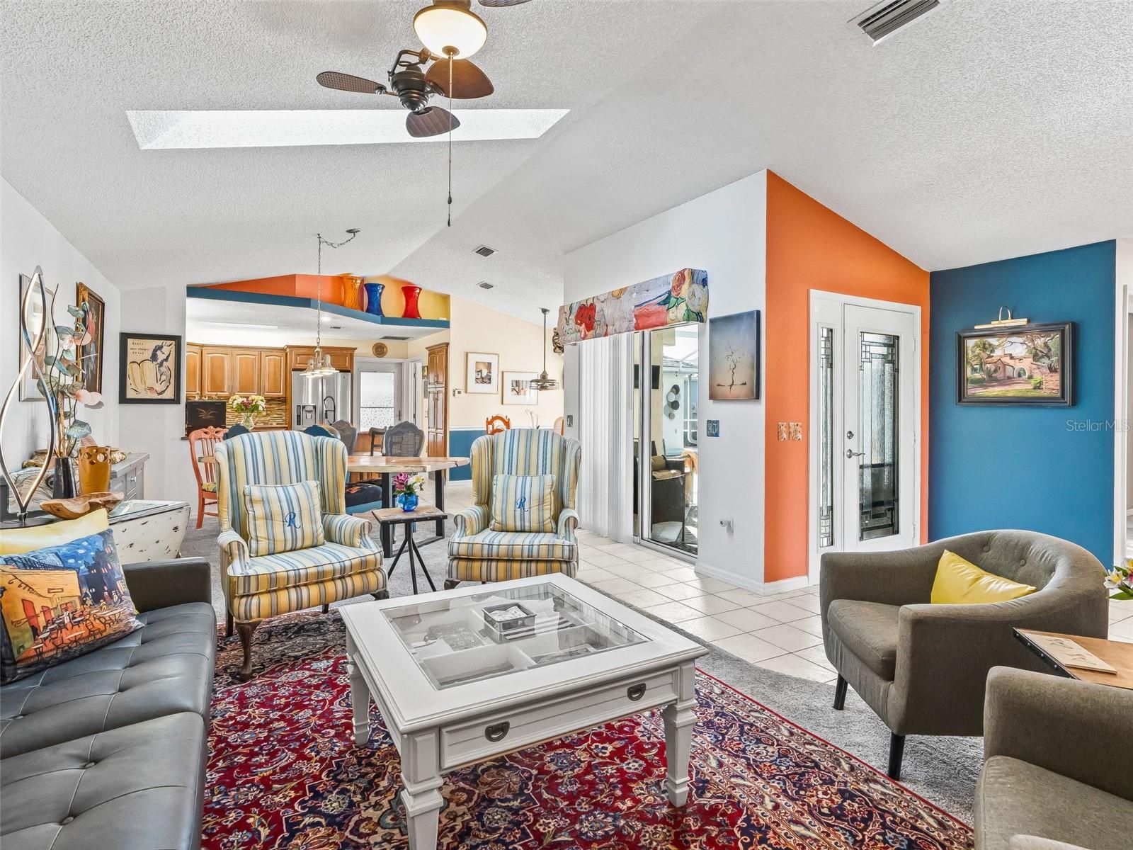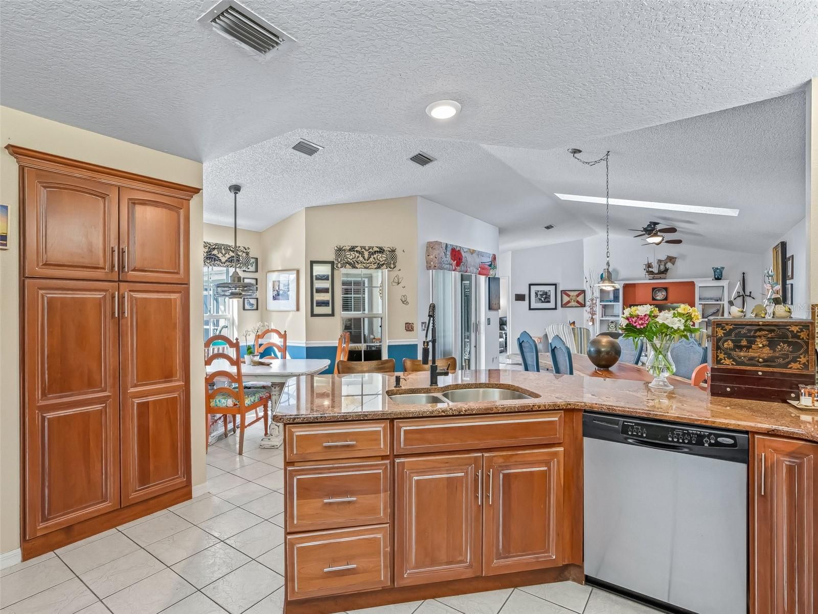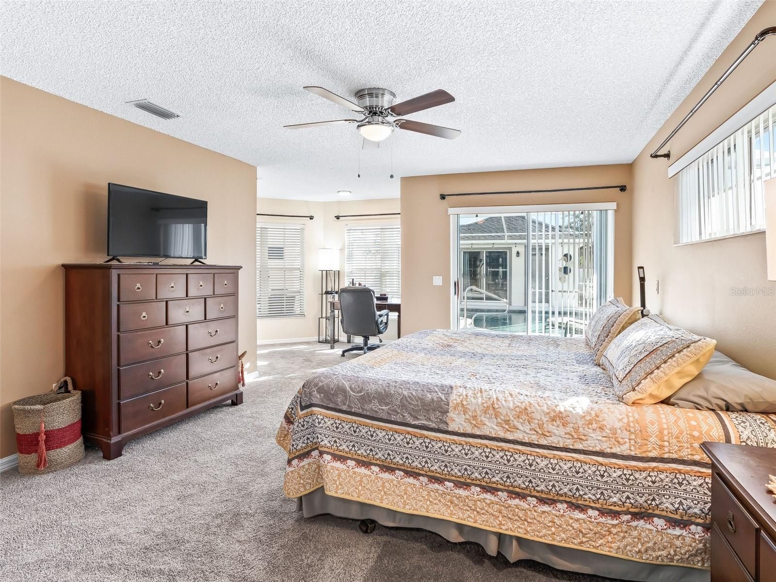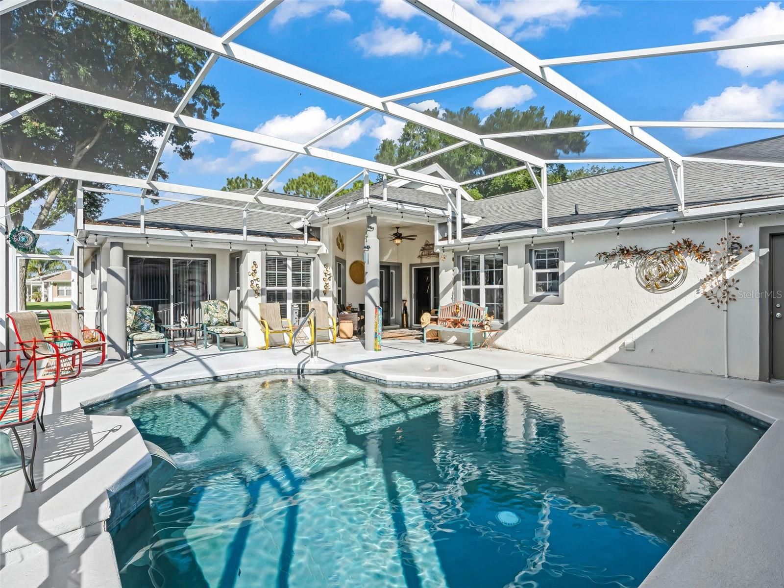 Stonecrest is a 55+ gated golf course community with all the amenities and 4 pools (one indoor),and just a Bridge Away By Golf Cart To The Villages! THIS IS YOUR LUCKY DAY! BACK ON THE MARKET! BUYER UNABLE TO PERFORM HOWEVER HOME INSPECTION AVAILABLE FOR YOU! Come See this Beautiful Pool Home! Stunning 3/3 Concrete, Block, and Stucco Mark V Casita Villa with a 2 Car Garage, Shark Bite Coated Driveway, ROOF 2022, HVAC 2022. This is an Impressive home with an Exceptional floor plan, features a Casita (Bedroom 3) which is Detached with a Private Entrance, Luxury Vinyl Plank flooring, a Bedroom (10x14) with a Walk in Closet (5x6), a Full Bathroom (5x8), and Private access to the Birdcage Enclosed Courtyard which features a Lagoon style Pool with Waterfall! Enjoy Your Own Private Oasis in your Birdcage Covered Courtyard which provides Tremendous Outdoor Living Space, showcasing the Heated Lagoon style Inground Pool with large Swim Out area, a Nice size Covered Lanai, and Multiple seating areas! The main house offers an Open Concept Floor Plan, Vaulted ceilings, Family Room, and a Bonus Room! The recently remodeled Kitchen (2021) showcases a Designer Light Fixture, Granite Countertops, Glass Tiled backsplash, Wood Cabinets, a nice size Breakfast bar, Pantry closet with pullouts, Stainless Appliances, a Skylight and an Eat in Area! You will Love This Open Concept Floor Plan with a Huge Spacious, Light and Bright Living area flows seamlessly to the Dining area with Vaulted ceilings, and Sliding door access to the Courtyard, just perfect for Entertaining Friends and Family or Relaxing in the comfort of your Tropical Paradise! The Recently renovated Luxurious Primary Suite showcases Private access to the Courtyard, a Sitting area, Huge Walk in Closet and an En Suite bathroom. The En Suite bathroom boasts a nice size 2 Sink Vanity, and a Tiled Walk in Shower. Bedroom 2 (no closet) can be used as an office or Family room, and provides direct access to the Bonus room. This Mark V Floor Plan offers maximum Privacy for both the Owners and their Guests, with the Primary suite situated in the main home while the Casita (3 bedroom) and guest bathroom 3 are located on the opposite side of the Courtyard, providing plenty of space, and convenience for your guests. This home offers Plenty of Privacy for both the Owners and their Guests! Relax, and Enjoy Your Own Private Oasis with a Tremendous Outdoor Living Space, featuring Heated Pool (New Pool Heater), Pool deck, Birdcage, Covered Lanai, and a Private courtyard! (This is a Villa, HOA Fee $283.00 per month. HOA Fee Includes: Mowing, Trimming and Lawn Fertilization). Stonecrest is a 55+ gated golf course community with all the amenities, pools, pickleball courts, softball, 18 hole championship golf course, Broad Stripes Golf & Social Club and over 80 different clubs to join! Stonecrest is just a bridge away by golf cart to the Villages. It is a community with Private Roads and 24 Hour Security! As a private gated golf course community, you can expect a high level of privacy and security. Overall, this home offers a combination of Tremendous Outdoor Space, luxurious features, a desirable location, and a secure community setting. A WONDERFUL LIFESTYLE AWAITS YOU IN STONECREST!