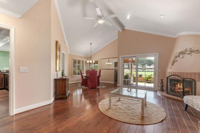 ACCEPTING BACK UP OFFERS! Back up offers are currently being accepted and you are encouraged to go see this lovely nome and then bring your offer! WOW! Come and Get It!! Spectacular, Golf Course, Chapala Home!!! Want to live in a beautiful, gated 55+ community in Rancho Bernardo? This Oaks North Golf Course beauty will sweep you off of your feet! Stunning golf course views!! Come see this lovely home that is perched on the 4th hole of the Oaks North South Golf Course, and then bring your offers!! Nestled on a quiet street in the lovely, gated community of Chapala, the only gated community in Oaks North, this home offers the very finest of indoor-outdoor living. From the moment you arrive at this amazing home, you will be impressed with its lovely touches inside and out. Arrive to beautiful pavers in the driveway that wrap around the walkways to the side and rear entries. Enter to beautiful, hardwood floors and vaulted ceilings. Saunter outside through the sliding glass doors and enjoy incredible, picturesque, waterfront golf course views, which you can enjoy from your inviting covered patio. Some of the finer features of this lovely home include granite countertops in the kitchen, stainless steel appliances, newer cabinetry, a stylish stain glass window at the entry, an inviting living room with cozy fireplace, a formal dining room, ceiling fans, and plantation shutters. Additional features include a newer roof, a newer HVAC system, a smart thermostat, a beauifully remodeled hall bathroom, a newer tankless water heater, newer style white vinyl windows + sliding glass doors, an upgraded electrical system, a spacious, epoxy finished 2-car garage, an owned water softener system which conveys, a built-in Murphy bed, crown moulding, recessed lighting, steel patio uprights, a lovely garden, a front patio accessible through the primary bedroom, and a peaceful breakfast area. All appliances convey including the refrigerator + washer/dryer. Enjoy the hummingbirds as they greet you each morning while you enjoy breakfast on the green! Oh, and access the fabulous Oaks North Community Center to enjoy swimming, pickleball, tennis, lawn bowling, a workout gym, well kept locker rooms, a social gathering hall + so much more! And if you like golf, you have access to (3) nearby award winning 9-hole Oaks North golf courses, as well as the nearby Rancho Bernardo Inn 18-Hole Golf Course...just a short golf cart ride close. Quick move-in possible if needed! Welcome Home to Chapala in Oaks North!