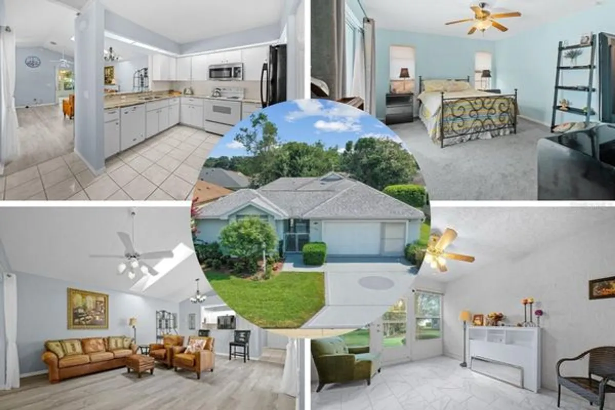 The seller is generously offering a $2,000 credit toward the buyer’s closing costs with an acceptable offer and the listing agent is also offering a 1-year home warranty at closing for added peace of mind! Imagine the many possible uses of a detached third bedroom suite with its own private lanai, a feature that is not available in any other home in Stonecrest. This unique area can be a hobby room, den, home office, rental unit, or guest quarters while being separate from the rest of the house. It has a bath with tub and shower, walk-in closet, wall mounted WiFi streaming TV and sliders to the lanai. A privacy gate allows it to be open to the larger lanai or closed off from it. Location is another major asset, the home is one block from the golf cart gate to Walmart, Aldi, Bealls, Lowes, BJ's, Cracker Barrel, banks, medical offices and a wide variety of other restaurants and commercial establishments accessible within 5-10 minutes by golf cart. It is also a short distance from the 18-hole golf course and social club, community center complex, 4 community pools (including an ADA accessible heated indoor salt water pool) hot tub and sports venues.The great room has an open floor plan with luxury vinyl plank flooring, a skylight, and sliders to both the lanai and a room that functions well as a den, TV room, or library. In the kitchen, there are granite countertops, high end cabinet pulls, double sink, pantry, butler pass through/ breakfast bar and tile flooring with a family dining nook. A door to the garage provides convenience for unloading groceries. The guest bedroom fits two beds comfortably, has a wall mounted streaming TV and an adjacent bath with tub and shower. Primary suite has sliders to the lanai, walk in closet, bathroom with skylight. The climate controlled laundry room is strategically located in the garage so wet towels and bathing suits do not have to be carried through the house. The spacious lanai/courtyard, with a roof over the area by the great room sliders, lends itself especially well to entertaining. Large or small groups can be accommodated with or without including your living space. It is also the perfect spot for container gardening, flowers and small fruit trees. The flexible custom design allows the option of inclusion or complete privacy from the third bedroom suite. This home also offers a 1-car garage with dedicated golf cart space and a freshly painted floor. The home is equipped with Netgear WiFi router/modem already installed and connected to the streaming TVs.There are also front yard and back yard Blink security cameras and ADT security system. Stonecrest is a 55+ active adult gated community in Summerfield, FL adjacent to The Villages. Amenities include the indoor pool mentioned above plus 3 outdoor pools, hot tub, fitness center, community center complex with a stage and lighting for theatrical productions, a technology room, card room, tennis, pickleball and bocce courts, corn toss, 18 hole golf course, social club, restaurant, softball field, two dog parks, concession stand and more than 100 clubs and activity groups. Check out this beautiful home and plan to join us in a lifestyle of as much activity or leisure as fits your dreams!