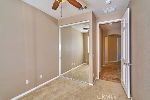 This charming Princess home sits on a very private lot with no homes behind and a small park right next door. Enjoy the beautiful covered back patio that feels like an outdoor living room — great for morning coffee or relaxing evenings. Inside, you’ll love the mountain views from the living room, which has wood laminate floors, and a custom corner fireplace. The dining area has tile flooring, and the den/office features new carpet. All appliances are included. Two car garage with plenty of storage space. A wonderful place to call home! The Solera 55+ community has a pool, spa, clubhouse, indoor gym, indoor walking track, tennis courts, billiards, meeting and banquet rooms, bocce ball, mailroom, library, classes, clubs, group trips and excellent 24-hour security. Basic Spectrum cable and internet are included with your HOA. Solera is close to Palm Springs, Redlands, the scenic mountain town of Oak Glen, Cabazon Outlet Malls, Morongo Casino and the best golf courses around. Solera is also preferred to the other Beaumont 55+ communities because of close, easier freeway access. Beaumont has a small town feel but with access to all there is to see and do in beautiful Southern California.