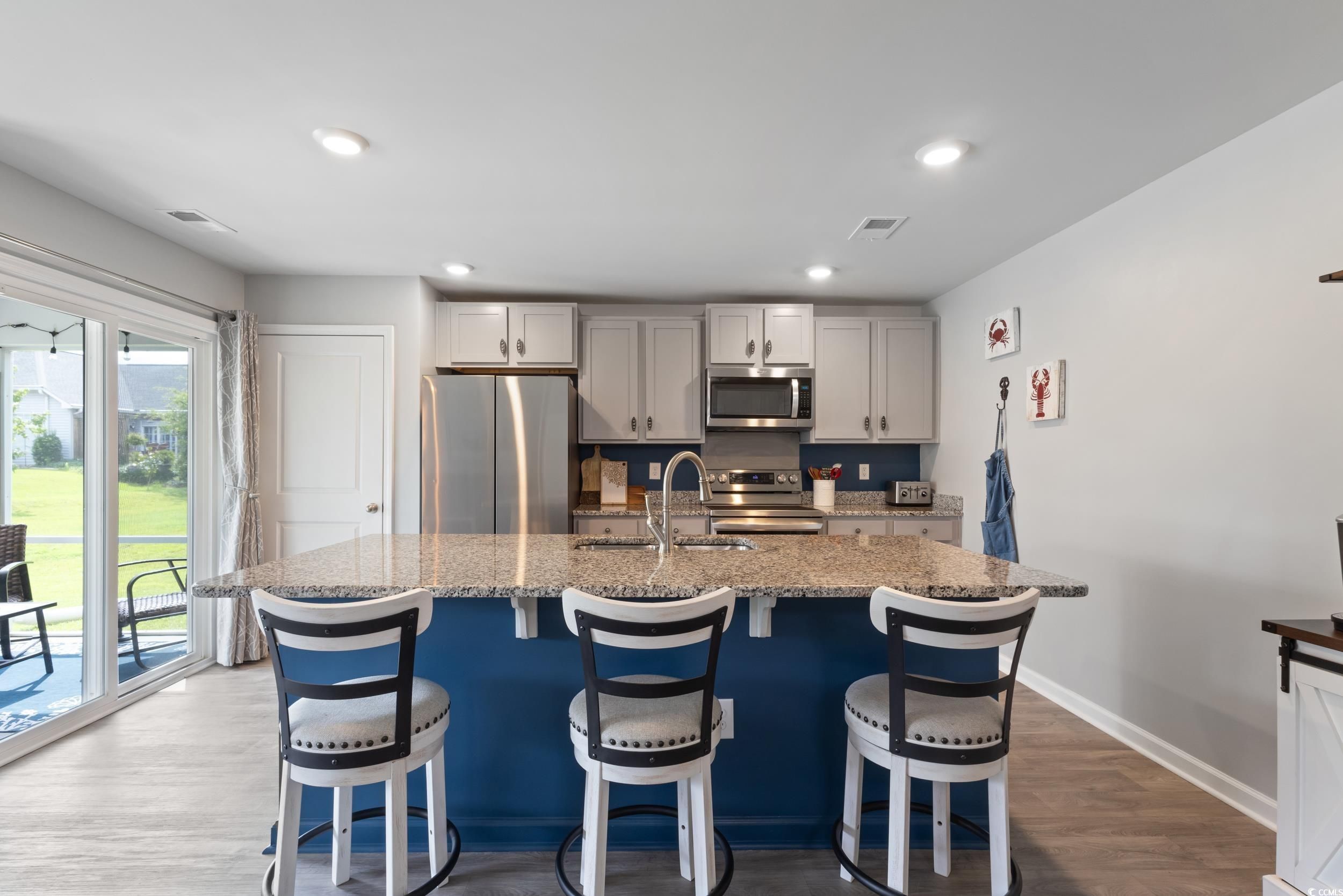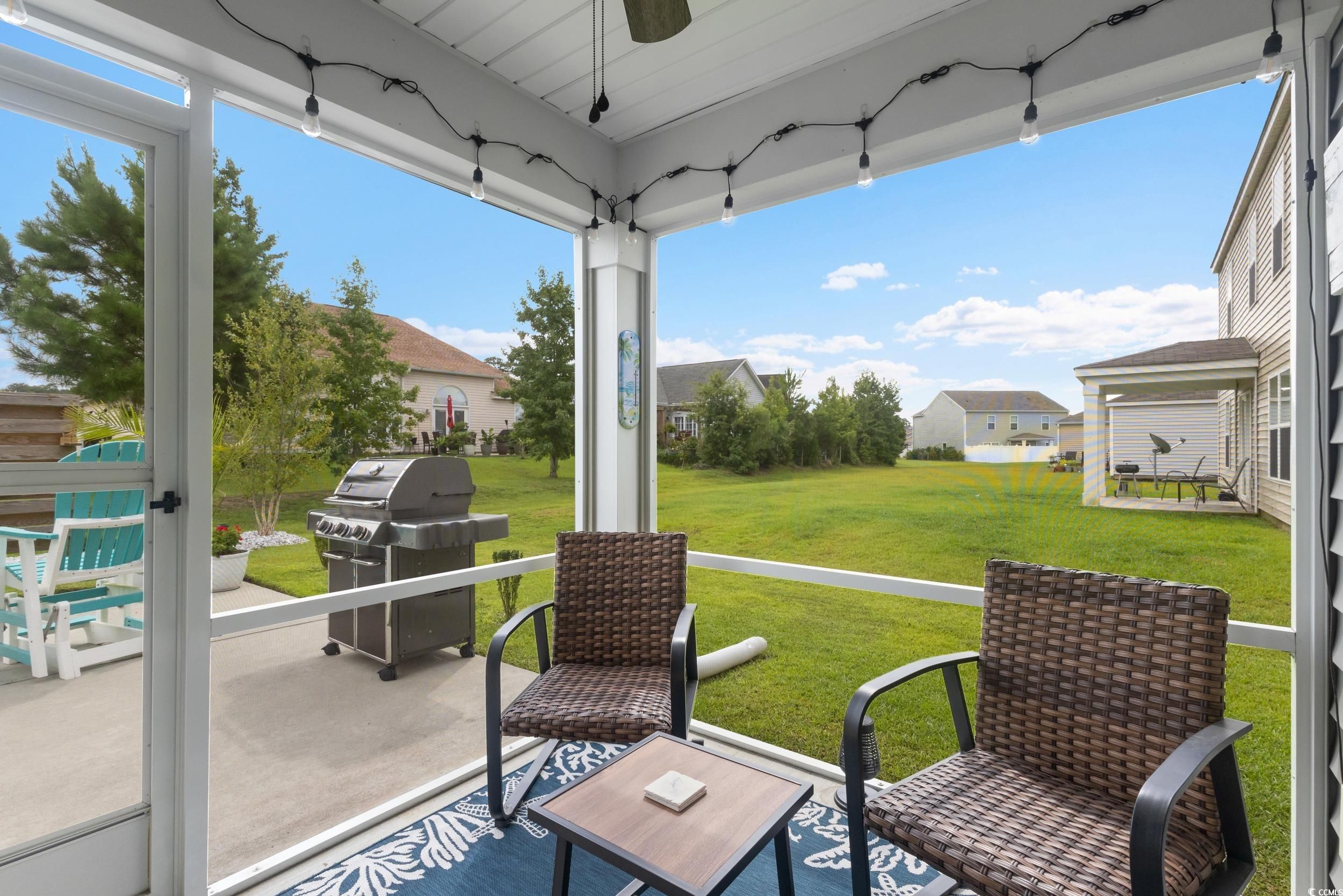 Welcome to this beautifully upgraded, partially furnished three-bedroom, two-bath single-family home featuring the highly sought-after Kerry floor plan, tucked inside the mature and well-established Oak Estates East neighborhood within the Island Green community. From the moment you arrive, it’s clear this home has been thoughtfully upgraded—modern light fixtures and ceiling fans, plantation shutters, premium stainless steel appliances, fresh interior paint, and meticulously improved landscaping create a polished, move-in-ready feel that’s hard to find. Inside, the open and functional layout flows seamlessly, making everyday living and entertaining effortless. Step out to the screened-in porch, your new favorite spot for morning coffee or winding down in the evening, all while overlooking a oversized, extended patio and fully landscaped yard. The kitchen is designed to bring people together, offering a bonus pantry, a granite-topped island with seating, and premium LG ThinQ double-oven electric range with ProBake Convection, EasyClean, and Air Fry settings. The Samsung refrigerator, washer, and dryer all convey and can be conveniently managed through their smart app—one less thing to worry about. The home includes 6.5 years remaining of a transferrable home warranty through RWC and Carrier for the HVAC system. Homes in Oak Estates East are known for their peaceful, nature-filled setting, where residents enjoy sightings of deer, foxes, Limpkins, and even the occasional alligator—along with overnight security for added peace of mind. Add in proximity to top-rated schools, a wide array of shopping and dining options, state parks, golf courses, entertainment, and the beach, this location truly delivers. Recent enhancements to the Island Green community for daily convenience include the newly completed Sunnehanna Dr entrance road, with sidewalks, and a roundabout featuring a water fountain coming later this year. Well-cared-for homes in this community move quickly. If you’ve been waiting for the right blend of comfort, convenience, and natural beauty, this is your moment.