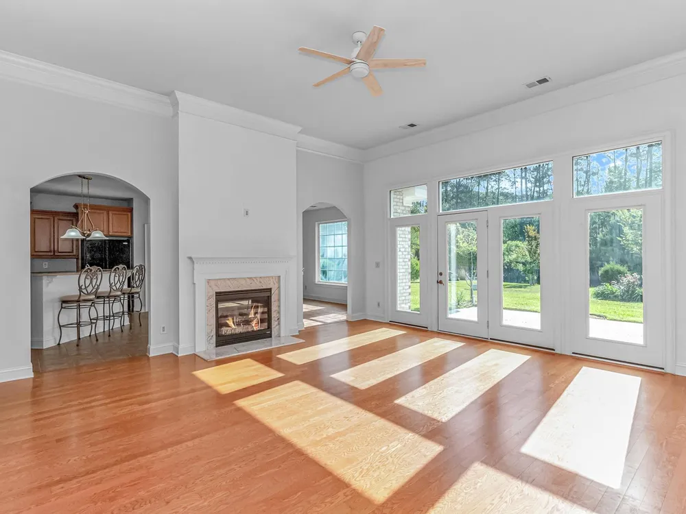 Welcome to this beautiful home that offers the perfect blend of comfort, space, and serene views. Step into a large, inviting foyer that sets the tone for the rest of the home—bright, open, and thoughtfully designed.The spacious living area is filled with natural light, featuring soaring ceilings and a cozy double-sided fireplace that connects seamlessly to the kitchen. Adjacent to the kitchen is a flexible space that can serve as a formal dining room or a home office. Down the hallway, you'll find a spacious primary suite with a luxurious bathroom complete with double sinks, a soaking tub, an oversized walk-in shower, and a walk-in closet. Connected to the suite, a private screened-in porch offers the perfect place to enjoy peaceful mornings or unwind in the evening. Two additional bedrooms share a full bath conveniently located along the hallway. Beyond the laundry area, a staircase leads to a versatile bonus room—ideal for a guest retreat, playroom, or hobby space. Step outside to enjoy a dedicated grilling patio just off the dining area, a lush private yard extending from the living room, and tranquil water views that provide a picturesque backdrop for entertaining or everyday relaxation. Don’t miss your chance to make this exceptional home yours!