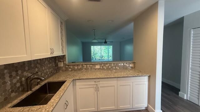 This updated villa on Lake Susan has added glass enclosed porch overlooking the wooded area with lush gardens. The opened up kitchen gives full access to the dining area great for guests and parties. The master walk in closet has plenty of shelves and the doors on all the closets have been updated. There is a washer/dryer hook up on the back porch for the buyers connivence. The satellite pool is just walking distance away.