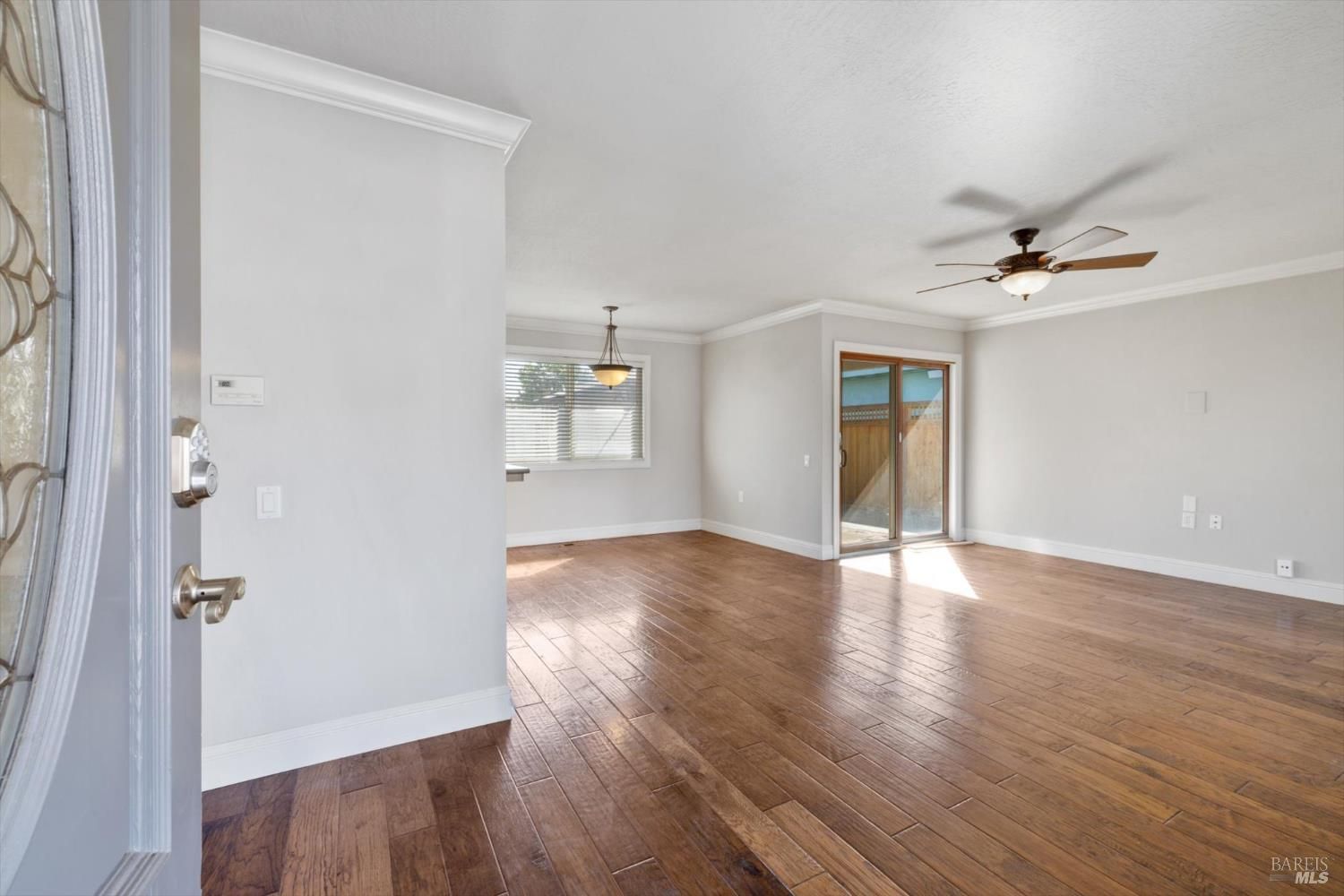 Welcome to this charming home where comfort meets modern living! Step into a cozy living room that invites you to relax and unwind. Just around the corner, you'll find a sleek, modern kitchen with room for a dining area, perfect for casual meals or entertaining. Beautiful hand scraped hickory hardwood floors flow throughout the main living areas, adding warmth and character. The backyard offers a patio ideal for dining al fresco, with plenty of additional space for a garden, play area, or your outdoor vision to come to life.