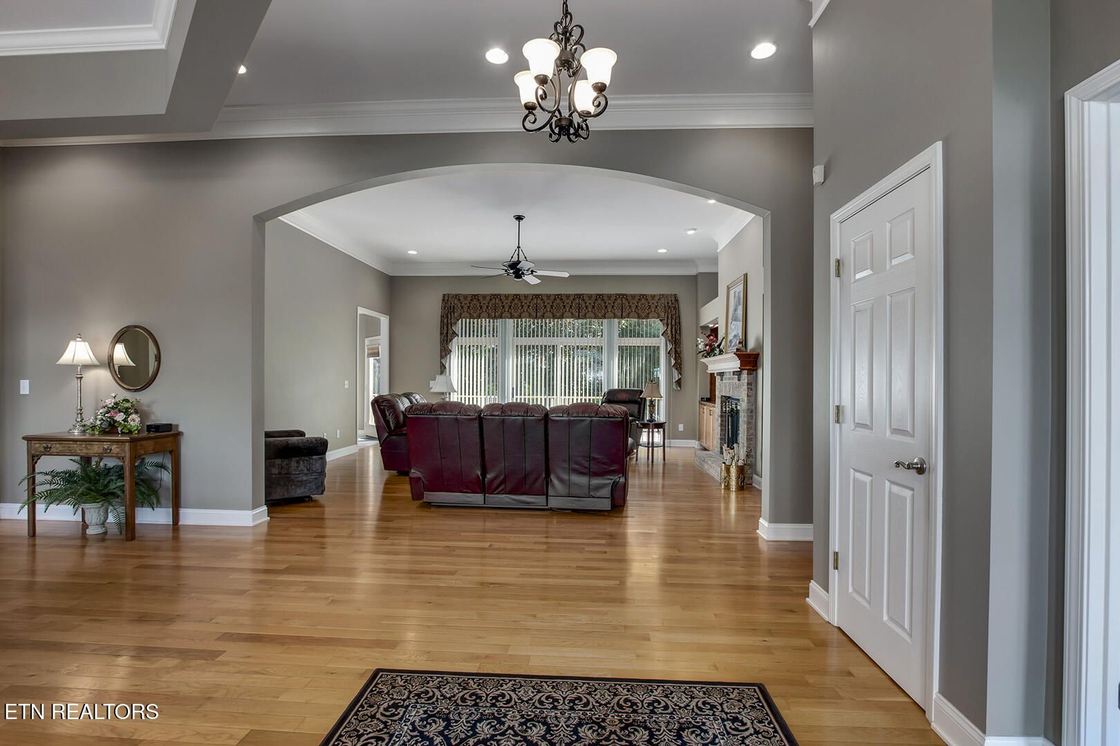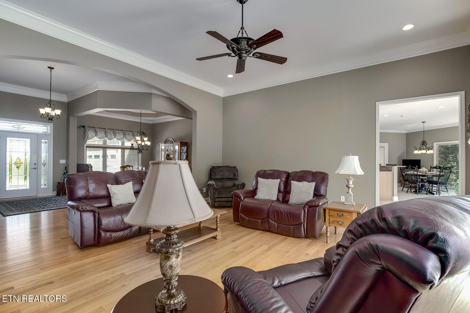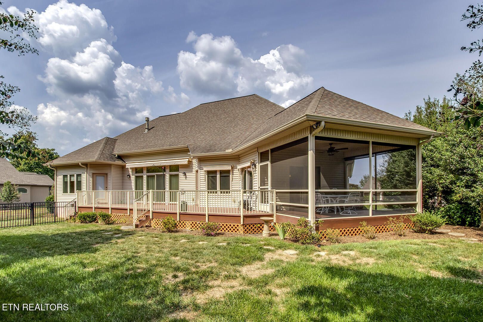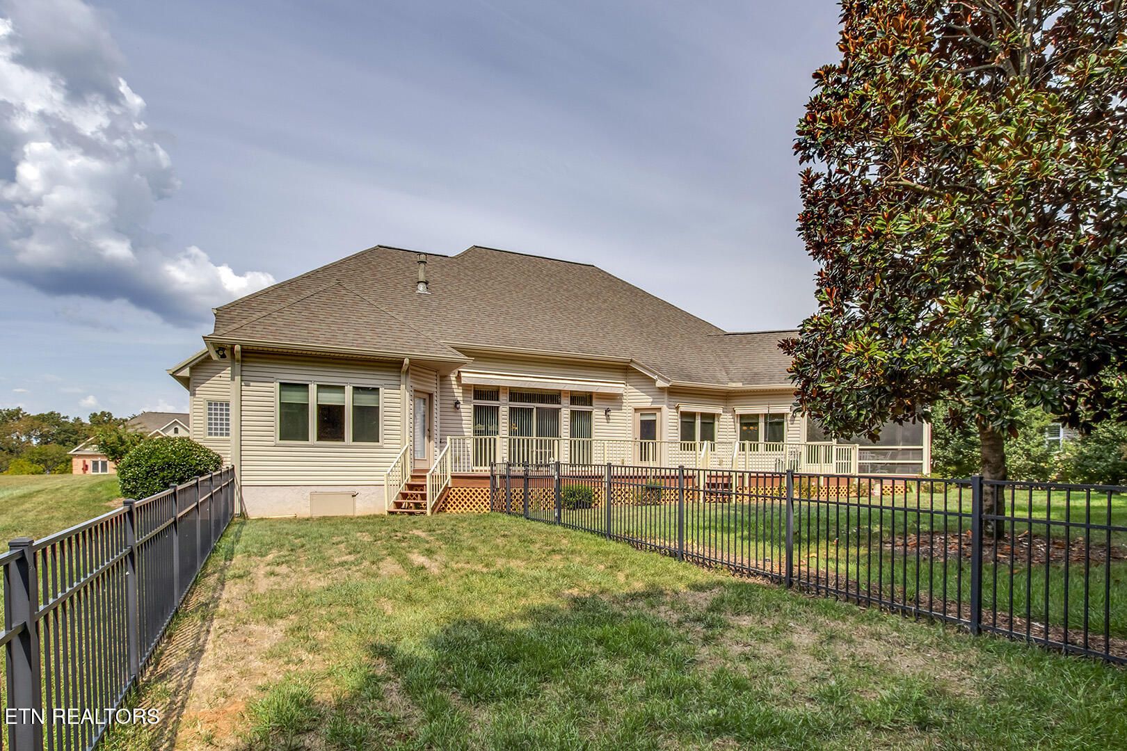This spacious, well kept home is located on the north end of TV in a great neighborhood. You have a 3 BR home with 3.5 baths, split bedroom layout for guest privacy, plus an office on the main level. You have a very open and spacious kitchen with plenty of counter space for preparing meals. The home offers a private setting with no homes behind you and a small common area on the right side. The lot is level with a partially fenced back yard for pets if you have any, and an irrigation system to keep the professionally landscaped yard looking nice. Upstairs, you have a versatile bonus room with a full bath, perfect for a craft room , exercise room, man cave or whatever suits your needs. The HVAC system was replaced in 2022, a new Garage Door Opener in 2024, A new Irrigation System in 2024 and new 6'' Gutters in 2025. You can enjoy all of the amenities Tellico Village has to offer. Don't wait—this exceptional home won't last long! Buyers to verify the square footage.