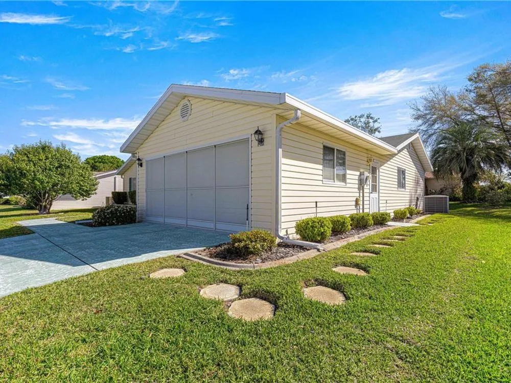 This well maintained, one owner home is ready to move into. Located in a community with just a golf cart ride from most all life style needs and just minutes from the Villages. This community comes with almost all the recreation you can get at the Villages, without the crowds. A little over 1600 homes, golf course, pool and recreation plus more. This home is a light and bright home, cozy and roomy. The open kitchen and generously large living dining room areas are great for entertaining. This model, a Holly, has split bedroom design, inside office, and windowed lanai for a more relaxing, light and bright sitting area for breakfast coffee or evening relaxation. Irrigated yard, landscaped and waiting for your addition of plants. Home is located just blocks from the recreational center which includes a fitness center, large olympic size pool, pickleball and all the indoor and outdoor activities desirable in any retirement community. This is one of the best kept secrets in the area and a golf cart ride to the Villages shopping and much more. Check this great property out. Well maintained home Holly Model, skylight, volume ceilings and enclosed lanai. Price lowered to sell.