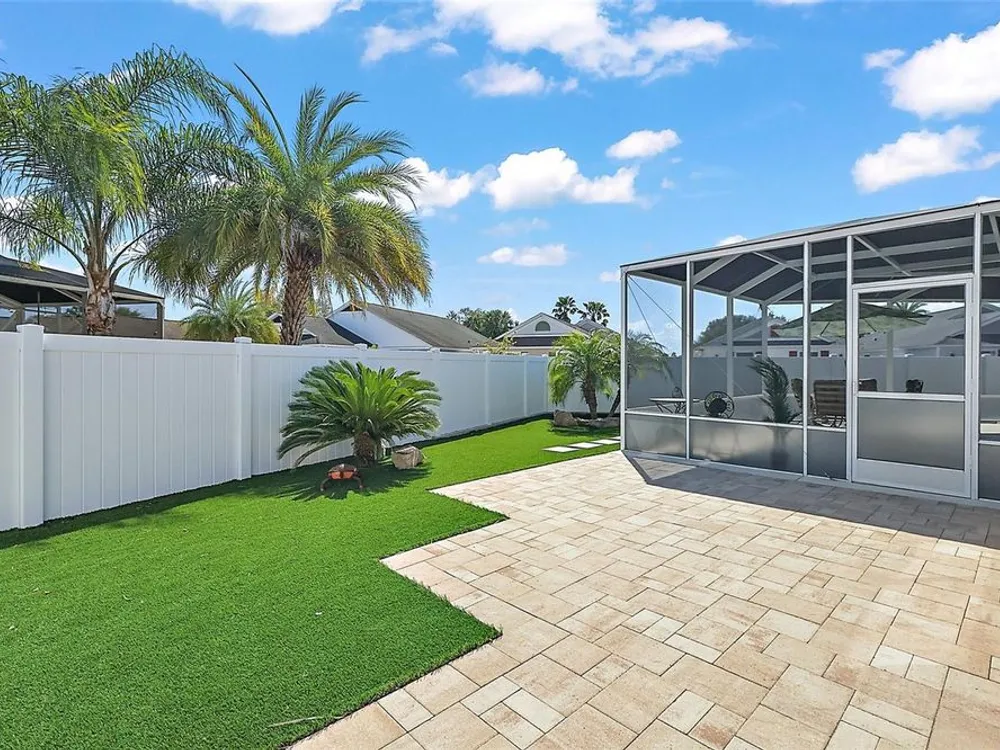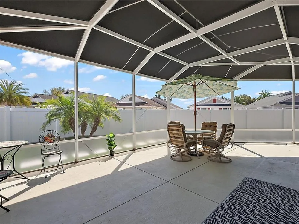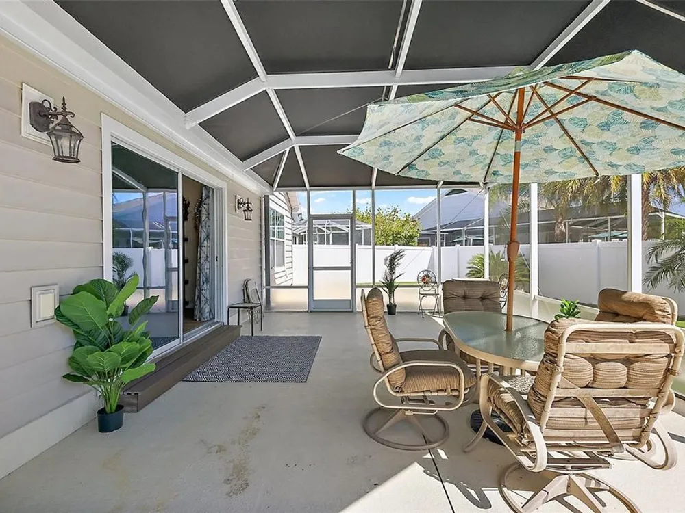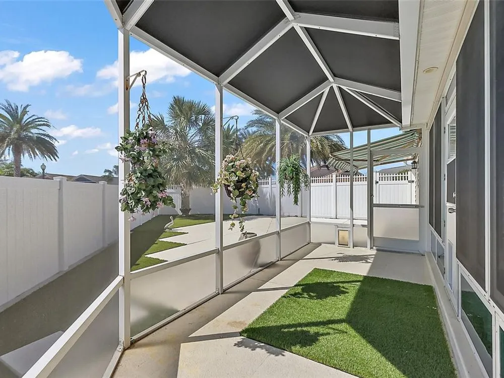 Finance contingency puts this house back on the Market! Price improvement, motivative Seller..... come have a look!!! This 3/2 courtyard villa on a corner lot in Pennecamp, is everything you've been waiting for. This home has been updated with virtually nothing left to do! In the kitchen, new appliances, new refaced cabinets (2024) and Corian counter tops (including the bathroom vanities and counter tops). New tile back splash and LED lighting, both above and below the cabinets. The bathrooms both have updated fixtures and the primary bath has a new shower door, and updated closet system in the primary closet. The living area has been repainted after a set of sliders were removed and walled in (2024), and a window replaced with a new slider to the beautiful birdcage. The birdcage has been fitted with a "Sunbrella" (end of 2023) and new super gutters and adjustments made to connect the 2 birdcages into one, then fitted a Sunbrella over the remaining area in 2024. A retractable awning has been added (2023) to the newly installed slider in the dining area. A new Lanai door complete with doggie door was also installed in 2024. A new garage door has been installed (2024) along with a remote keypad. New aluminum pull down stairs were installed to access the attic space (2024) along with new subfloor over the garage for extra storage. A new water softener system (owned NOT leased) and a new water heater in 2022. The A/C was replaced by the prior owner when this seller purchased the home in July 2022 and has been serviced every 6 months since. All the grass has been replaced with artificial turf in the rear of the home for easy maintenance and lower water bills! Several large palms have been replaced with smaller roebelenii's and palms. Easy access to the front with a gate on each side of the property, one side completely neat and clean with pavers from the rear of the house to the front gate. PLENTY OF ROOM FOR A POOL ! The front has been newly rock scaped (2023-2024) again for easy maintenance and lower water bills (all approved by ARC). The front porch area has a remote control sun shade (2023) due to the west setting sun. To top off this entire package, the roof has been replaced (2024), and the seller has paid of the existing bond!! NO BOND PAYMENT !! Call to make an appointment today and start your TRUE retirement!
