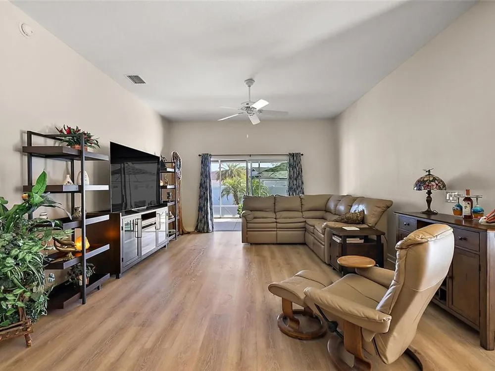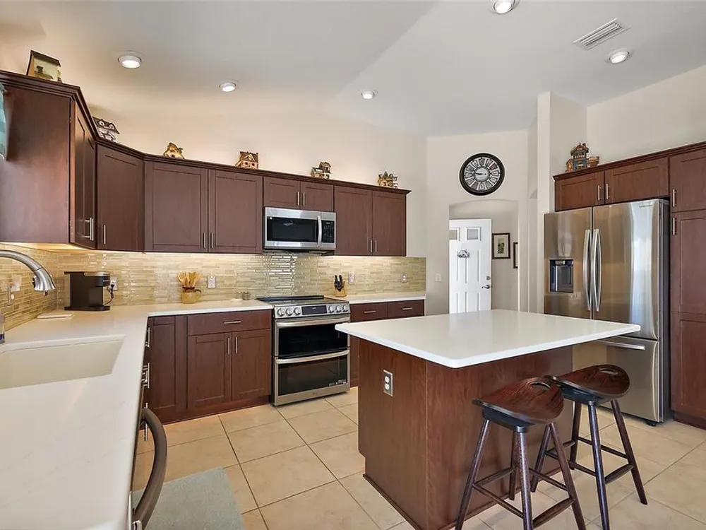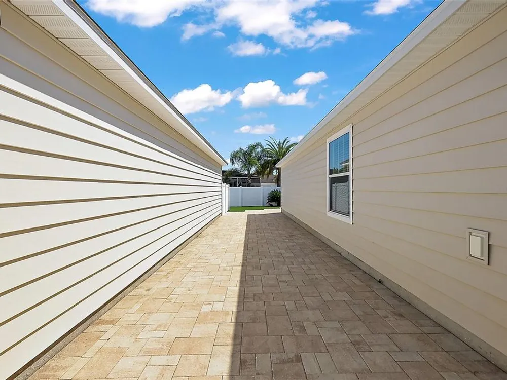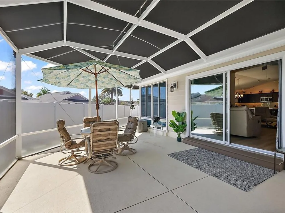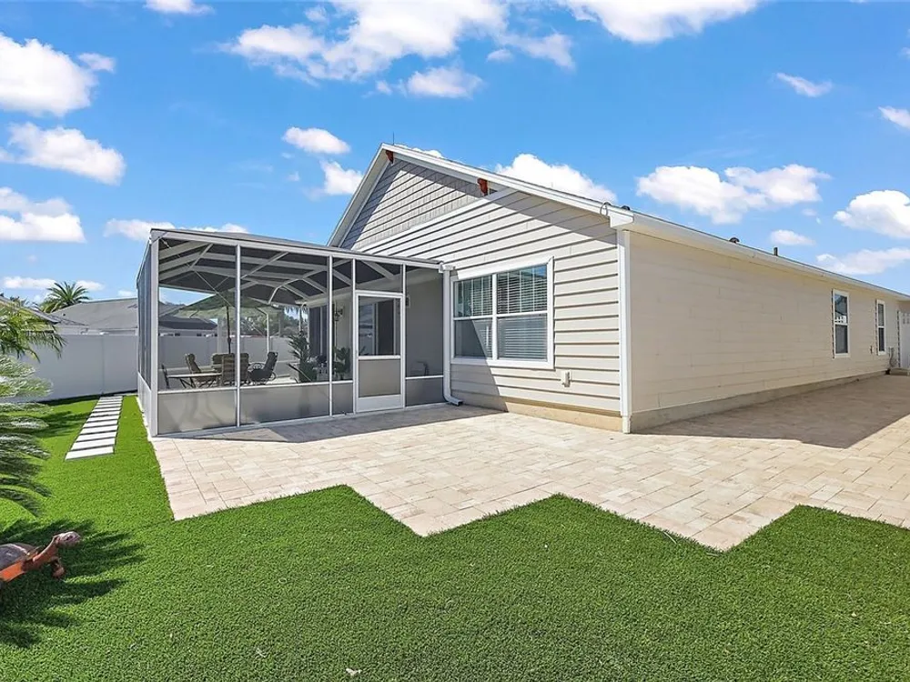 Finance contingency puts this house back on the Market! Price improvement, motivative Seller..... come have a look!!! This 3/2 courtyard villa on a corner lot in Pennecamp, is everything you've been waiting for. This home has been updated with virtually nothing left to do! In the kitchen, new appliances, new refaced cabinets (2024) and Corian counter tops (including the bathroom vanities and counter tops). New tile back splash and LED lighting, both above and below the cabinets. The bathrooms both have updated fixtures and the primary bath has a new shower door, and updated closet system in the primary closet. The living area has been repainted after a set of sliders were removed and walled in (2024), and a window replaced with a new slider to the beautiful birdcage. The birdcage has been fitted with a "Sunbrella" (end of 2023) and new super gutters and adjustments made to connect the 2 birdcages into one, then fitted a Sunbrella over the remaining area in 2024. A retractable awning has been added (2023) to the newly installed slider in the dining area. A new Lanai door complete with doggie door was also installed in 2024. A new garage door has been installed (2024) along with a remote keypad. New aluminum pull down stairs were installed to access the attic space (2024) along with new subfloor over the garage for extra storage. A new water softener system (owned NOT leased) and a new water heater in 2022. The A/C was replaced by the prior owner when this seller purchased the home in July 2022 and has been serviced every 6 months since. All the grass has been replaced with artificial turf in the rear of the home for easy maintenance and lower water bills! Several large palms have been replaced with smaller roebelenii's and palms. Easy access to the front with a gate on each side of the property, one side completely neat and clean with pavers from the rear of the house to the front gate. PLENTY OF ROOM FOR A POOL ! The front has been newly rock scaped (2023-2024) again for easy maintenance and lower water bills (all approved by ARC). The front porch area has a remote control sun shade (2023) due to the west setting sun. To top off this entire package, the roof has been replaced (2024), and the seller has paid of the existing bond!! NO BOND PAYMENT !! Call to make an appointment today and start your TRUE retirement!