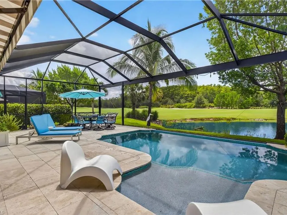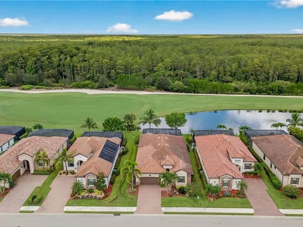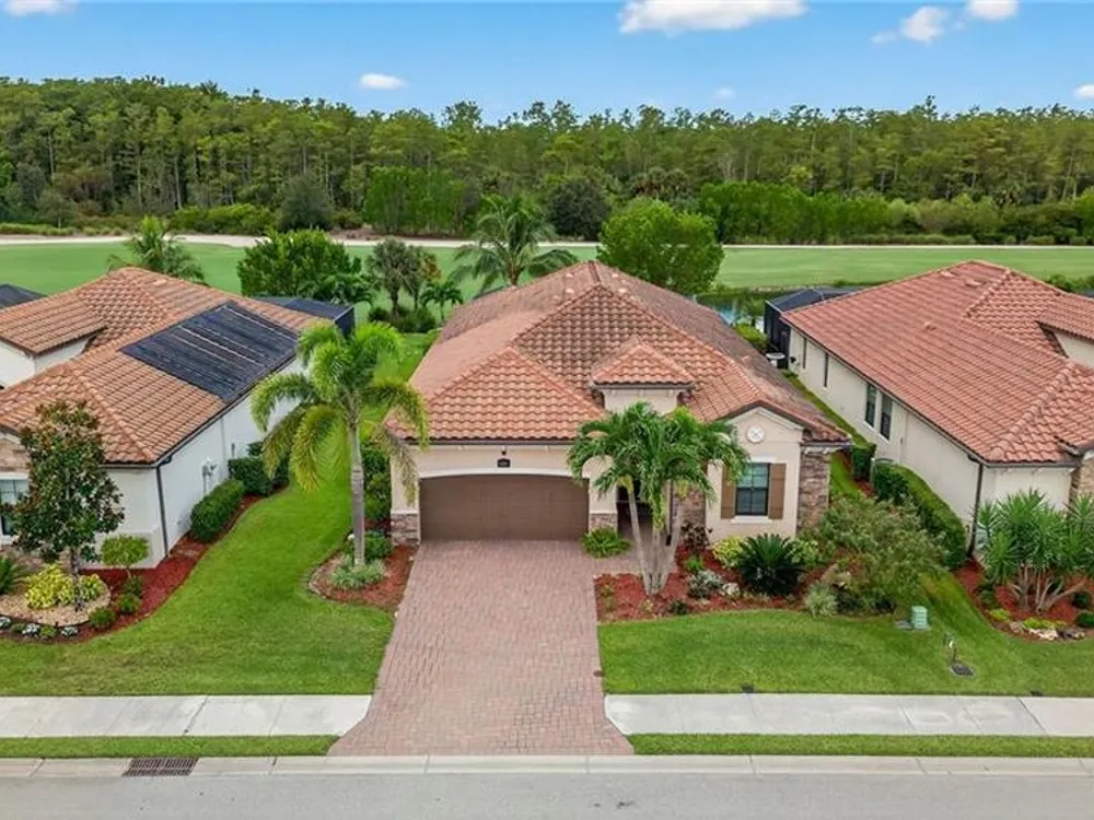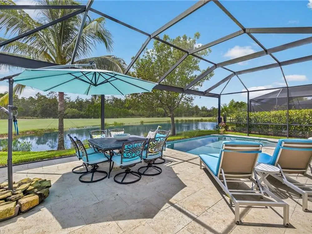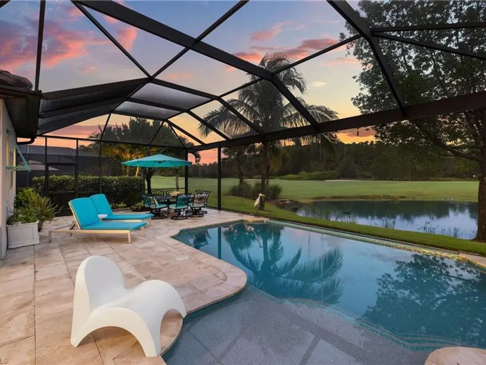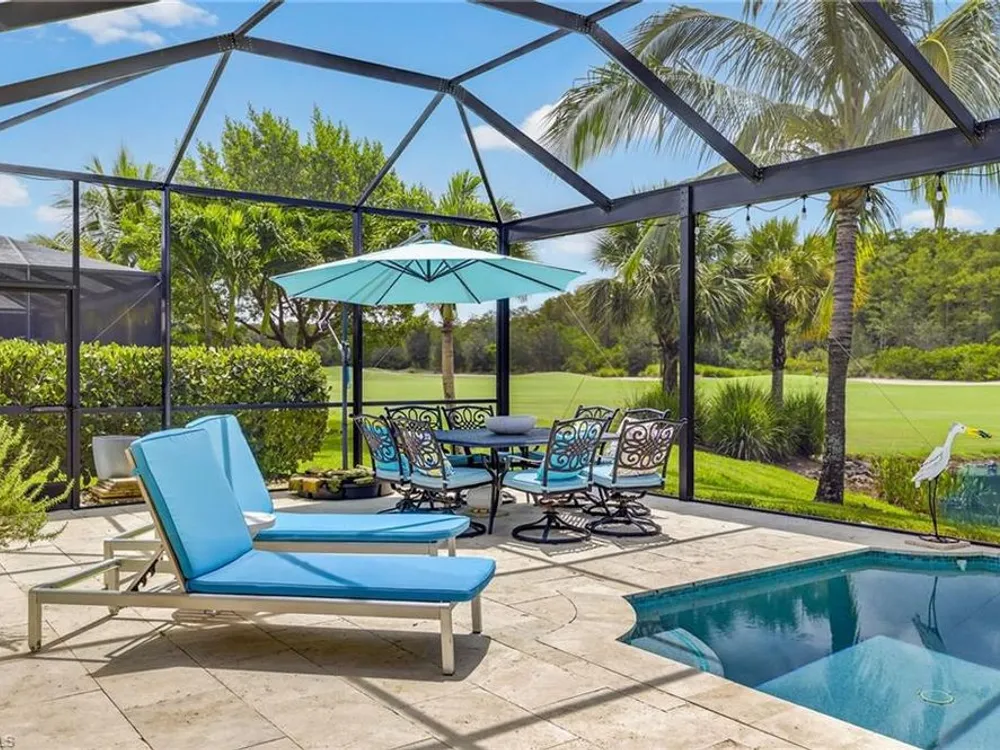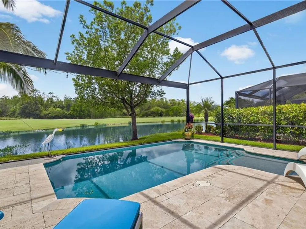 HERE IT IS! One of the most popular floor plans by Lennar, the nearly 2300 square feet Maria Model. This home has it all. Golf Membership, Southern exposure, view of Lake, Golf Course and Preserve. This four-bedroom / three bath home with hurricane resistant windows and doors throughout, offers spacious open-concept living all in the highly desirable community of Bonita National Golf and Country Club. Experience comfort and luxury while enjoying exclusive access to the fabulous amenities and resort-style living of Bonita National. All LVP flooring throughout, tile bathrooms & carpet guest bedrooms. The home offers a beautiful foyer entrance with tray ceiling, a custom sliding screen door on the entry with a full decorative glass door, two bedrooms with shared bath, as well as a third-bedroom ensuite and custom millwork. Living space offers a large dining area and living area with tray ceilings and full outdoor view of lanai, lake, golf course and preserve. The kitchen presents a large breakfast bar, electric cooktop, and wall oven and microwave-convection oven. There is plenty of counter space for convenient work areas and a large walk-in pantry. Primary bedroom has its own mini-split ac, custom tray ceiling, Bahama shutters, custom closets, sliding door access to the lanai and primary bath with custom quartz countertops with dual sinks and separate tub and doorless shower. Laundry room has been totally redone including a laundry tub and brand-new LG washer & dryer. Spend hours of relaxation in the fabulous lanai area with spool and serene outdoor view and extendable electric awning for added sun protection. The two-car garage has garage ceiling storage, insulated attic and door with a mini split unit to keep it cool. There is landscape lighting for the outdoor foliage. As a Bonita National resident, indulge in the community’s zero-entry waterfall pool, three satellite pools, eight Har-Tru tennis courts, fitness center with separate exercise/spin room for variety of classes, vibrant social clubs AND NOTE Pickleball and Bocce soon to be added. Dining options range from pool cabana service, casual grill fare to fine dining at the Clubhouse. This home offers the perfect combination of elegance, comfort, relaxation as well as the enjoyment of the great active lifestyle of Southwest Florida.HOUSE IS NOT BEING SOLD TURNKEY WITH THE EXCEPTION OF THE ALL ARTWORK & FURNITURE IN MASTER SUITE, DINING ROOM TABLE & CHAIRS.