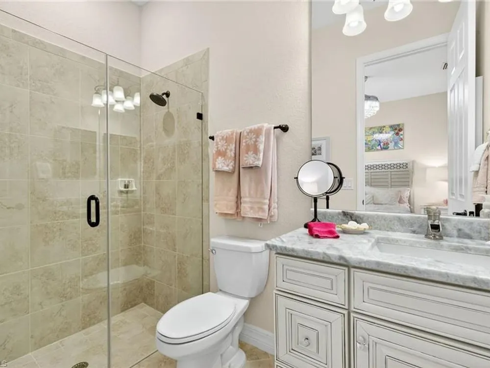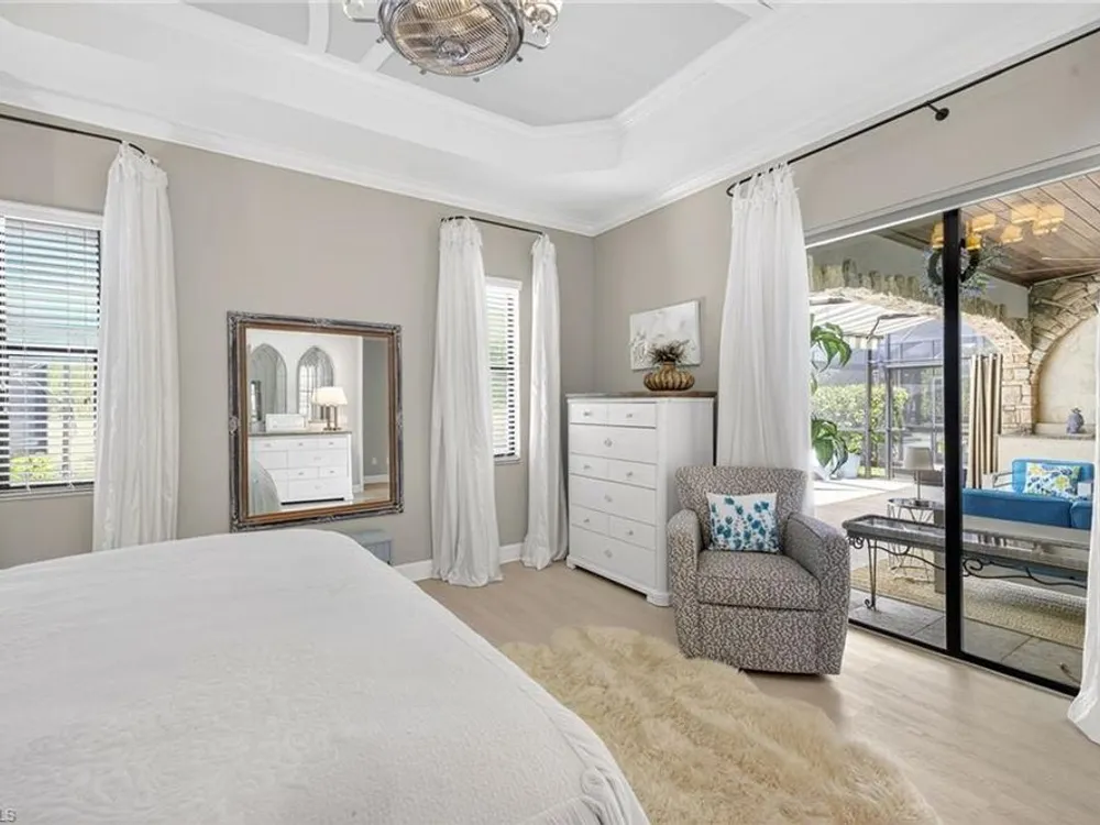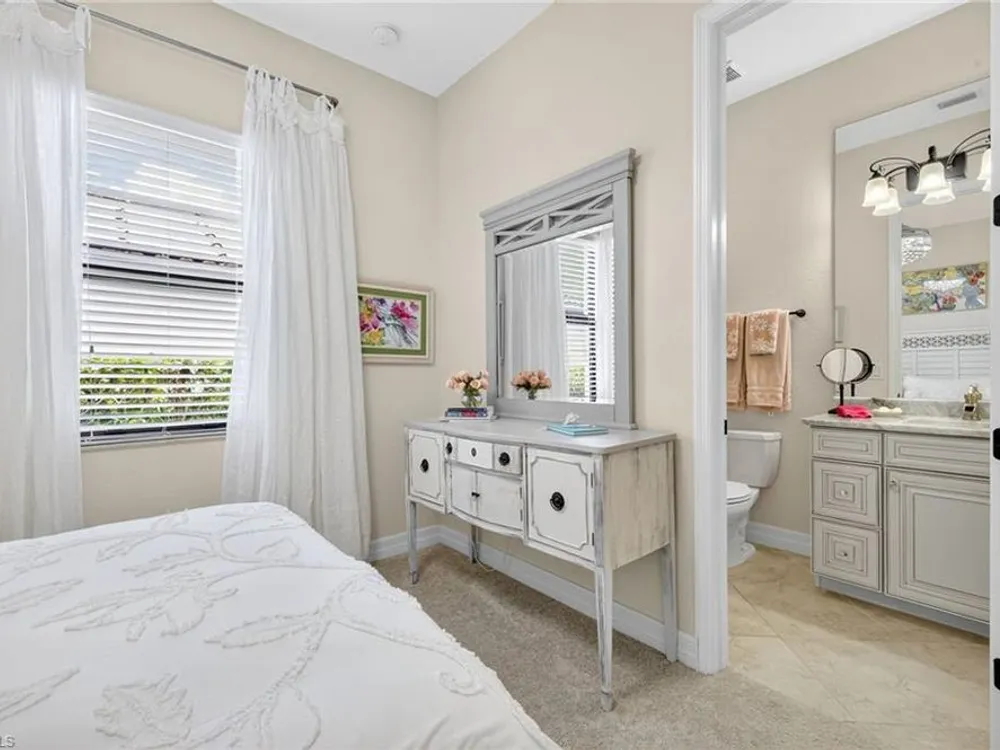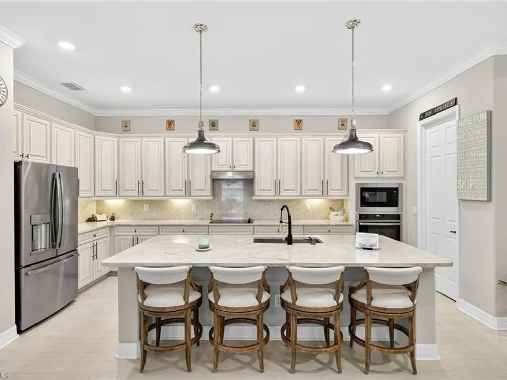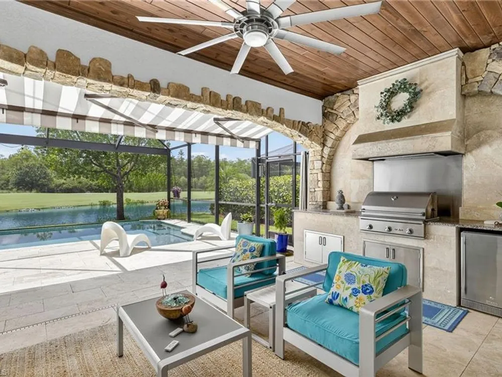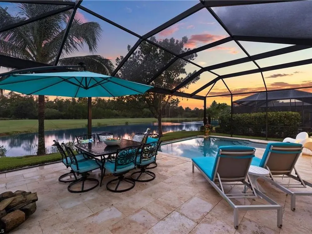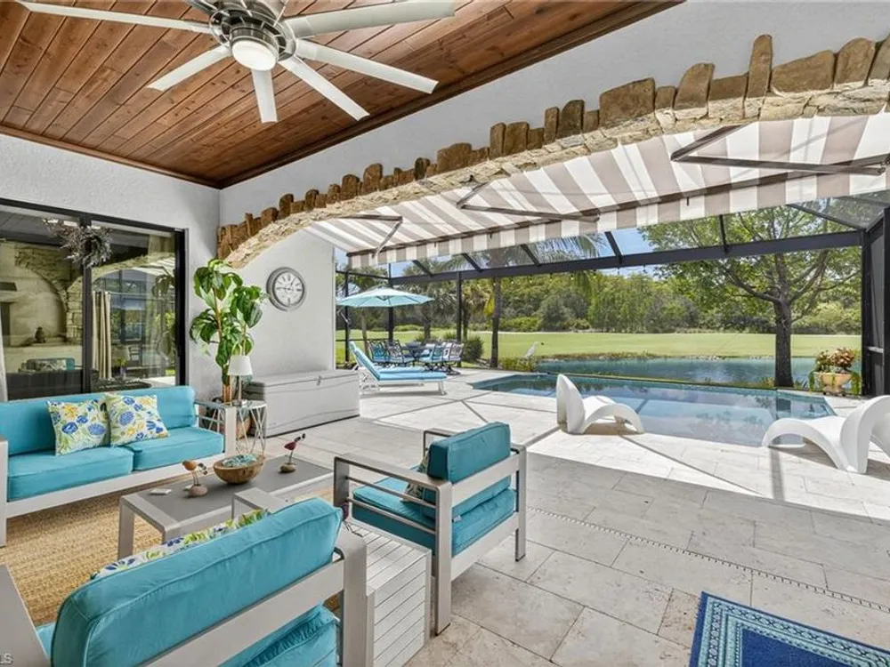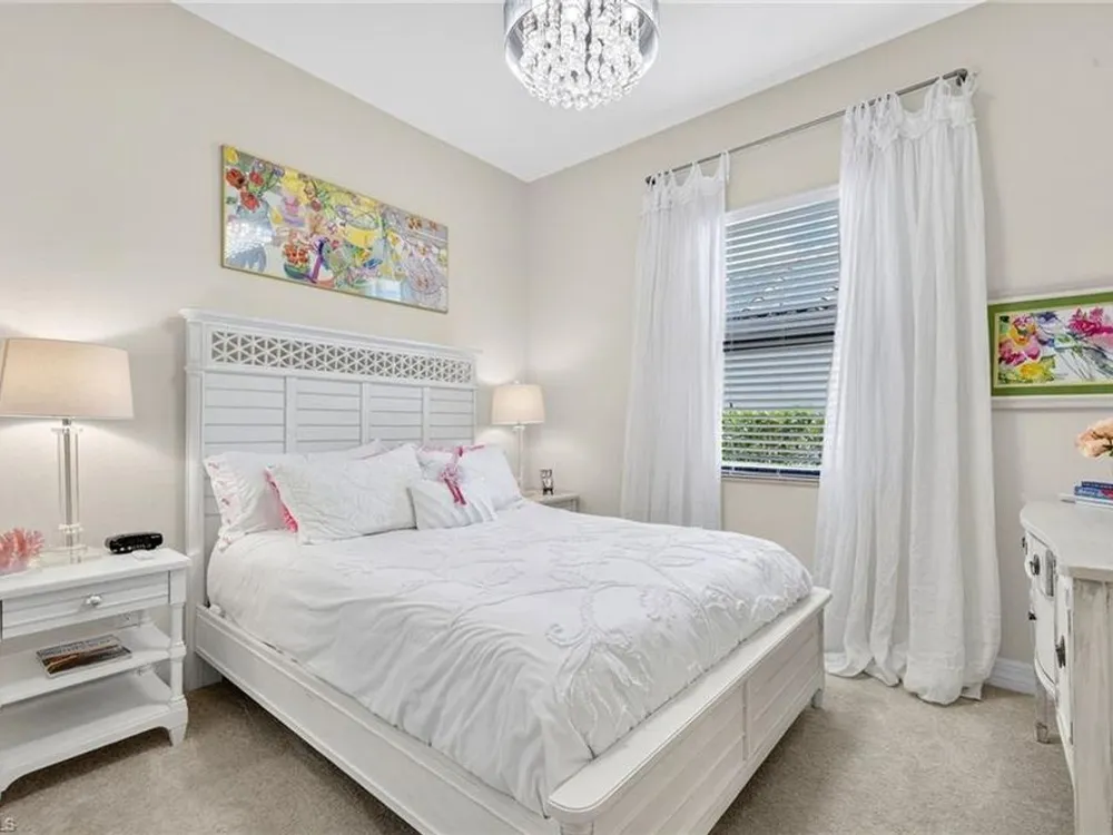 HERE IT IS! One of the most popular floor plans by Lennar, the nearly 2300 square feet Maria Model. This home has it all. Golf Membership, Southern exposure, view of Lake, Golf Course and Preserve. This four-bedroom / three bath home with hurricane resistant windows and doors throughout, offers spacious open-concept living all in the highly desirable community of Bonita National Golf and Country Club. Experience comfort and luxury while enjoying exclusive access to the fabulous amenities and resort-style living of Bonita National. All LVP flooring throughout, tile bathrooms & carpet guest bedrooms. The home offers a beautiful foyer entrance with tray ceiling, a custom sliding screen door on the entry with a full decorative glass door, two bedrooms with shared bath, as well as a third-bedroom ensuite and custom millwork. Living space offers a large dining area and living area with tray ceilings and full outdoor view of lanai, lake, golf course and preserve. The kitchen presents a large breakfast bar, electric cooktop, and wall oven and microwave-convection oven. There is plenty of counter space for convenient work areas and a large walk-in pantry. Primary bedroom has its own mini-split ac, custom tray ceiling, Bahama shutters, custom closets, sliding door access to the lanai and primary bath with custom quartz countertops with dual sinks and separate tub and doorless shower. Laundry room has been totally redone including a laundry tub and brand-new LG washer & dryer. Spend hours of relaxation in the fabulous lanai area with spool and serene outdoor view and extendable electric awning for added sun protection. The two-car garage has garage ceiling storage, insulated attic and door with a mini split unit to keep it cool. There is landscape lighting for the outdoor foliage. As a Bonita National resident, indulge in the community’s zero-entry waterfall pool, three satellite pools, eight Har-Tru tennis courts, fitness center with separate exercise/spin room for variety of classes, vibrant social clubs AND NOTE Pickleball and Bocce soon to be added. Dining options range from pool cabana service, casual grill fare to fine dining at the Clubhouse. This home offers the perfect combination of elegance, comfort, relaxation as well as the enjoyment of the great active lifestyle of Southwest Florida.HOUSE IS NOT BEING SOLD TURNKEY WITH THE EXCEPTION OF THE ALL ARTWORK & FURNITURE IN MASTER SUITE, DINING ROOM TABLE & CHAIRS.