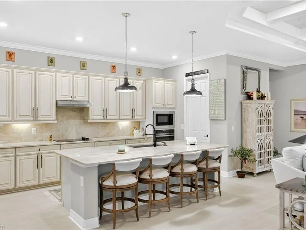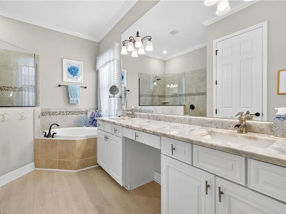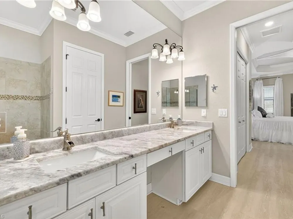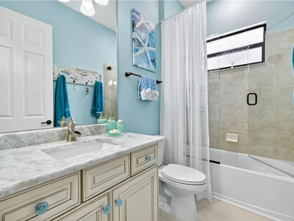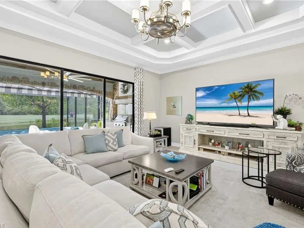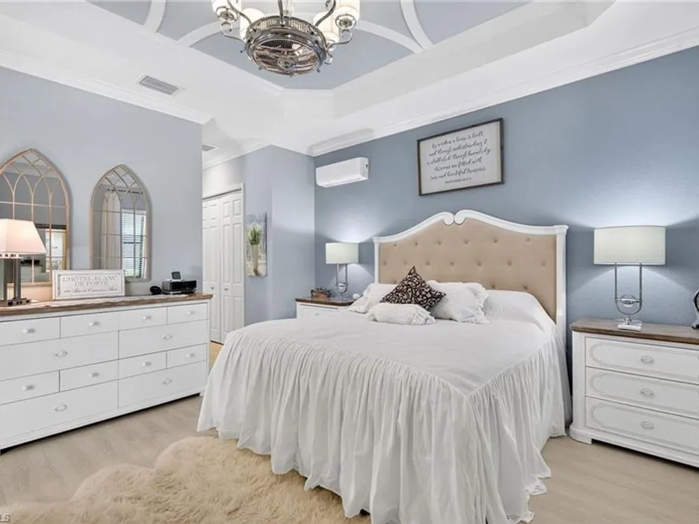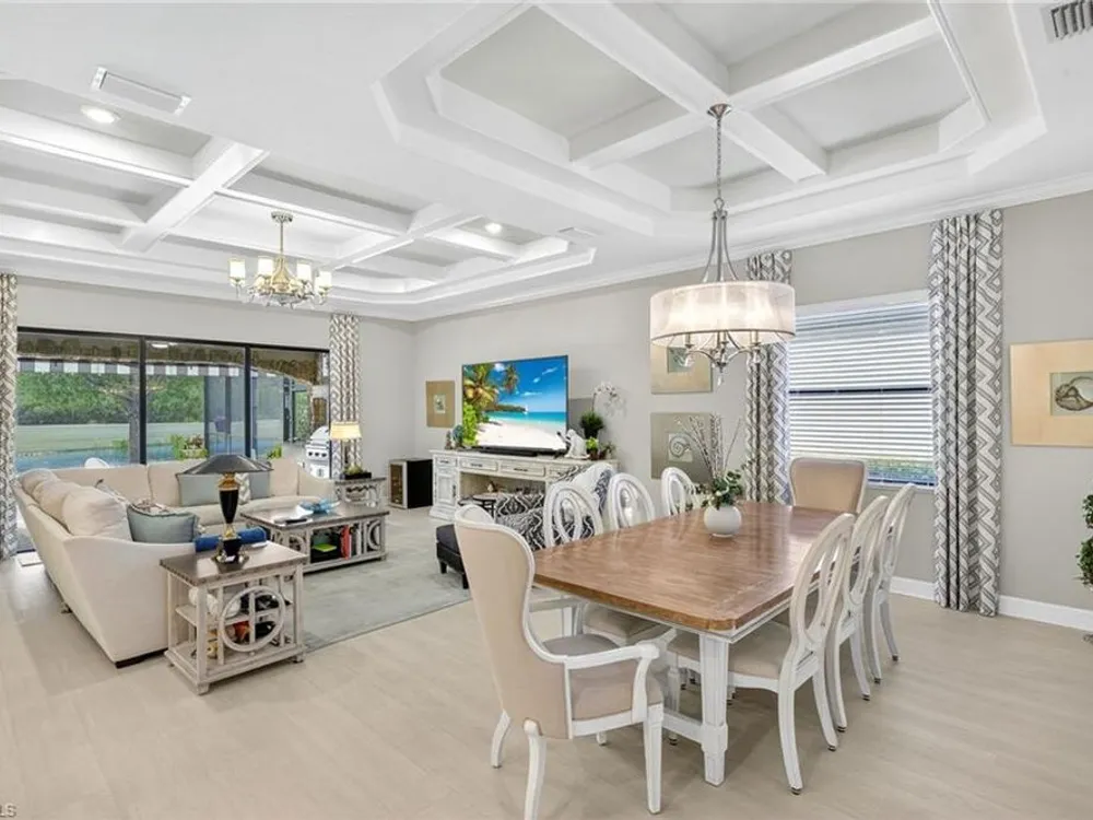 HERE IT IS! One of the most popular floor plans by Lennar, the nearly 2300 square feet Maria Model. This home has it all. Golf Membership, Southern exposure, view of Lake, Golf Course and Preserve. This four-bedroom / three bath home with hurricane resistant windows and doors throughout, offers spacious open-concept living all in the highly desirable community of Bonita National Golf and Country Club. Experience comfort and luxury while enjoying exclusive access to the fabulous amenities and resort-style living of Bonita National. All LVP flooring throughout, tile bathrooms & carpet guest bedrooms. The home offers a beautiful foyer entrance with tray ceiling, a custom sliding screen door on the entry with a full decorative glass door, two bedrooms with shared bath, as well as a third-bedroom ensuite and custom millwork. Living space offers a large dining area and living area with tray ceilings and full outdoor view of lanai, lake, golf course and preserve. The kitchen presents a large breakfast bar, electric cooktop, and wall oven and microwave-convection oven. There is plenty of counter space for convenient work areas and a large walk-in pantry. Primary bedroom has its own mini-split ac, custom tray ceiling, Bahama shutters, custom closets, sliding door access to the lanai and primary bath with custom quartz countertops with dual sinks and separate tub and doorless shower. Laundry room has been totally redone including a laundry tub and brand-new LG washer & dryer. Spend hours of relaxation in the fabulous lanai area with spool and serene outdoor view and extendable electric awning for added sun protection. The two-car garage has garage ceiling storage, insulated attic and door with a mini split unit to keep it cool. There is landscape lighting for the outdoor foliage. As a Bonita National resident, indulge in the community’s zero-entry waterfall pool, three satellite pools, eight Har-Tru tennis courts, fitness center with separate exercise/spin room for variety of classes, vibrant social clubs AND NOTE Pickleball and Bocce soon to be added. Dining options range from pool cabana service, casual grill fare to fine dining at the Clubhouse. This home offers the perfect combination of elegance, comfort, relaxation as well as the enjoyment of the great active lifestyle of Southwest Florida.HOUSE IS NOT BEING SOLD TURNKEY WITH THE EXCEPTION OF THE ALL ARTWORK & FURNITURE IN MASTER SUITE, DINING ROOM TABLE & CHAIRS.