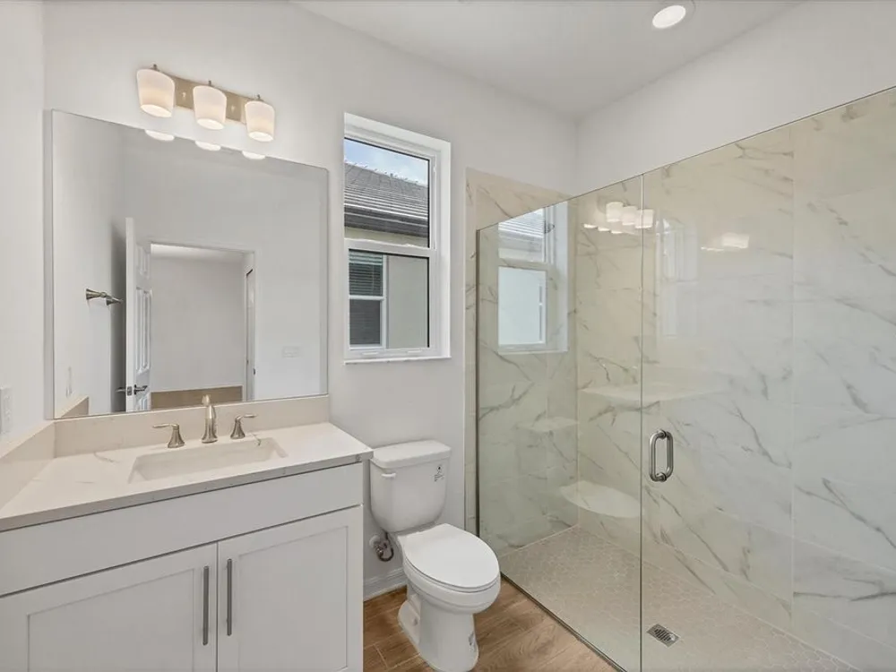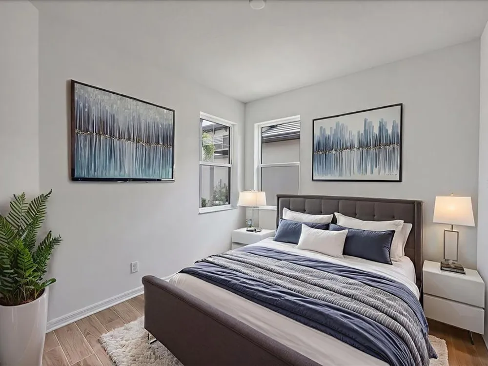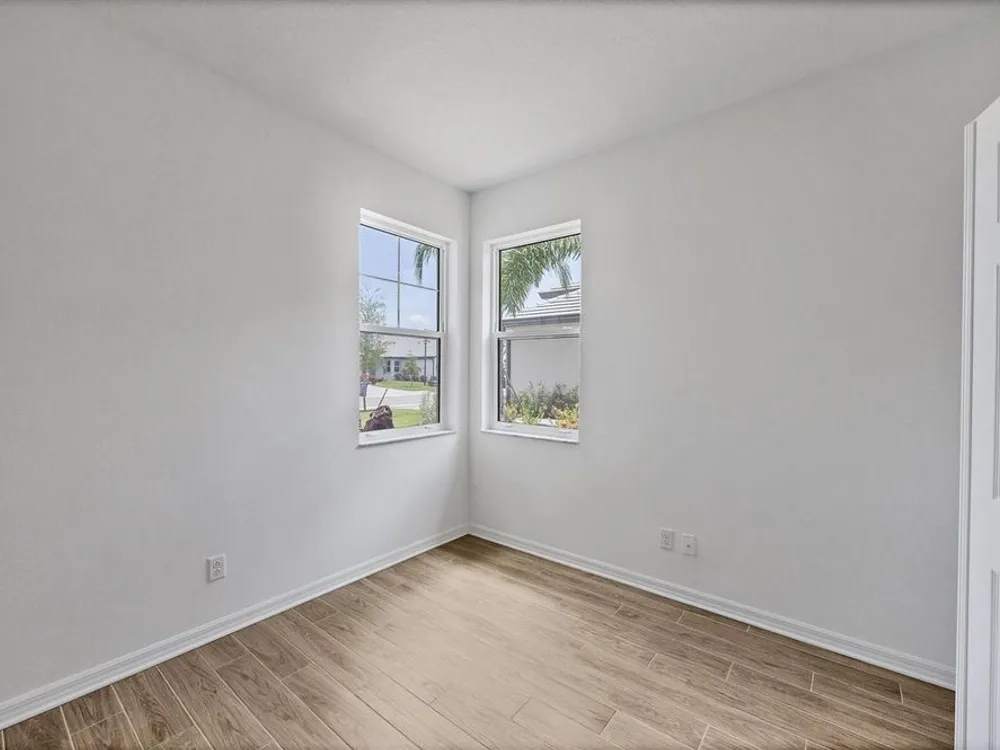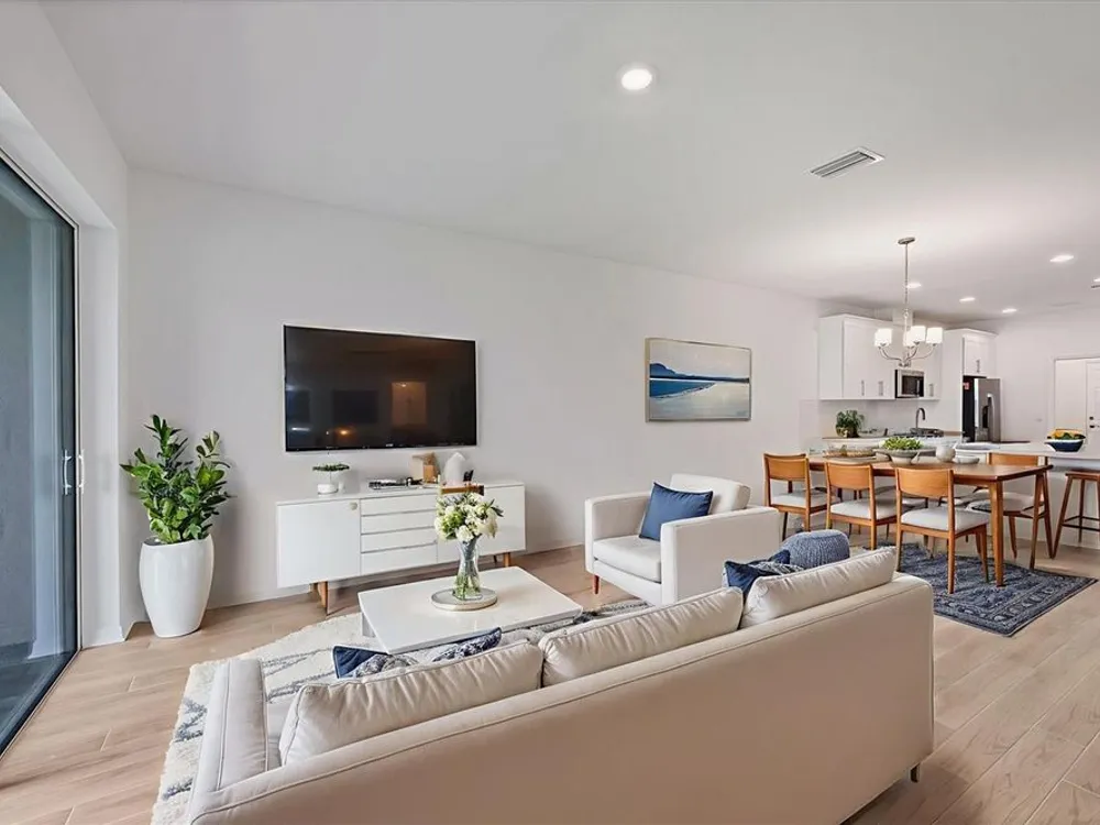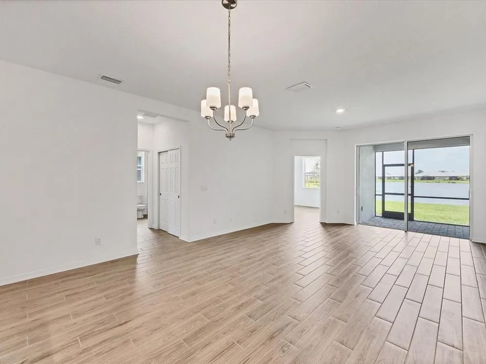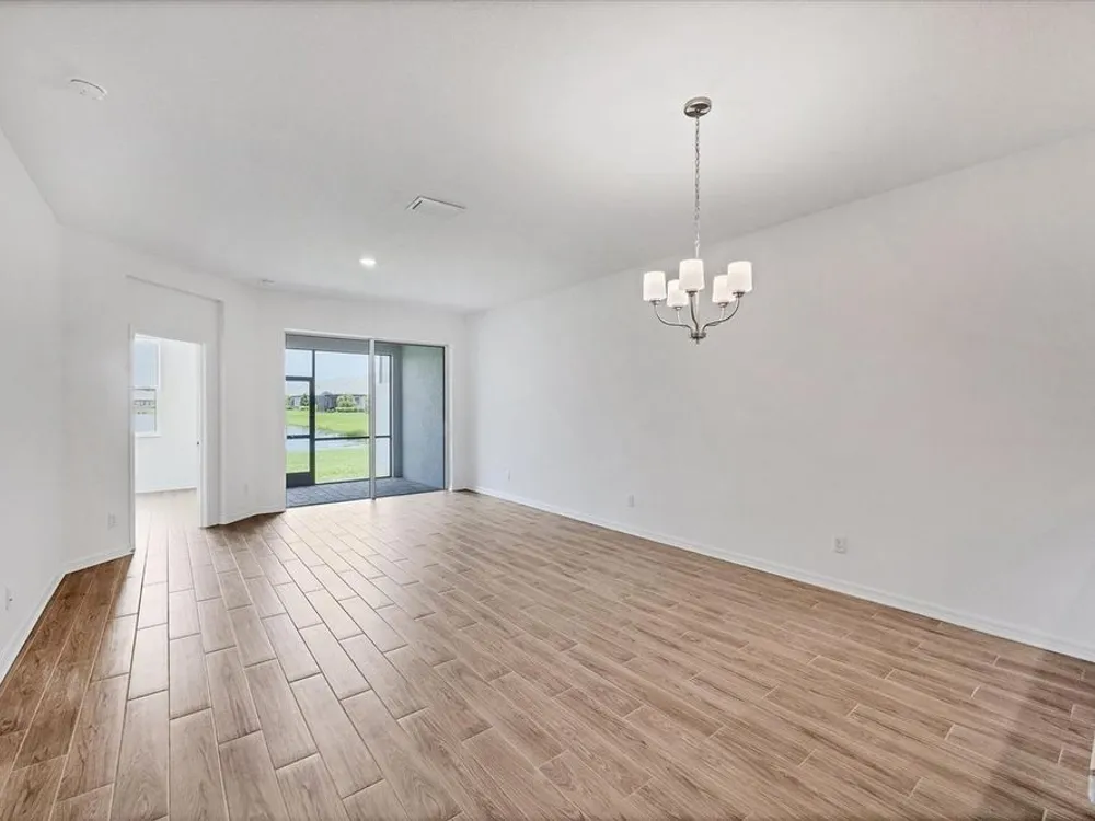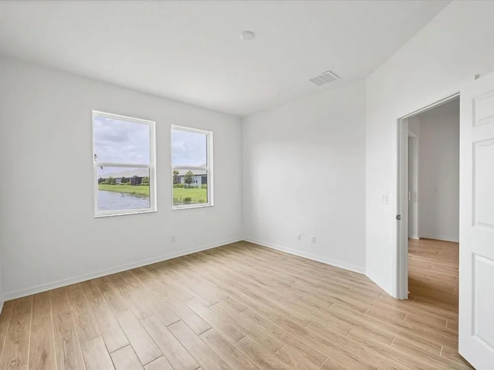 One or more photo(s) has been virtually staged. Why wait to build when you can move right into this new, never-lived-in Emerald model by M/I Homes? Enjoy serene, long water views from this beautifully designed maintenance-free villa near the Sweetwater Villas amenity center and pool. This thoughtfully laid-out home features two bedrooms plus a versatile den with double doors, ideal as a home office, guest room or hobby space. The open-concept floor plan flows seamlessly from the spacious great room to the paver, screened lanai overlooking the lake, an ideal setting for relaxing or entertaining. Inside, you'll find neutral tile flooring throughout, bright white paint and an elegant kitchen featuring white cabinetry, new stainless steel appliances, quartz countertops, a breakfast bar and a sleek glossy white backsplash. The primary suite offers peaceful lake views, a large walk-in closet, and an en-suite bath with dual sinks, quartz counters, white cabinetry and a walk-in glass-enclosed shower. The guest suite is privately tucked away and includes a stylish bath with a marbled tile walk-in shower. A two-car garage and paver driveway complete this move-in-ready home. Enjoy effortless, maintenance-free living with professional landscaping and irrigation included, all in a gated neighborhood offering plentiful resort-style amenities for a carefree lifestyle. Sweetwater at Lakewood Ranch offers an exceptional array of amenities, including two amenity centers, heated pool, playground, multi-purpose sports court, pickleball courts, bocce ball courts, a 24-hour fitness room, social hall, festival lawn and amphitheater. Easy living, lock and leave, ideal for a winter getaway! Your new home awaits in this vibrant, amenity-rich community. This is Florida living at its finest.