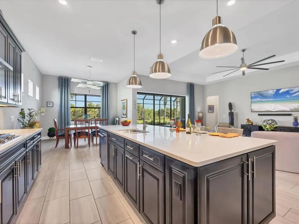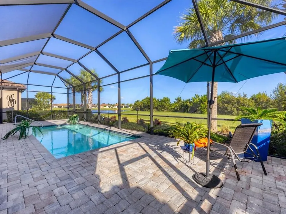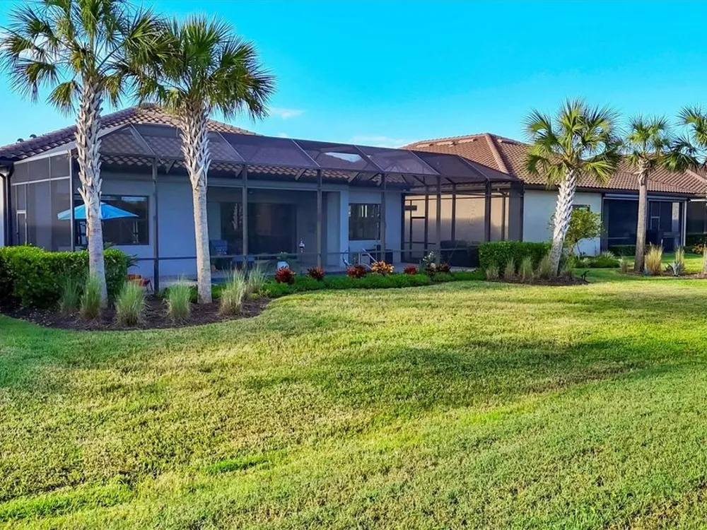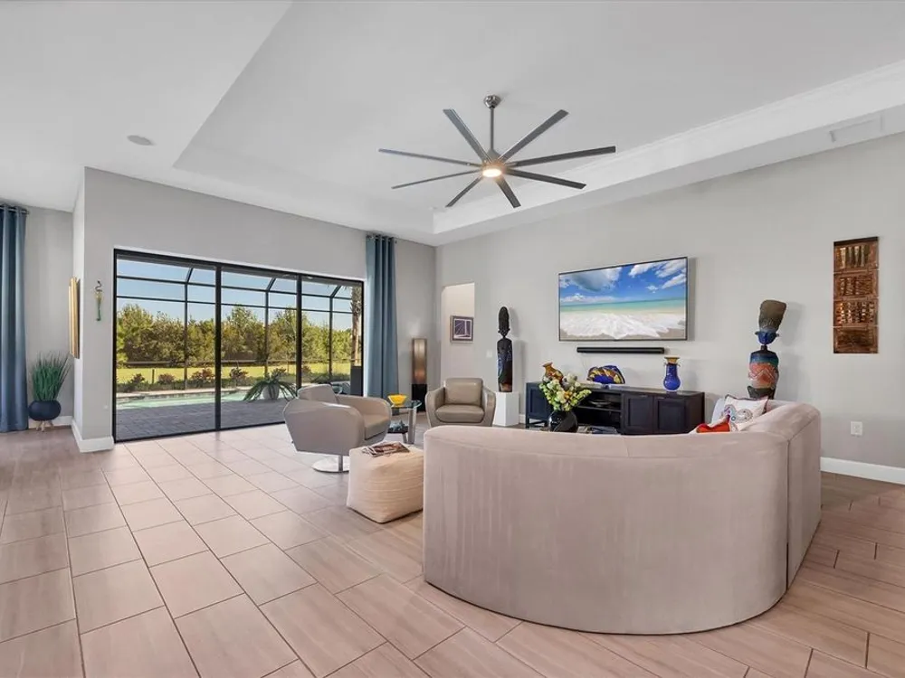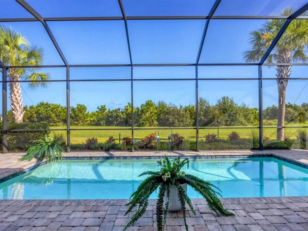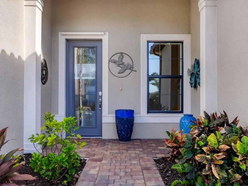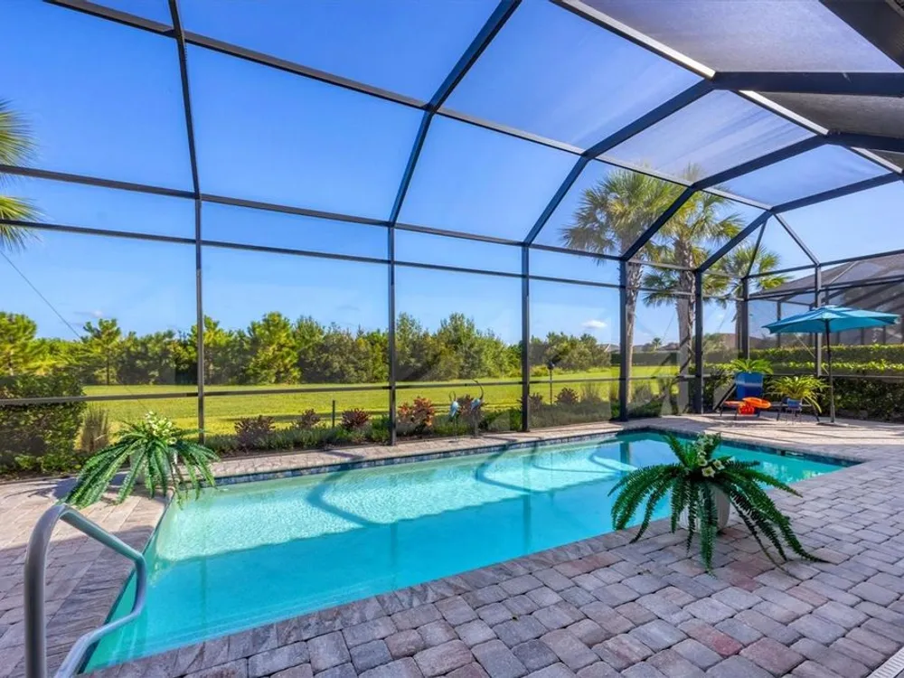 Welcome to resort-style living in Del Webb at Lakewood Ranch, a vibrant 55+ gated community designed for ease, connection, and comfort. This beautifully situated 2021-built home offers peaceful water views and expansive nature preserve scenery from your private screened pool courtyard. Enjoy the best of Florida’s indoor-outdoor lifestyle with impact-rated sliding glass doors that stack open from the great room to the patio, creating a seamless flow for indoor-outdoor living, entertaining, and relaxing. The open-concept Stellar floor plan features 11-foot ceilings, porcelain tile flooring, a neutral color palette, and a split-bedroom layout for maximum privacy. The spacious primary suite includes a double vanity, water closet, walk-in shower with a bench, linen storage, and an oversized walk-in closet. The guest suite offers an en-suite bath and charming bay window, while the third bedroom is adjacent to a full hallway bath. A den with French doors provides a quiet, bright retreat for a home office, library, or gallery. Additional highlights include a rare 3-car garage with epoxy pebble-finish floors and built-in storage, a durable tile roof, and concrete block construction for full maintenance-free living and peace of mind. The heart of the community is the welcoming clubhouse, where a full-time lifestyle director connects residents with a variety of amenities— from fitness classes and social events to tennis, pickleball, swimming pools, and on-site dining at the Lake House restaurant and bar. This is your opportunity to enjoy beautiful living in one of Florida’s most desirable active adult communities. Take advantage of all the shopping and dining options at University Town Center, our new Mote Marine Aquarium, Downtown Lakewood Ranch, Farmers Market, and lakeside restaurants at Waterside
